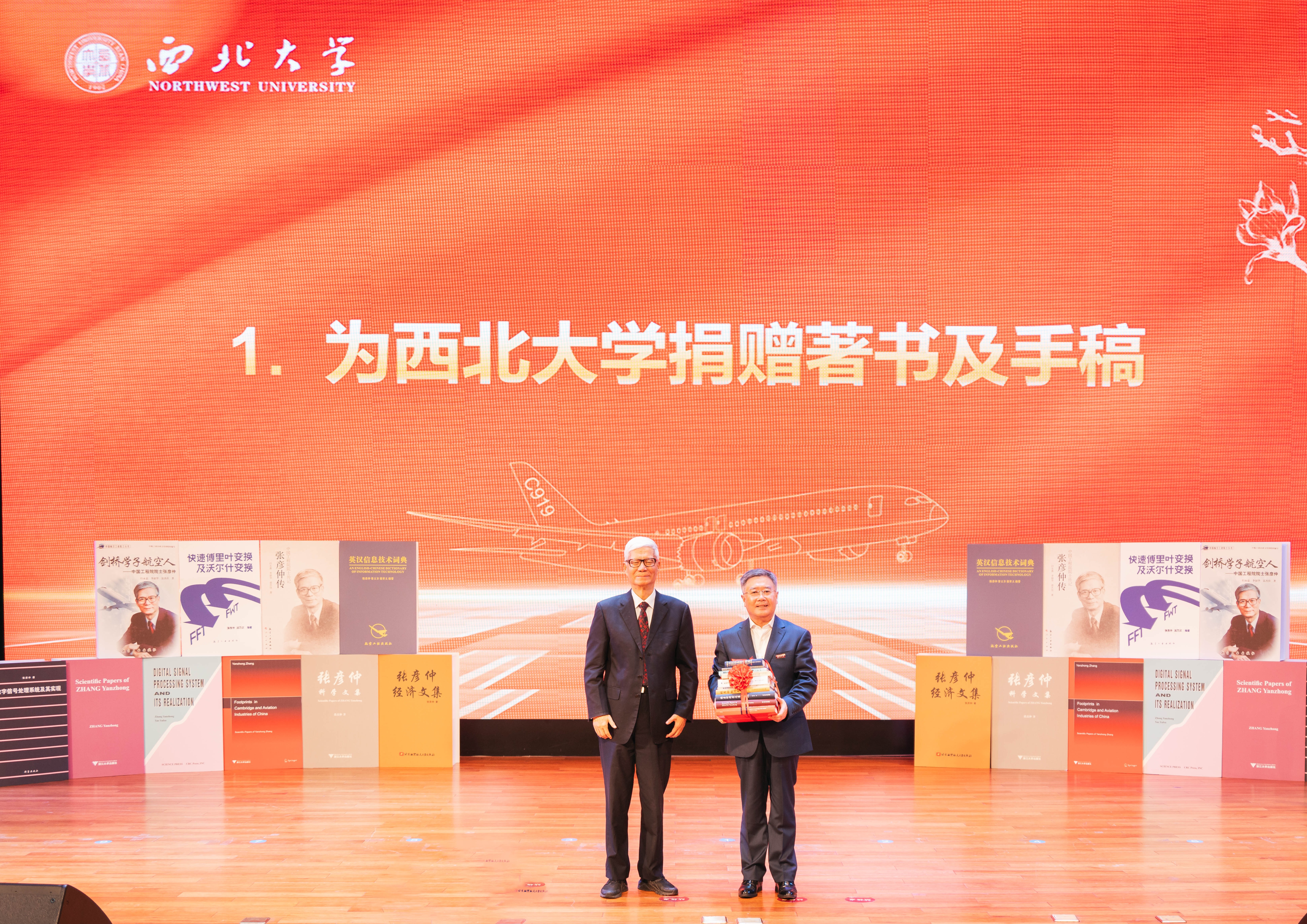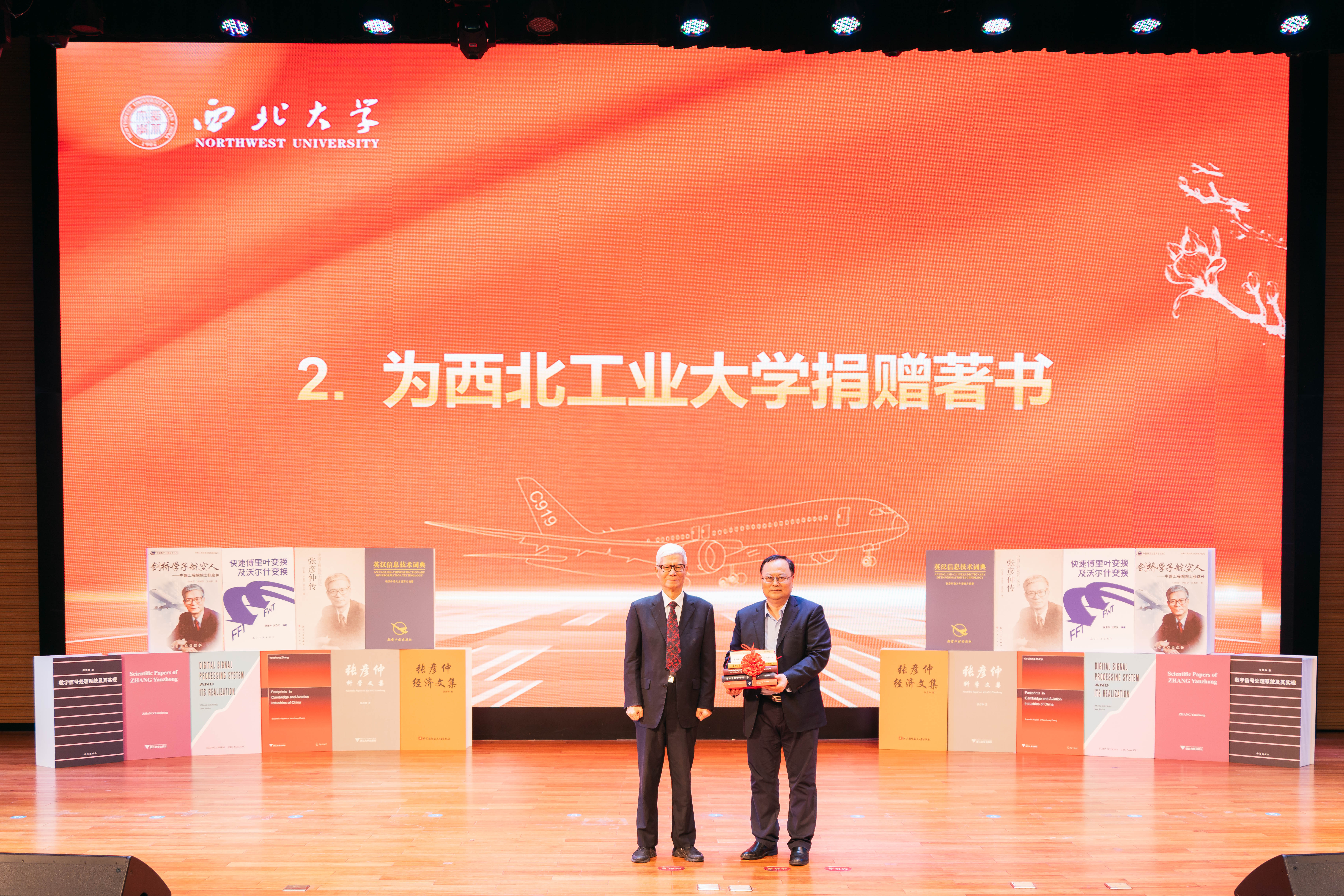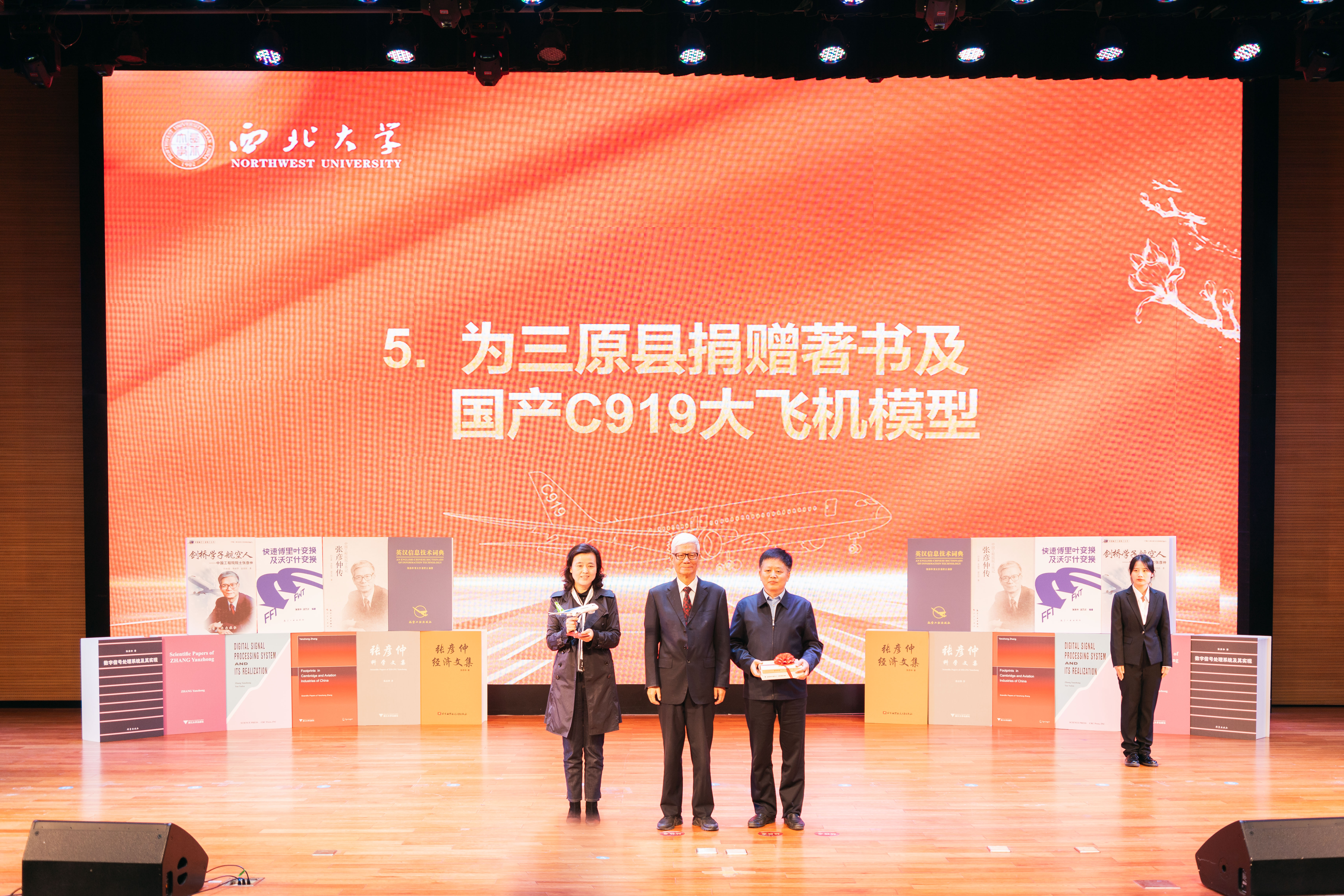 张彦仲院士分别向西安交通大学、西北工业大学、咸阳市、三原县和乐鱼网页版页面登录捐赠了《数字信号处理系统及其实现》等十一种图书共计二百余册,并向乐鱼网页版页面登录捐赠了论文手稿和C919大飞机模型。