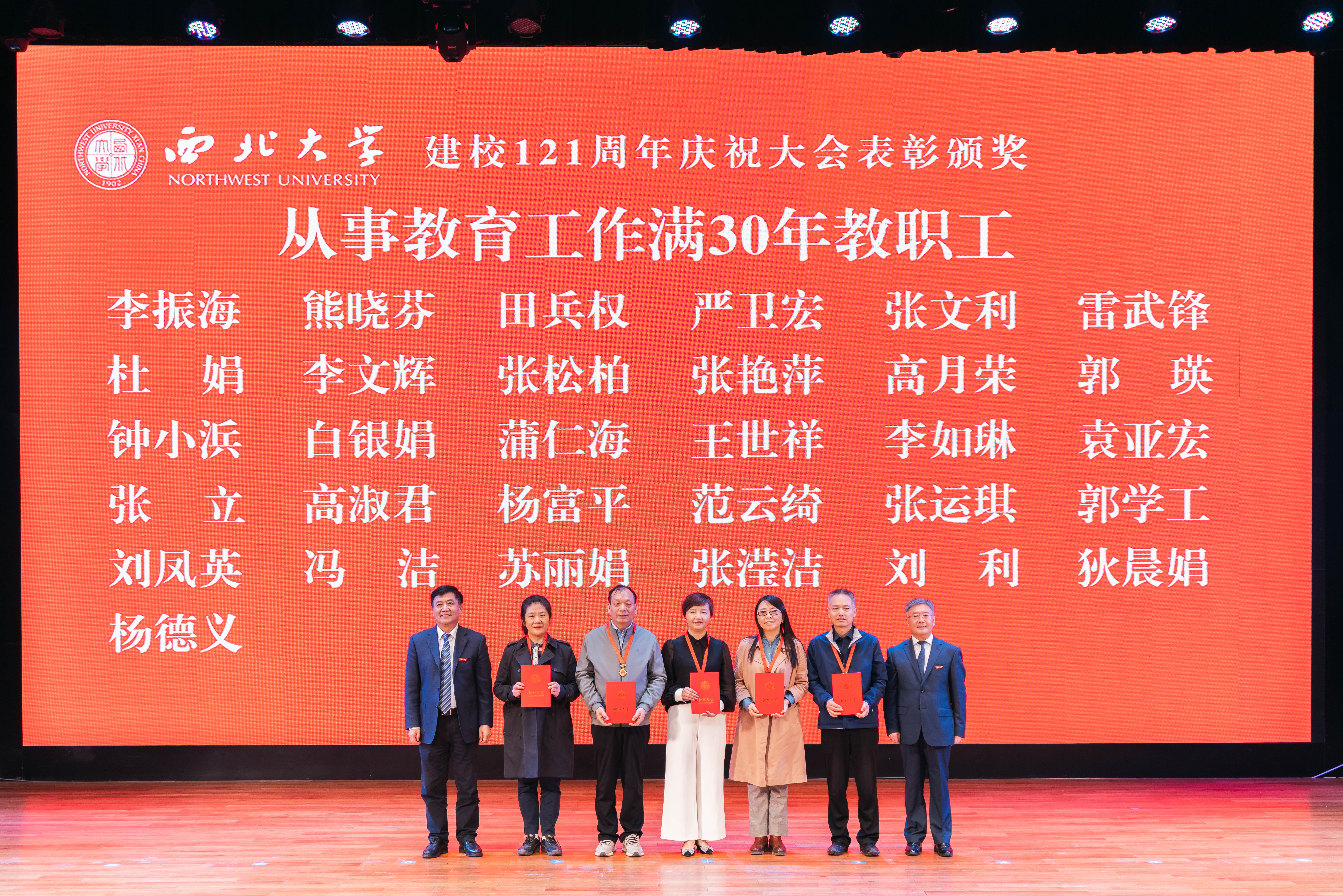与会领导为第三批全国高校黄大年式教师团队、陕西省黄大年式教师团队、陕西省教书育人楷模、陕西省特级教师颁奖,为从事教育工作满30年工龄的教职工颁发纪念章,为师德师风先进集体、师德师风标兵、师德师风先进个人,2023年教学奖、科研奖、人才奖、基础教育奖颁奖,为优秀教师和先进工作者颁奖,为第十三届“挑战杯”中国大学生创业计划竞赛金奖颁奖。