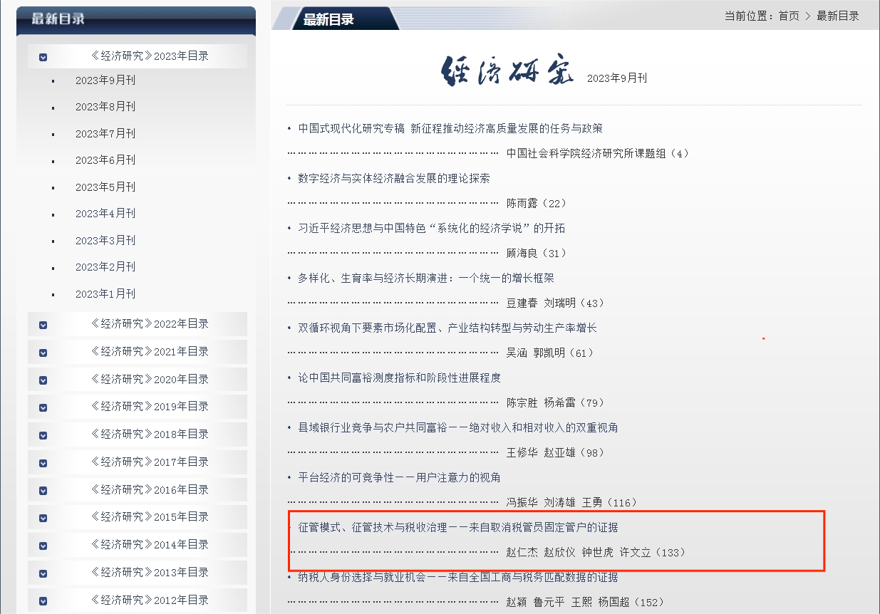 近日,乐鱼网页版页面登录经济管理学院赵仁杰副教授在《经济研究》2023年第9期发表题为《征管模式、征管技术与税收治理——来自取消税管员固定管户的证据》的学术论文,研究了征管模式与征管技术变化对国家税收治理的影响。