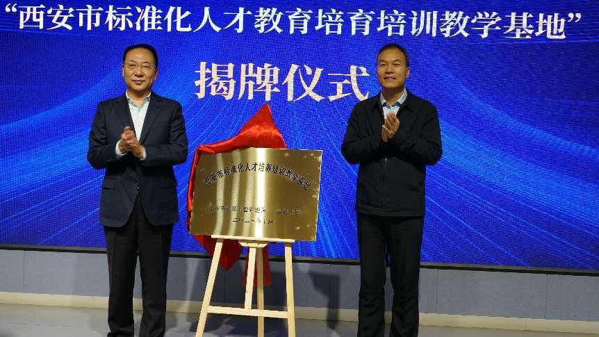 郝生旺与吕建荣共同为“西安市标准化人才培养培训教学基地”揭牌。