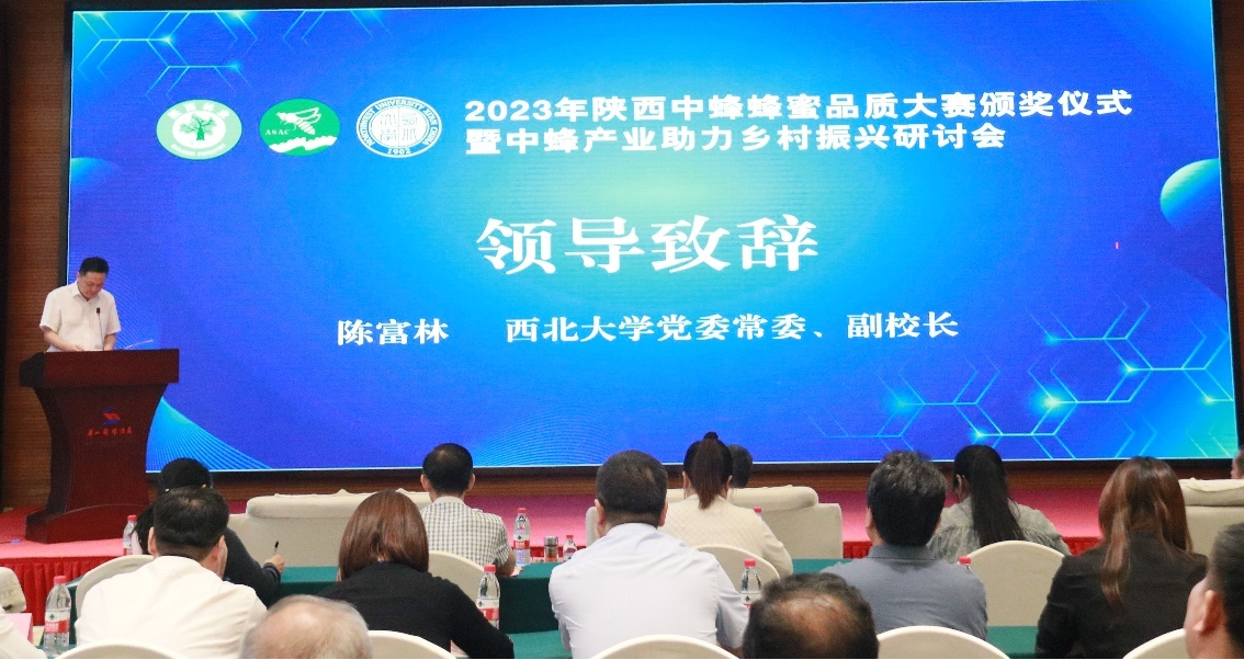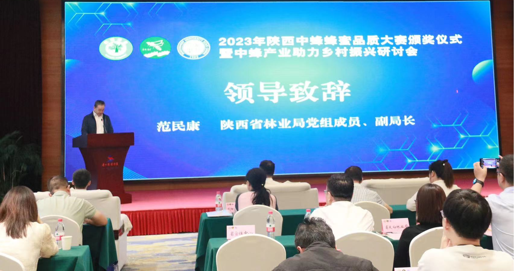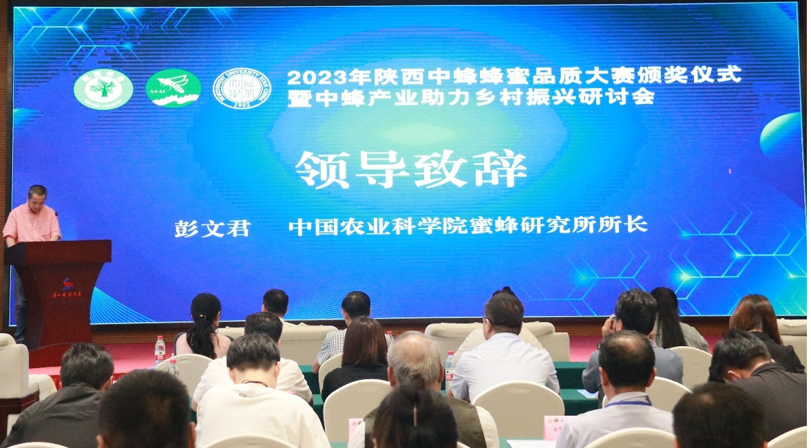 近日,由陕西省林业局和中国养蜂学会主办,陕西省国营林场管理站(陕西省林业产业发展中心)、乐鱼网页版页面登录蜂产品应用技术研究中心、陕西省蜂产品工程技术研究中心承办的2023年陕西中蜂蜂蜜品质大赛颁奖仪式暨中蜂产业助力乡村振兴研讨会在西安召开。中国农业科学院蜜蜂研究所所长彭文君,陕西省林业局党组成员、副局长范民康,陕西省林业局有关单位负责人,各市林业局分管负责人,陕西中蜂蜂蜜品质大赛组委会成员,获奖单位代表和负责人,乐鱼网页版页面登录党委常委、副校长陈富林和有关单位负责人参加会议。