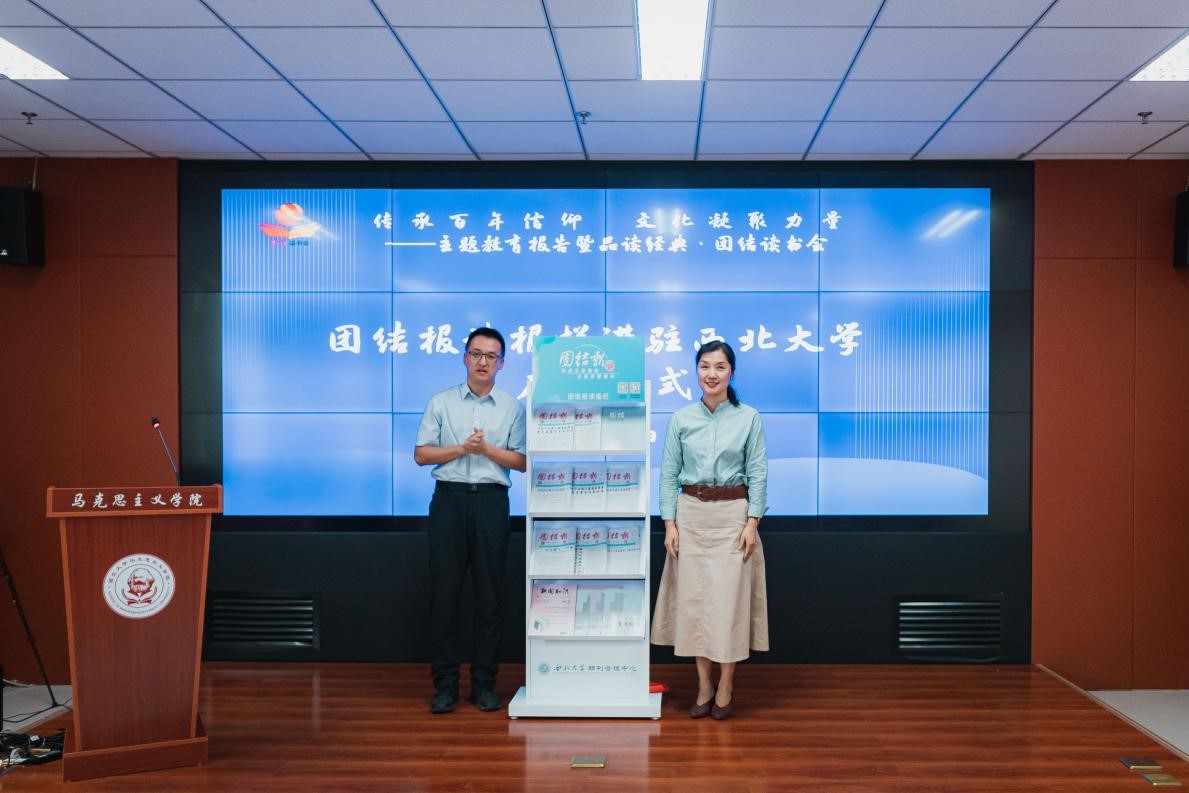 在团结报读报栏进驻乐鱼网页版页面登录启动仪式上,张清与陈嵩共同为团结报读报栏揭牌。民盟陕西省委会青年委员会主任常伟、企业委员会主任杨江海向归来书店授牌。陕西省人大代表、民盟西安市委副主委张凯华向此次活动赠送书法作品。