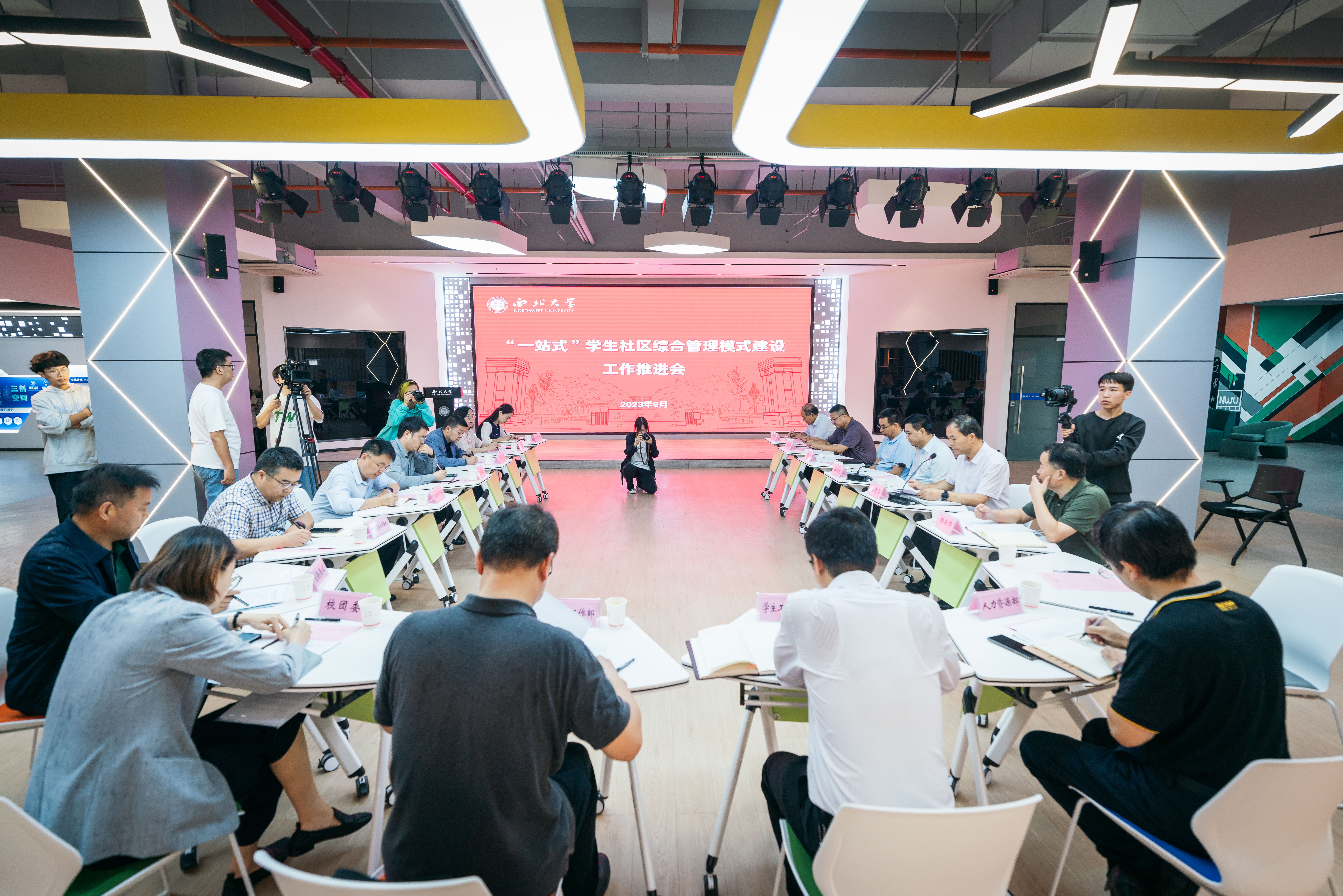 为落实立德树人根本任务,深化“一站式”学生社区建设,9月20日下午,乐鱼网页版页面登录在长安校区三创空间孵化基地路演厅召开“一站式”学生社区综合管理模式建设推进会。校党委书记王亚杰,校党委常委、副校长奚家米,校党委常委、宣传部部长田明纲出席会议,学校相关单位负责人参加会议。会议由校党委副书记吕建荣主持。