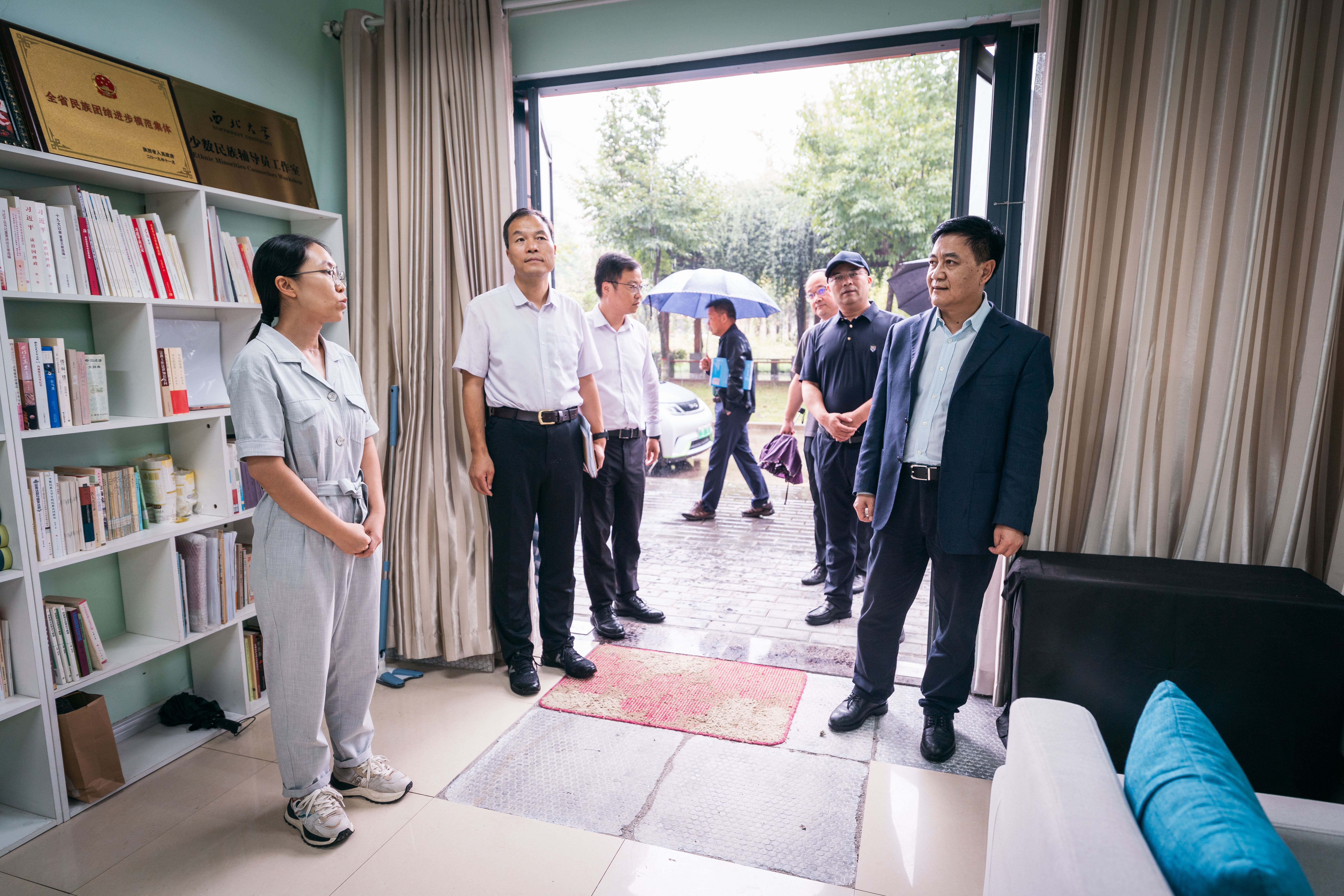 会前,校领导和与会人员深入乐鱼网页版页面登录“一站式”学生社区,实地参观了党团活动室、24小时自习室,辅导员工作室、红色书屋和党建团建工作室等地,并与在场师生互动交流。王亚杰与红帆大学生党员宣讲团团长田浩楠共同为一站式学生社区揭牌。