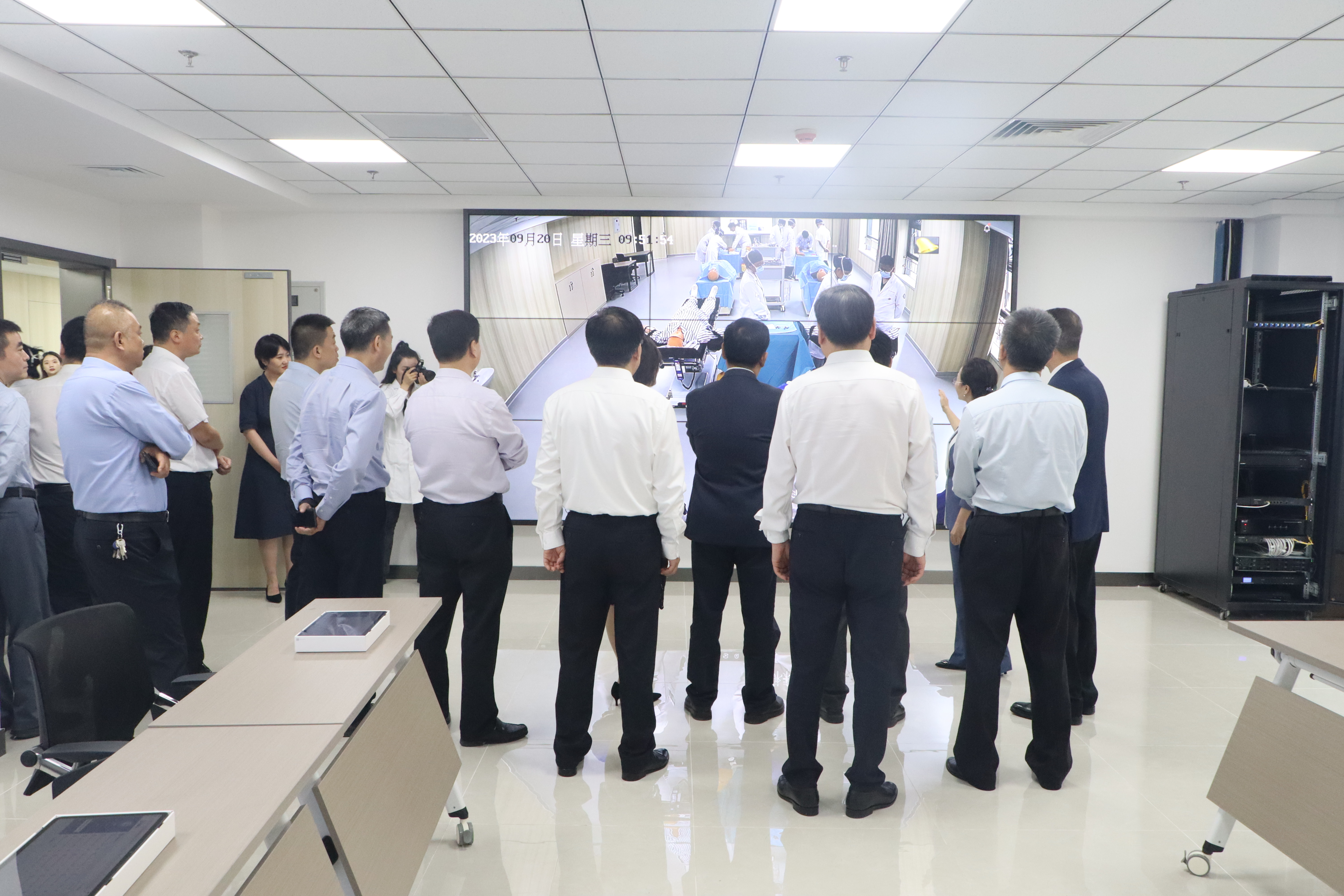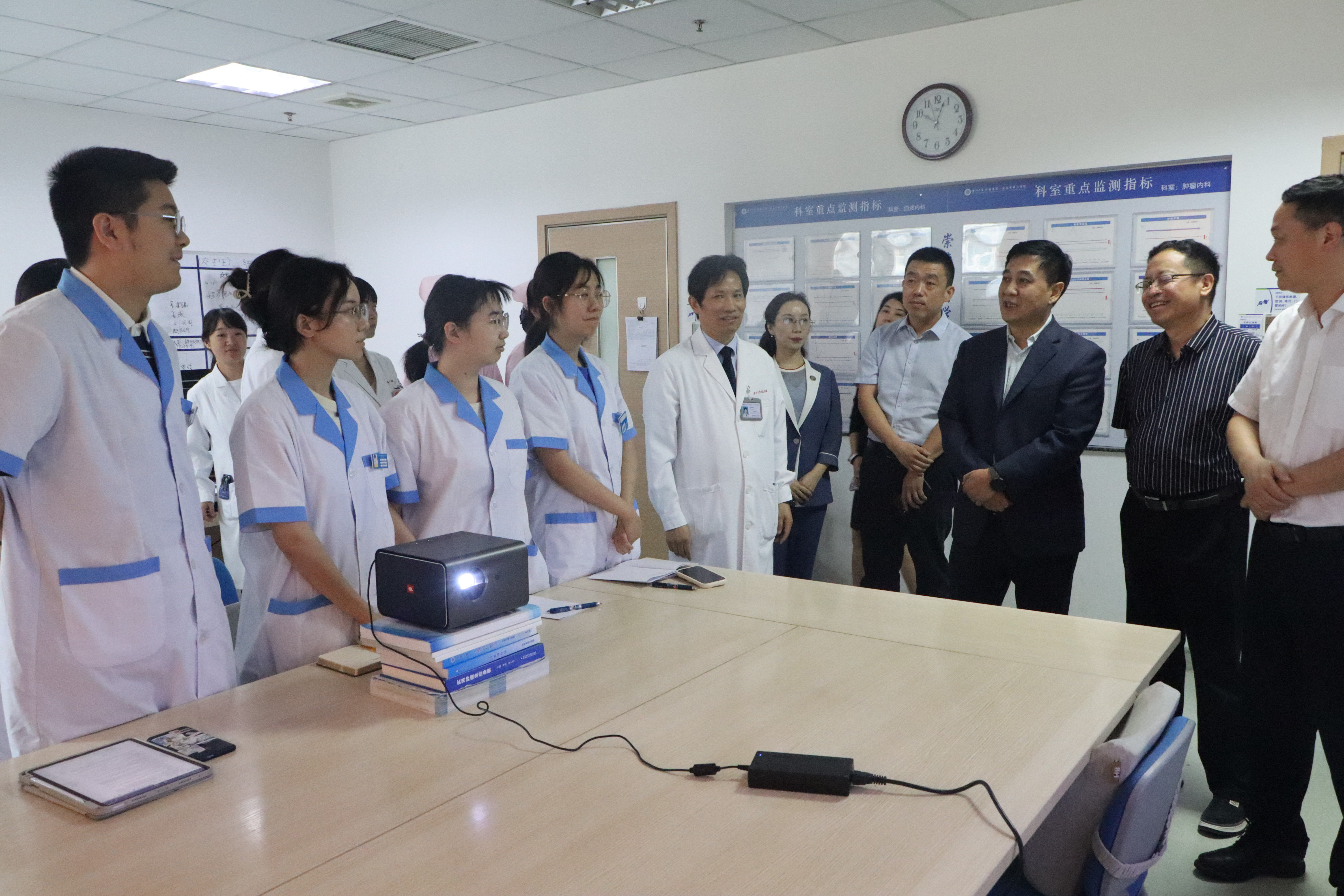 仪式结束后,王亚杰与嘉宾一同参观住院综合大楼,实地查看就医环境,并看望了在附属医院进行临床实习的2019级临床医学专业实习学生,同科室主任、带教老师以及实习同学深入交流。
