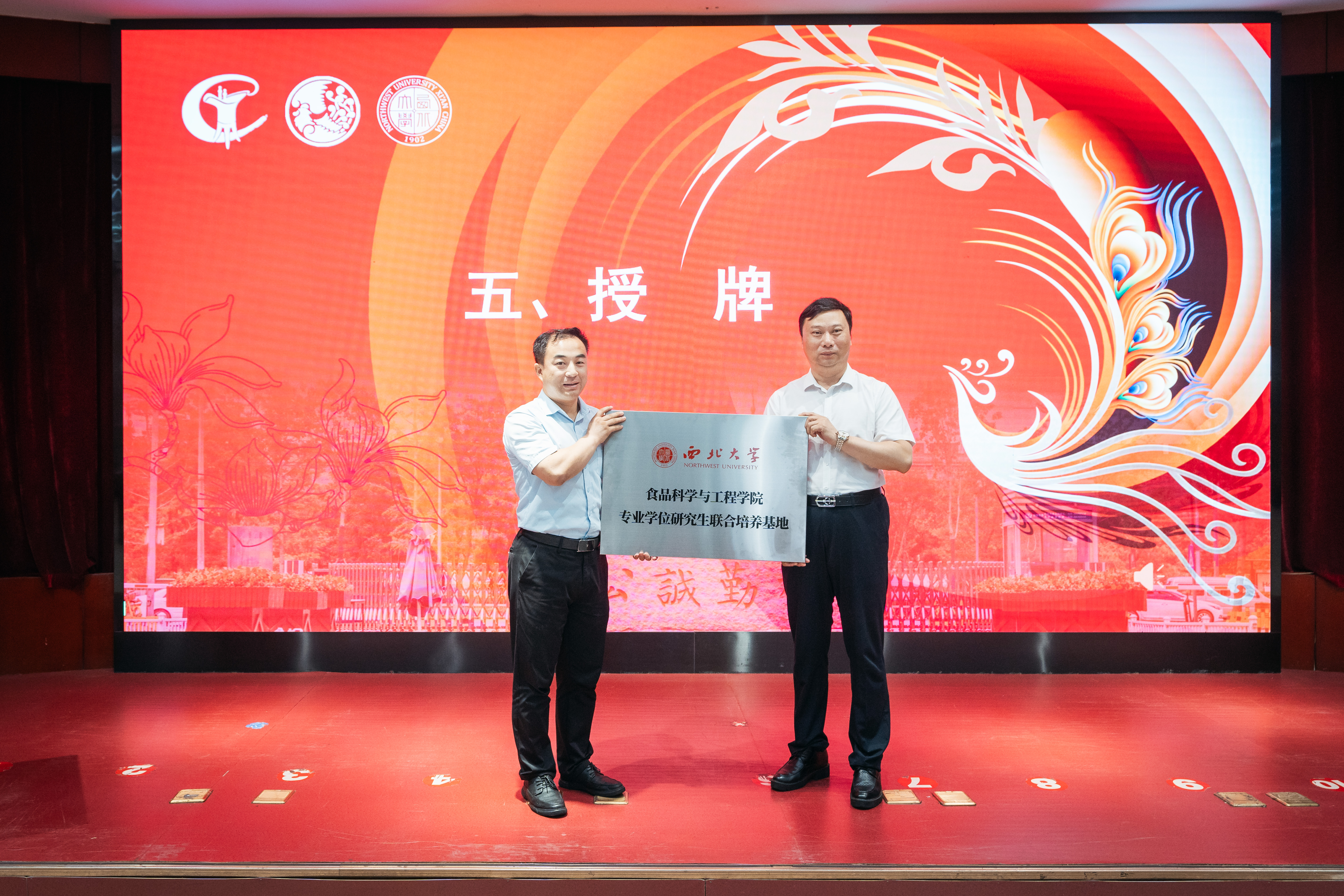 赖绍聪为陕西西凤酒股份有限公司授予“乐鱼网页版页面登录食品科学与工程学院专业学位研究生联合培养基地”,张周虎为学校授予“西凤酒专业人才培养基地”。