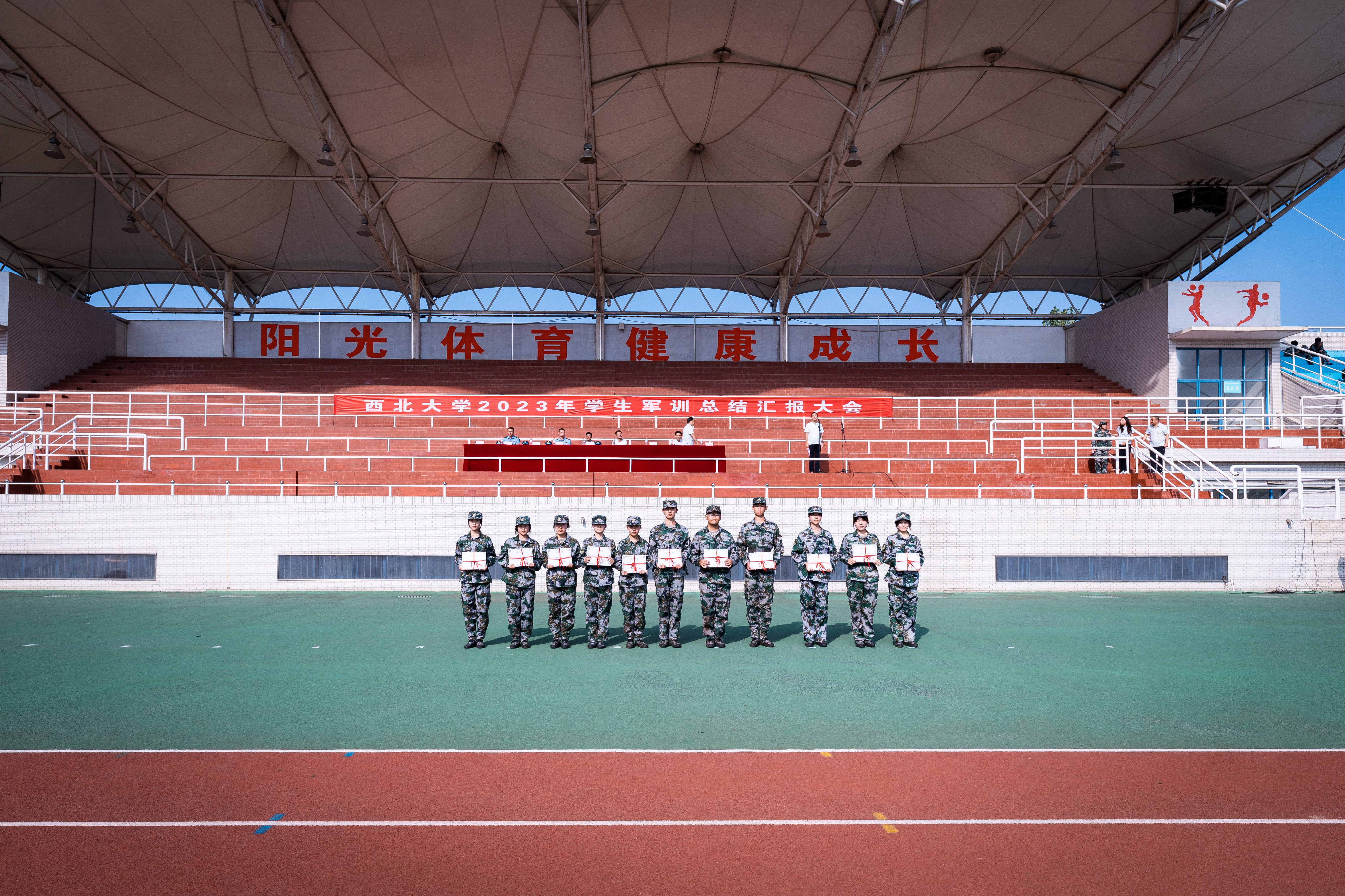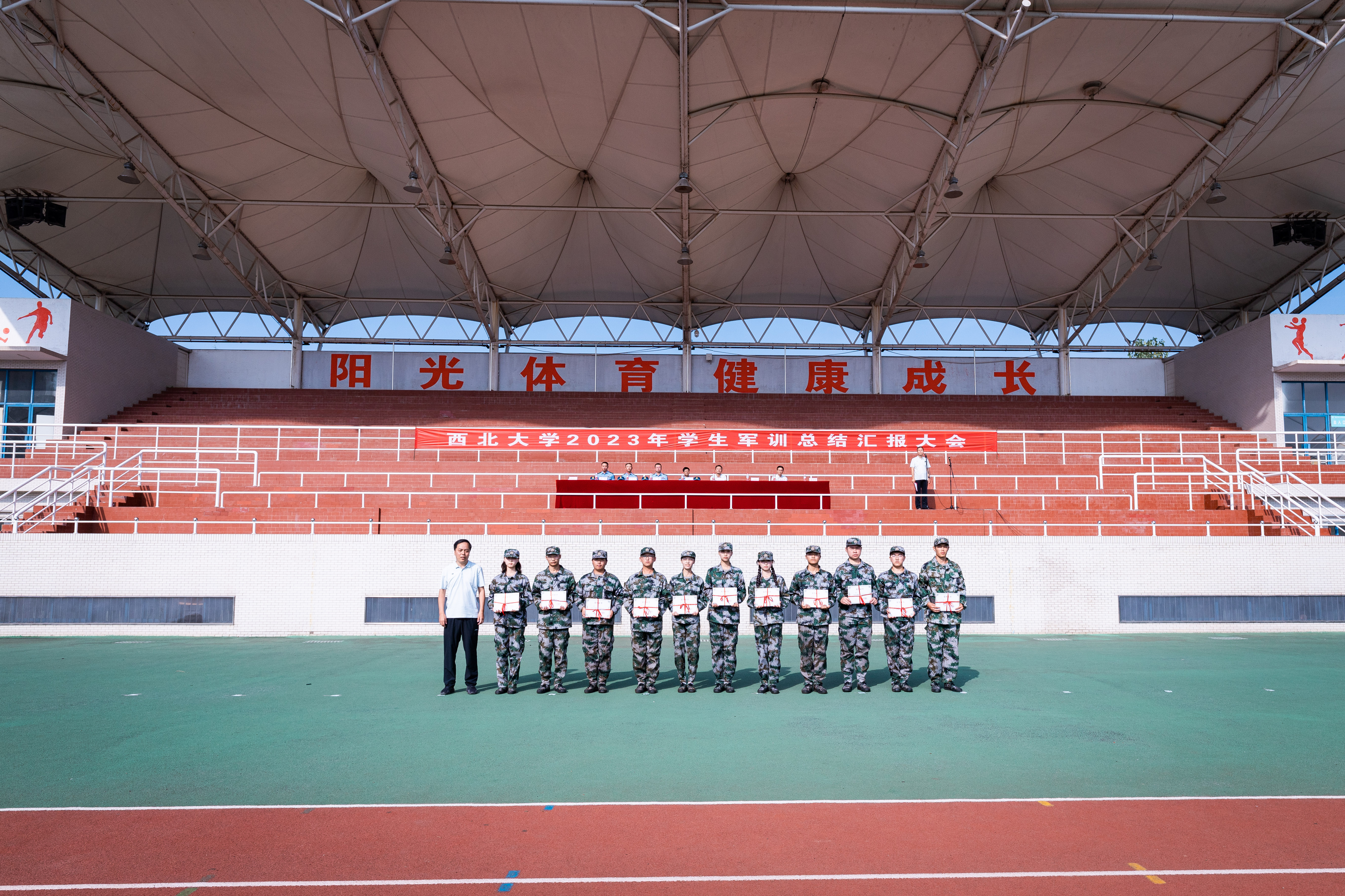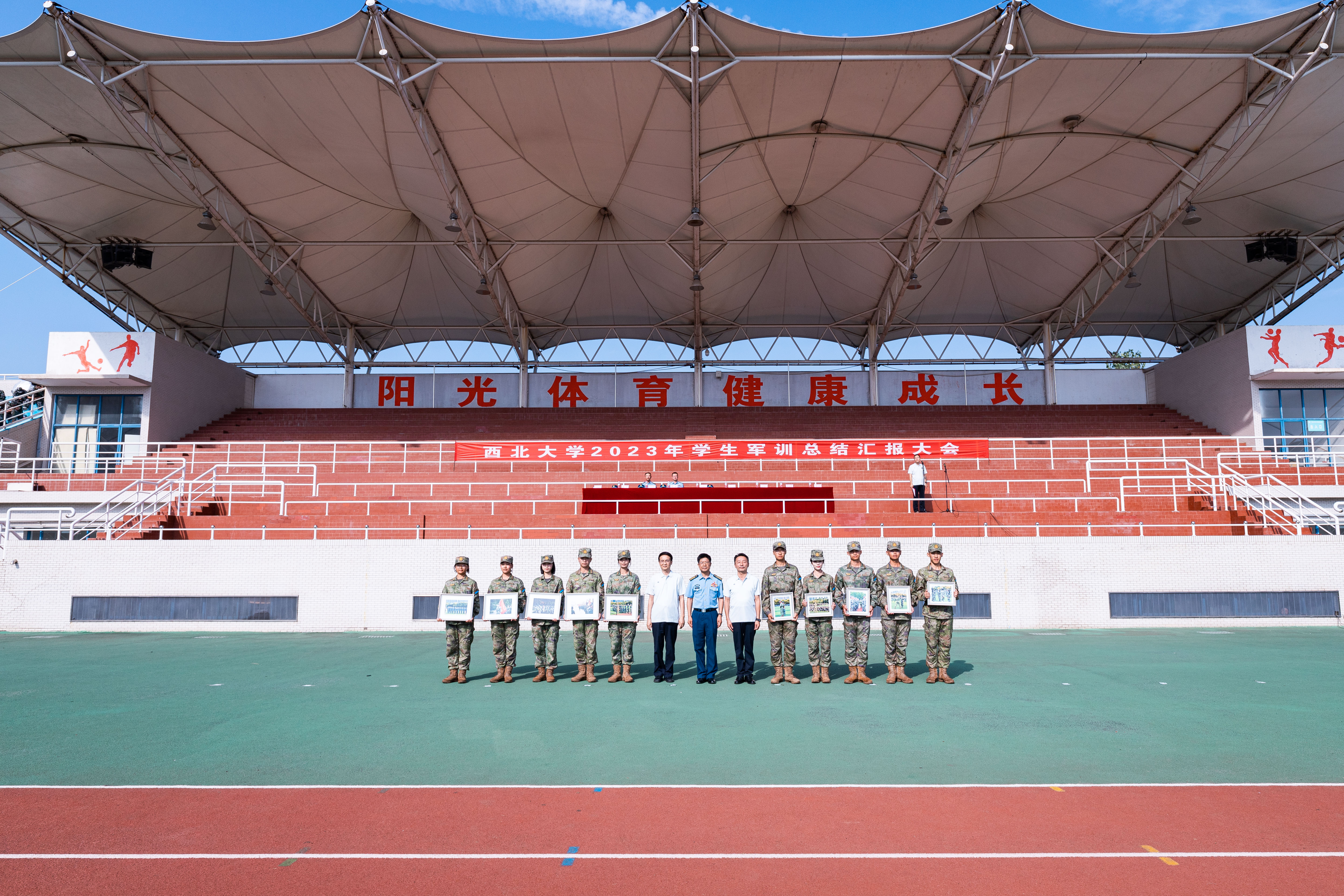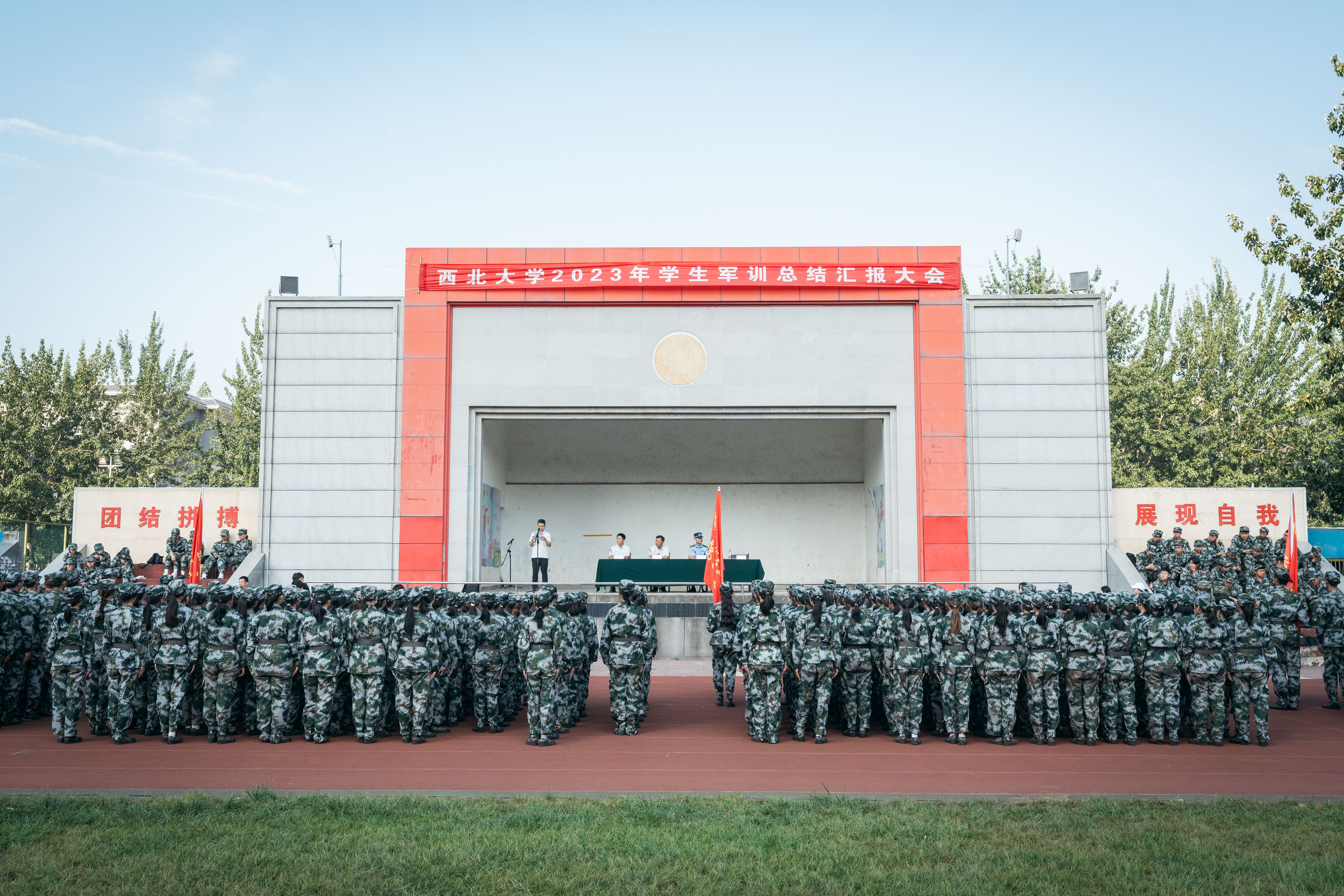 军训工作成果以汇演形式展现。严整的军容、威武的军姿、嘹亮的口号、整齐的队列、到位的动作、利落的收尾展现了新一代西大学子朝气蓬勃、昂扬向上的精神风貌,表达了刻苦学习、顽强拼搏、立志成长为祖国栋梁的共同愿望。