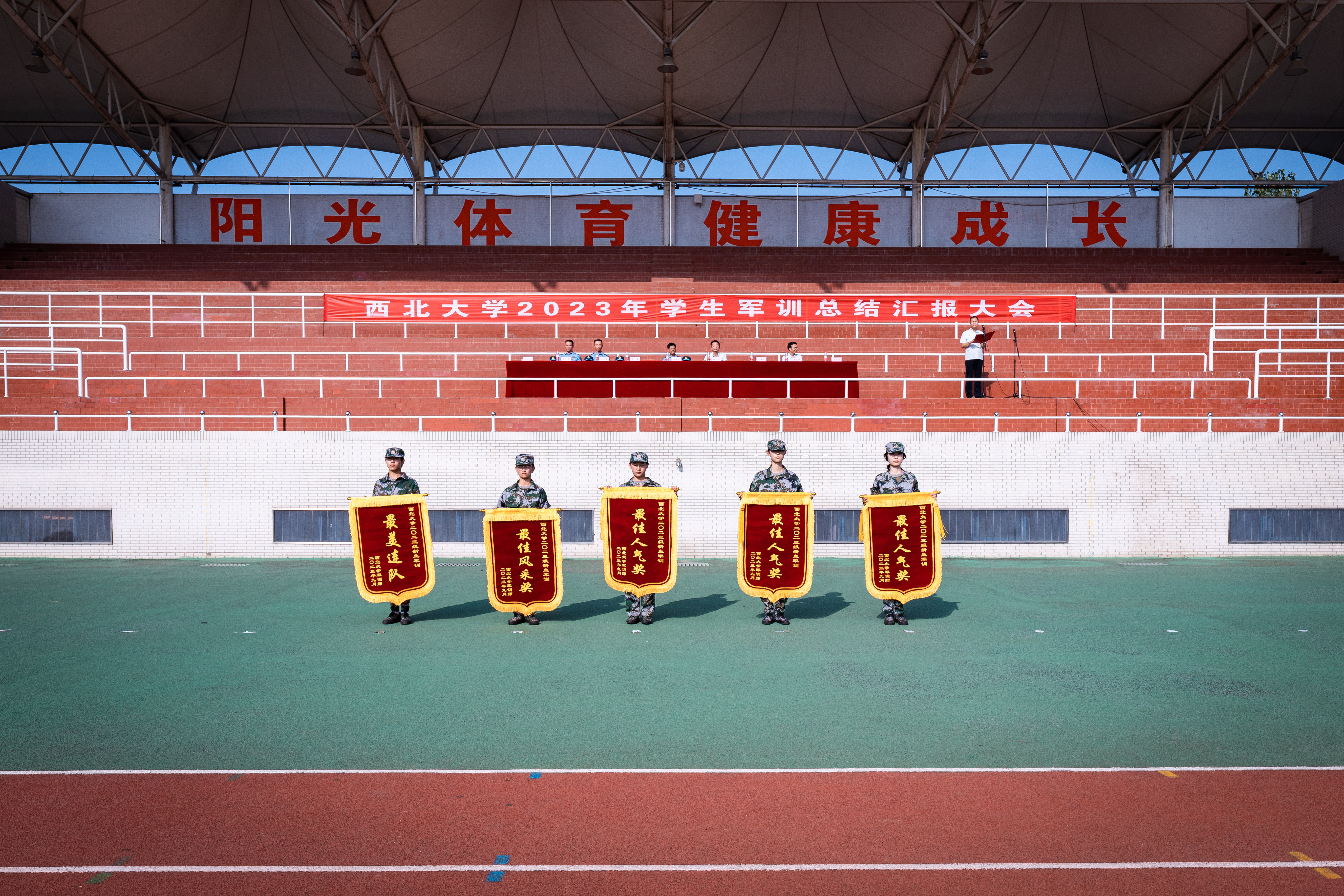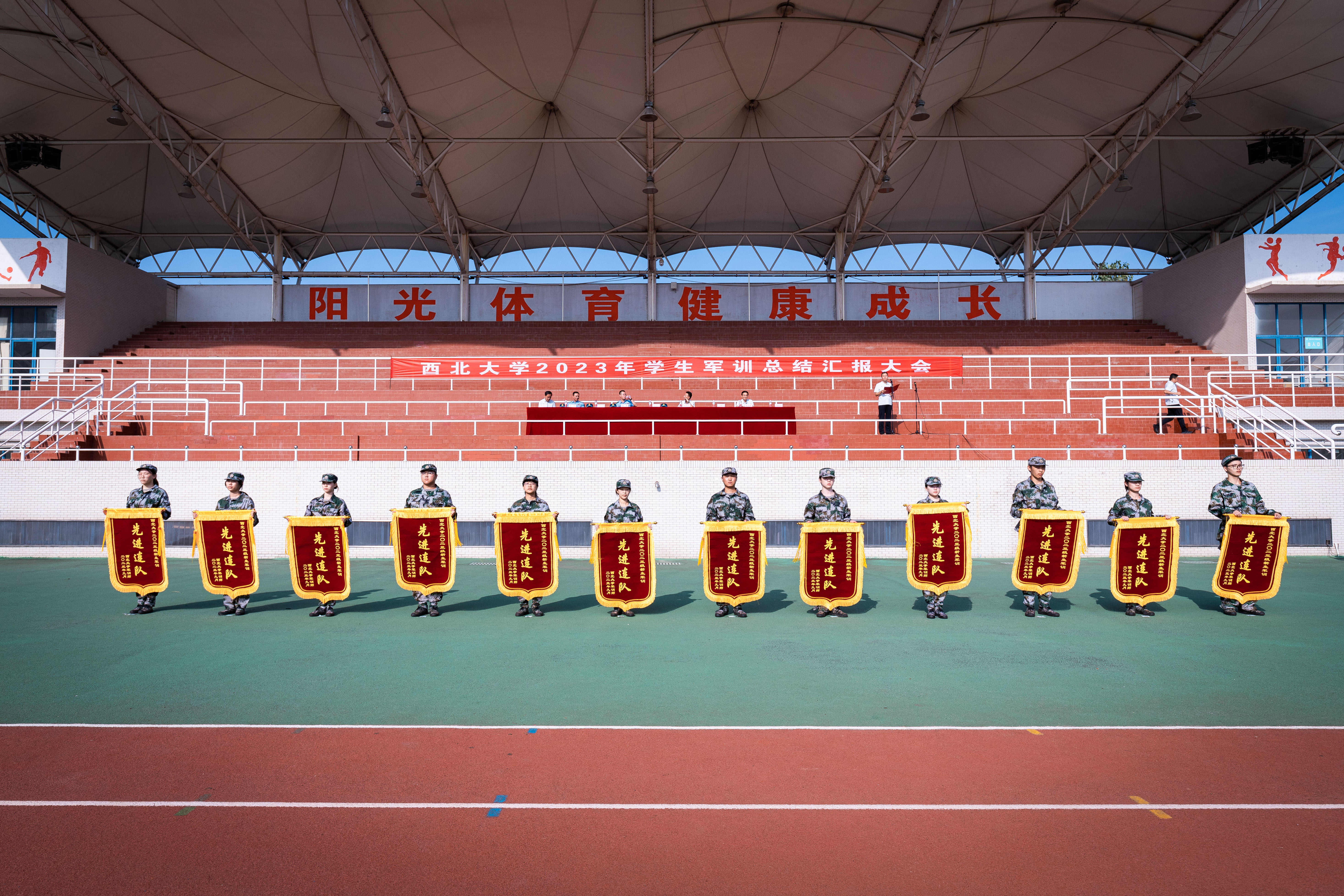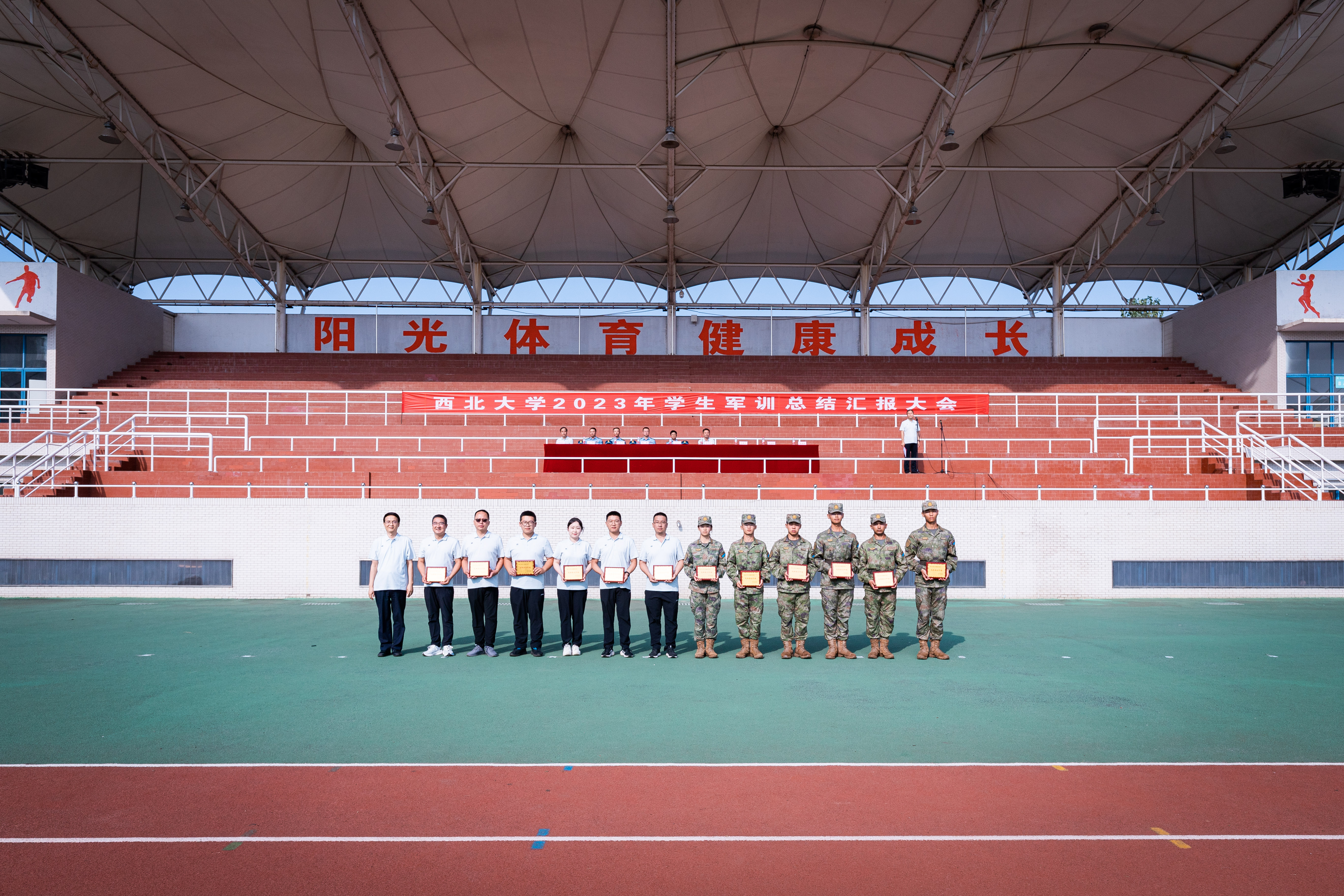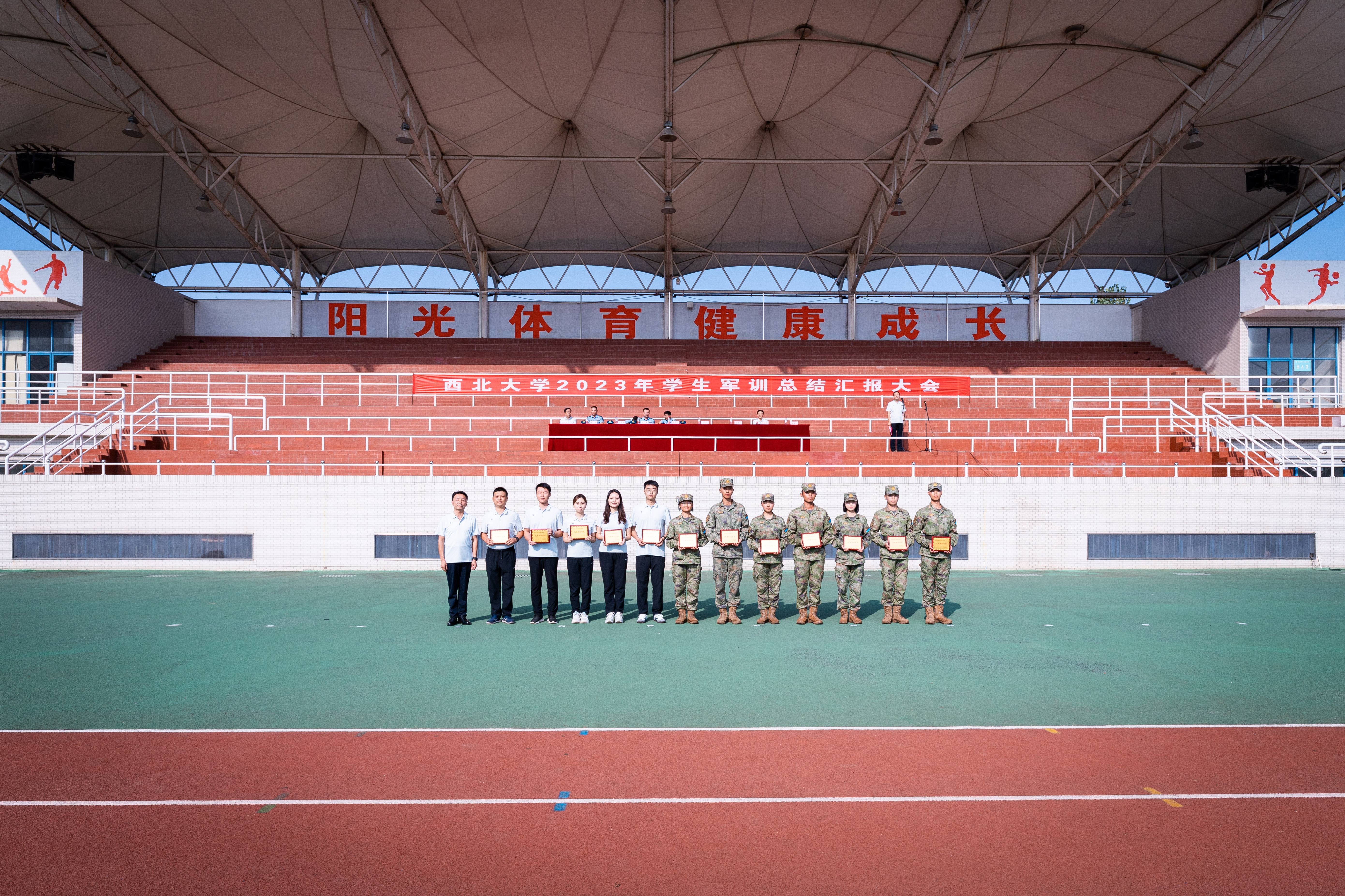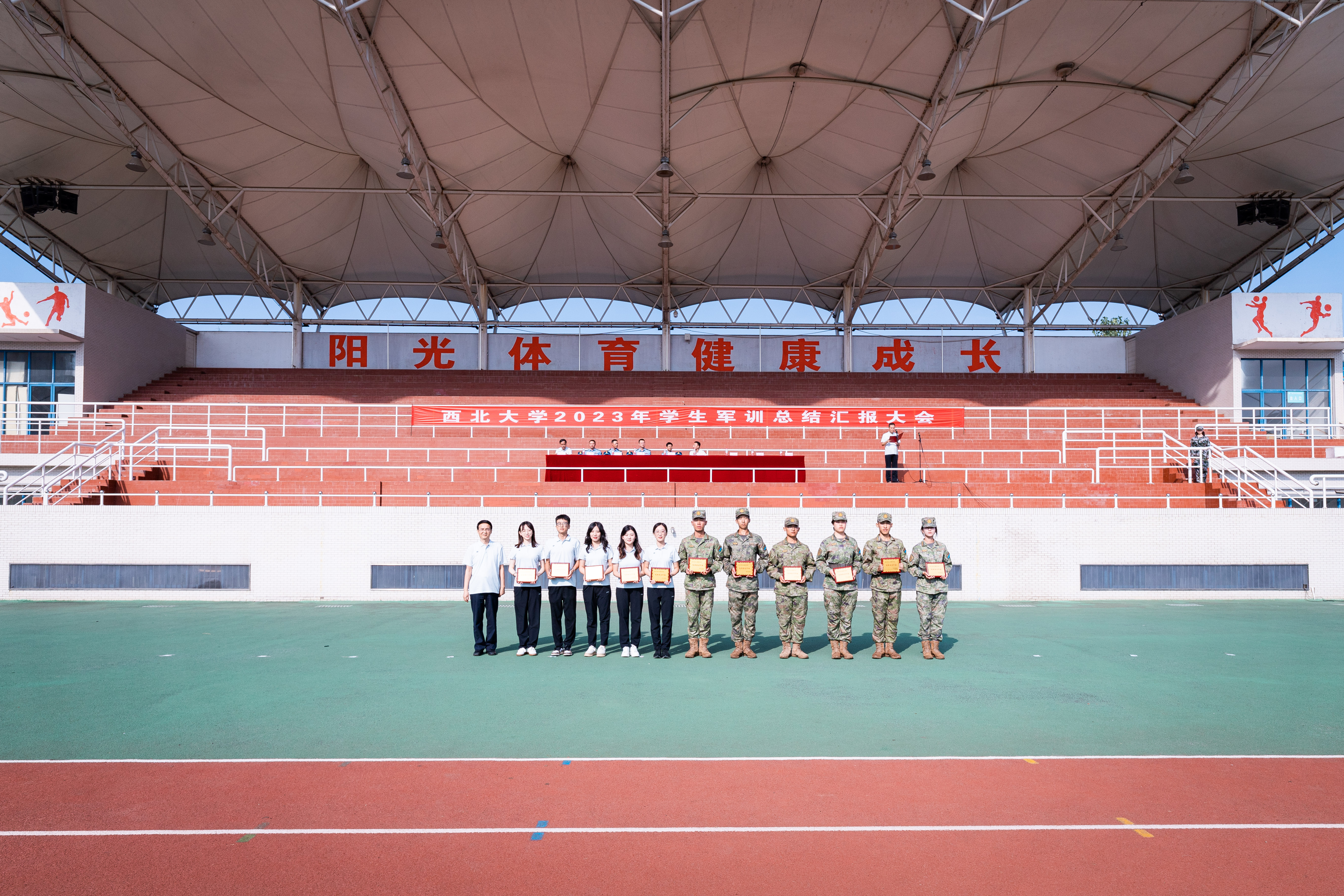 军训工作成果以汇演形式展现。严整的军容、威武的军姿、嘹亮的口号、整齐的队列、到位的动作、利落的收尾展现了新一代西大学子朝气蓬勃、昂扬向上的精神风貌,表达了刻苦学习、顽强拼搏、立志成长为祖国栋梁的共同愿望。