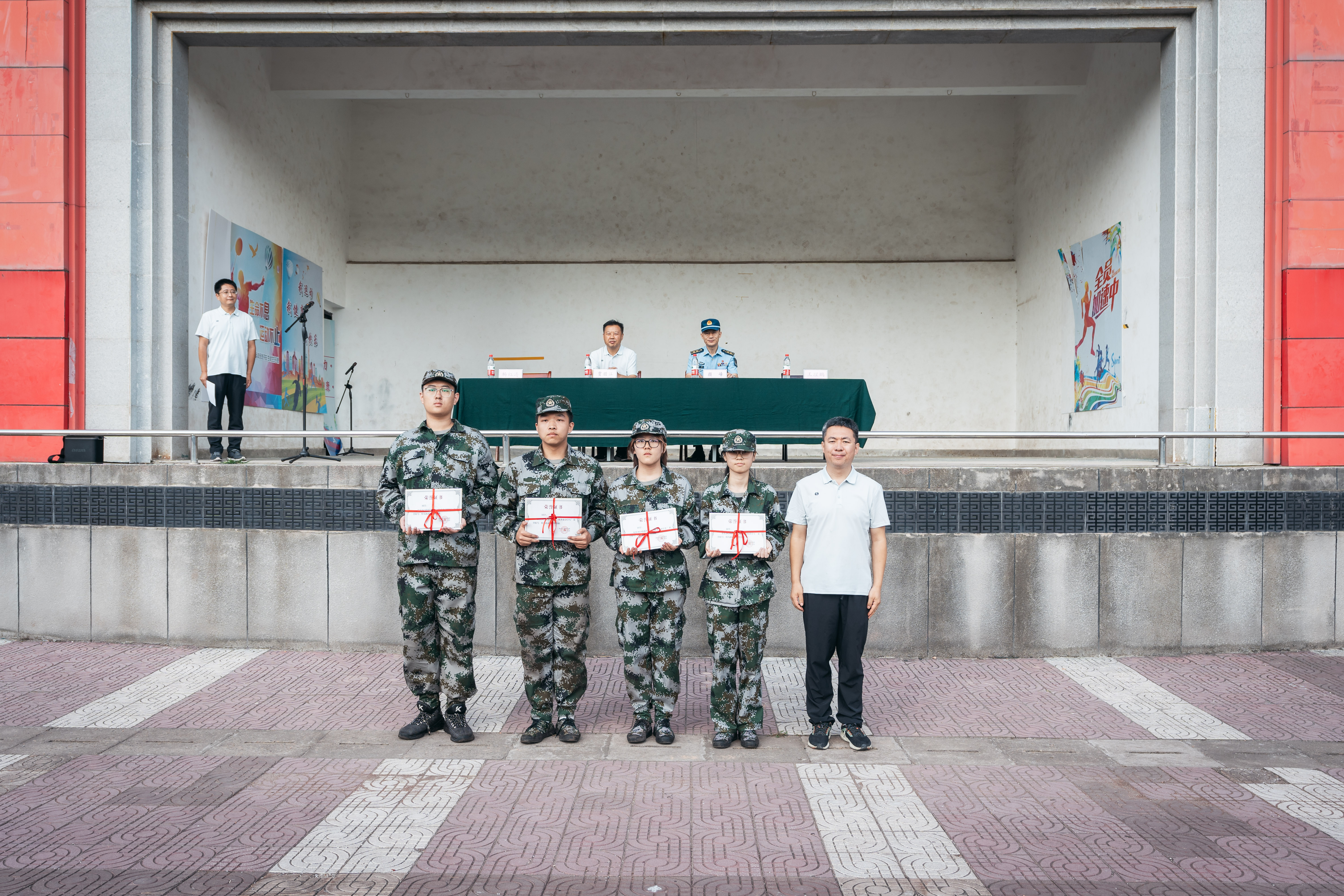 经济管理学院孙韩宇与地质学系段荣代表参训学生发言,他们回顾了为期两周的训练过程,代表全体参训学生表达了对教官与老师们的感谢。他们表示,要把军训作为人生新起点,以崭新的风貌面对未知挑战,团结互助,勇于拼搏,做一名有担当、有抱负、有理想的西大学子。