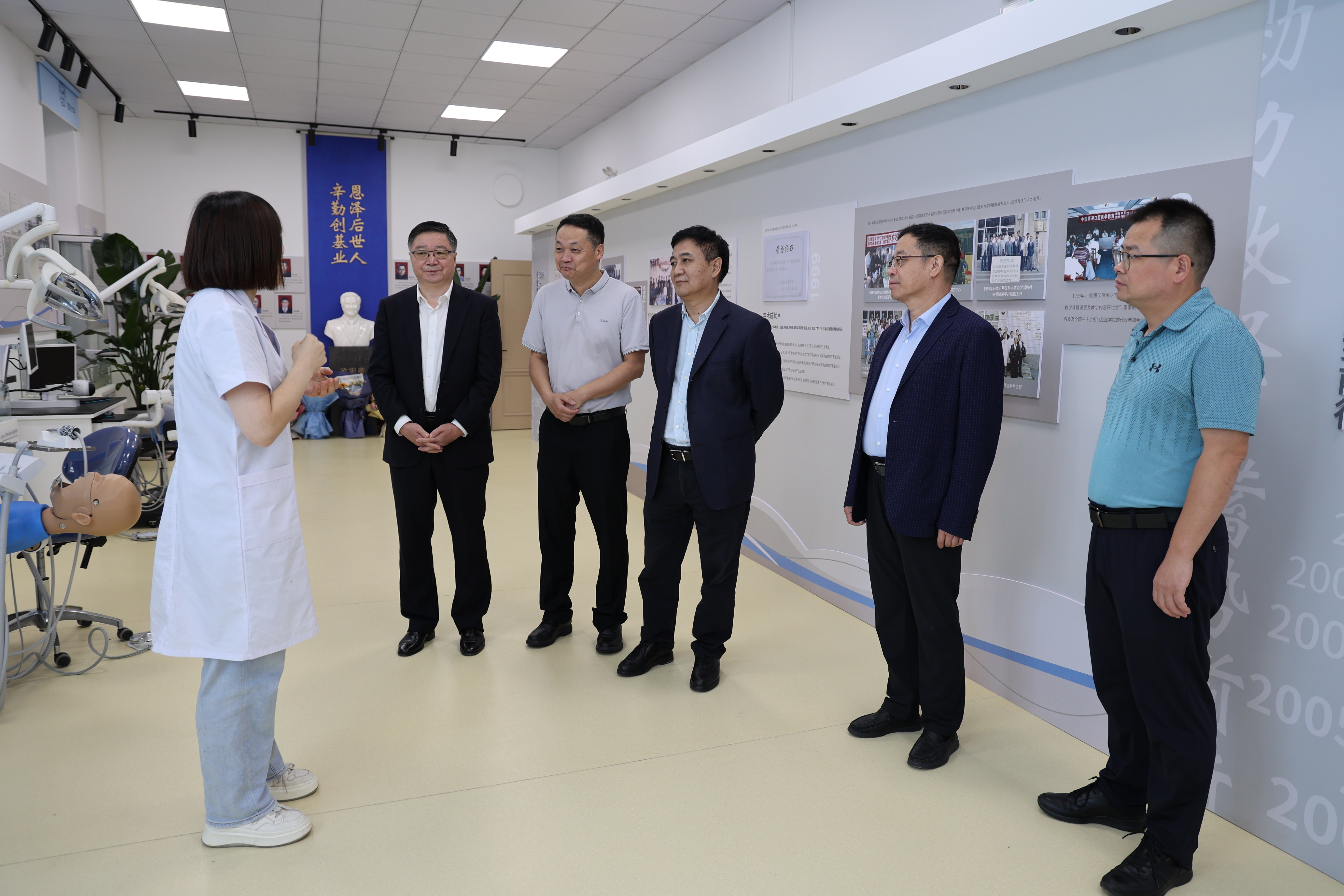 王亚杰一行先后调研走访了吉林大学第一医院、吉林大学口腔医院,参观了吉林大学人类疾病动物模型国家地方联合工程实验室、吉林大学口腔医院学生实习实训基地和临床实习基地,并与吉林大学白求恩医学部领导专家进行了座谈交流。