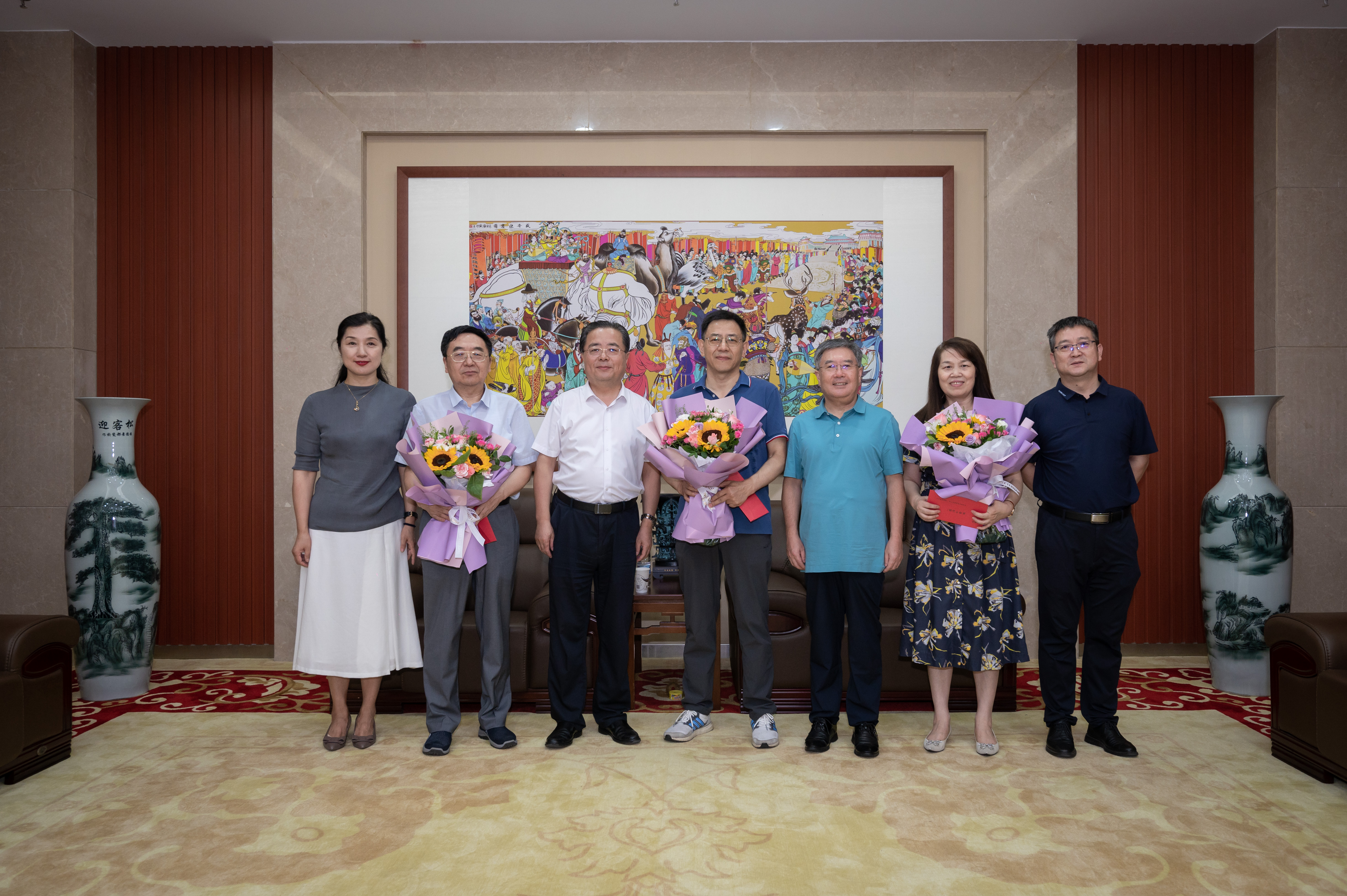 9月7日下午,省委教育工委委员、省教育厅副厅长王海波一行来到学校,看望慰问了全国高校黄大年式教师团队“中国古代文学教师团队”负责人李浩教授、最美科技工作者范代娣教授、国家杰出青年科学基金获得者董云鹏教授,向他们表示亲切问候和美好祝福,并向全校教师致以节日问候。校长郭立宏,校党委副书记张清参加慰问活动。王海波了解了三位教师的教学科研工作等情况,听取了他们对教育工作的意见建议,希望他们继续发挥专业优势和示范引领作用,为培养更多高素质人才作出新的贡献。他表示省委教育工委、省教育厅将继续支持乐鱼网页版页面登录的人才队伍建设。三位教师表示将立足教师岗位努力工作,落实立德树人根本任务,为学校“双一流”建设和我省经济社会发展作出积极贡献。