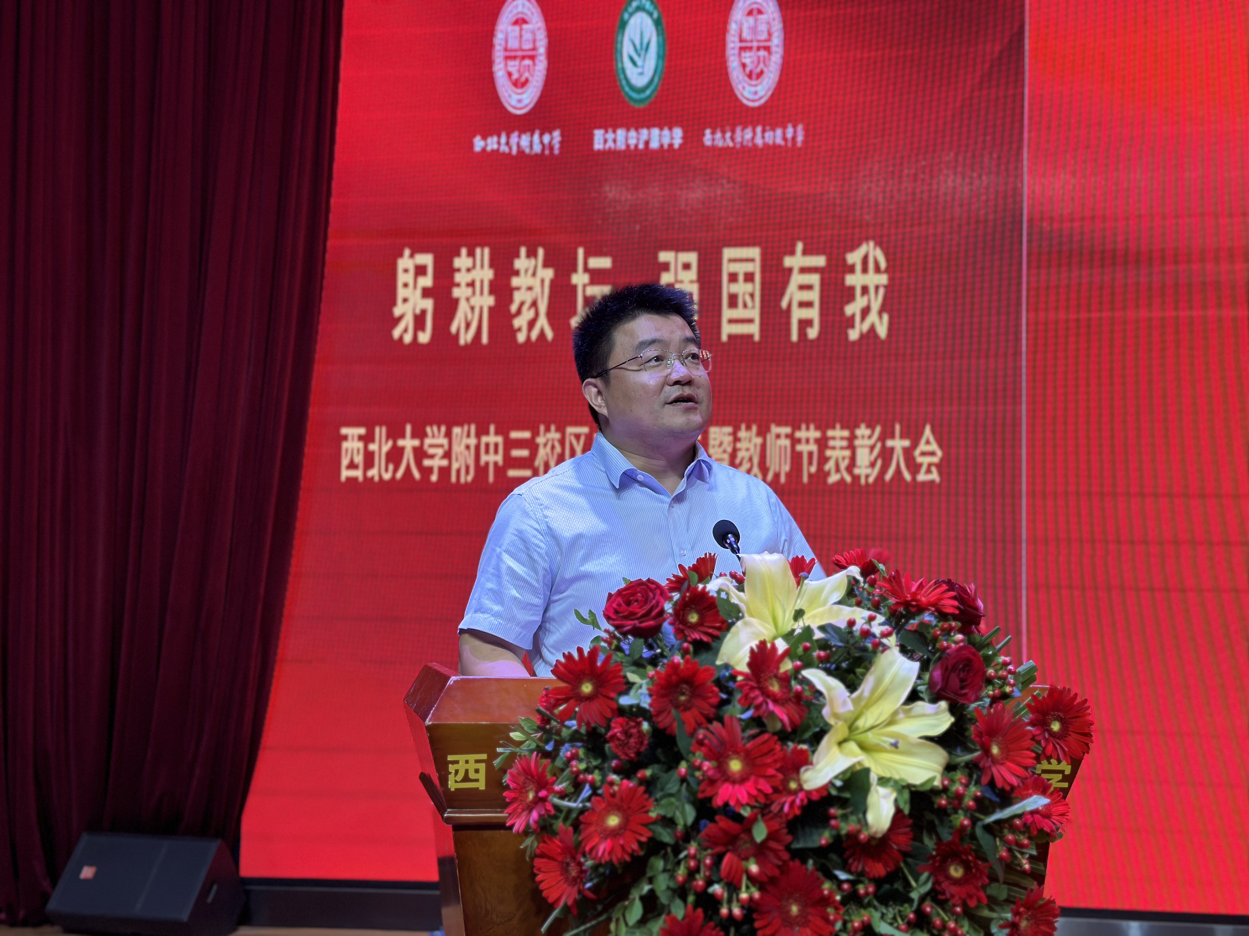 会议对近几年在教育教学、管理服务、疫情防控等方面做出突出贡献的教师进行了表彰奖励。陕西省教科院党总支书记、副院长吴积军应邀为与会教师作了题为“坚守教育初心担当时代使命”的专题报告。
