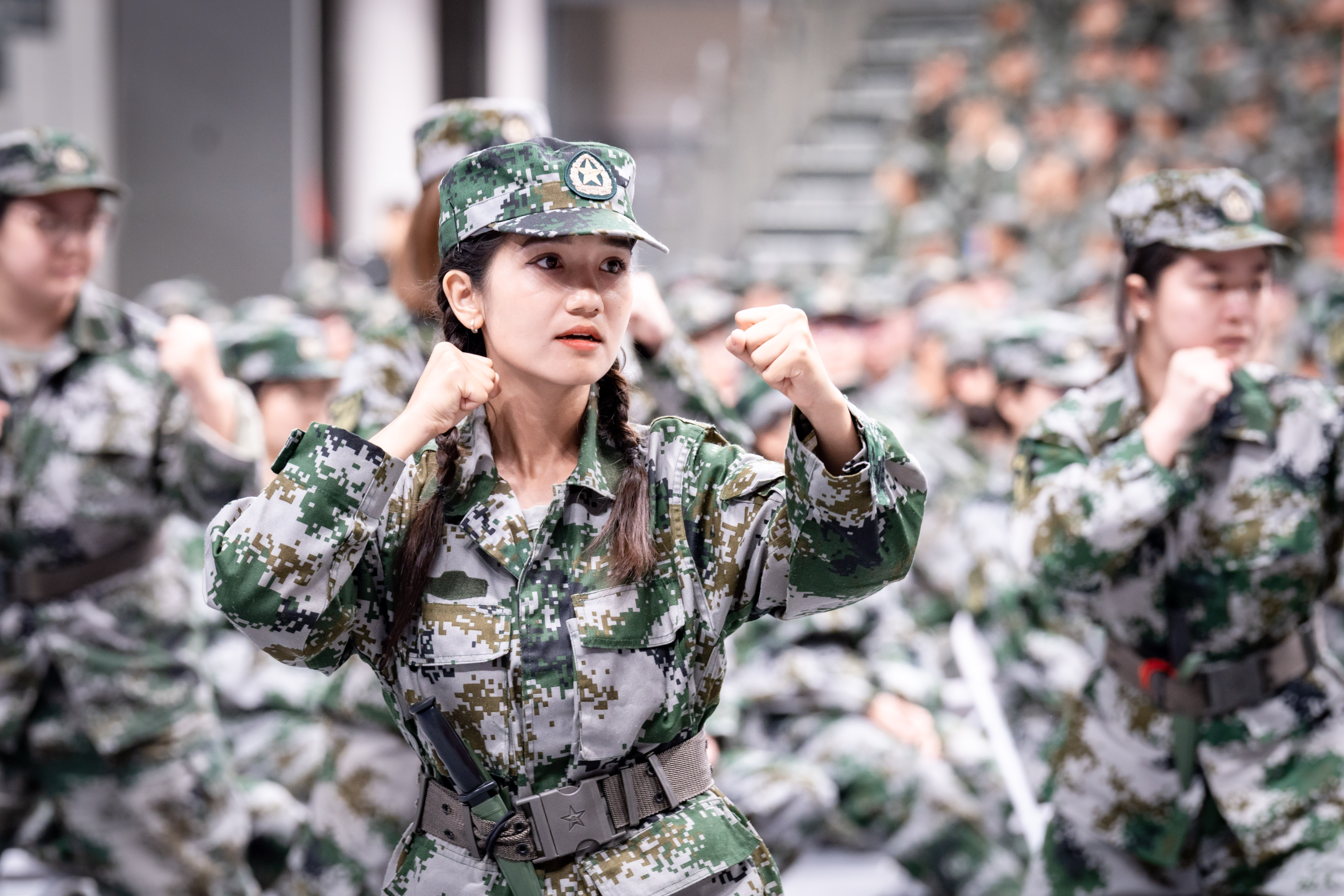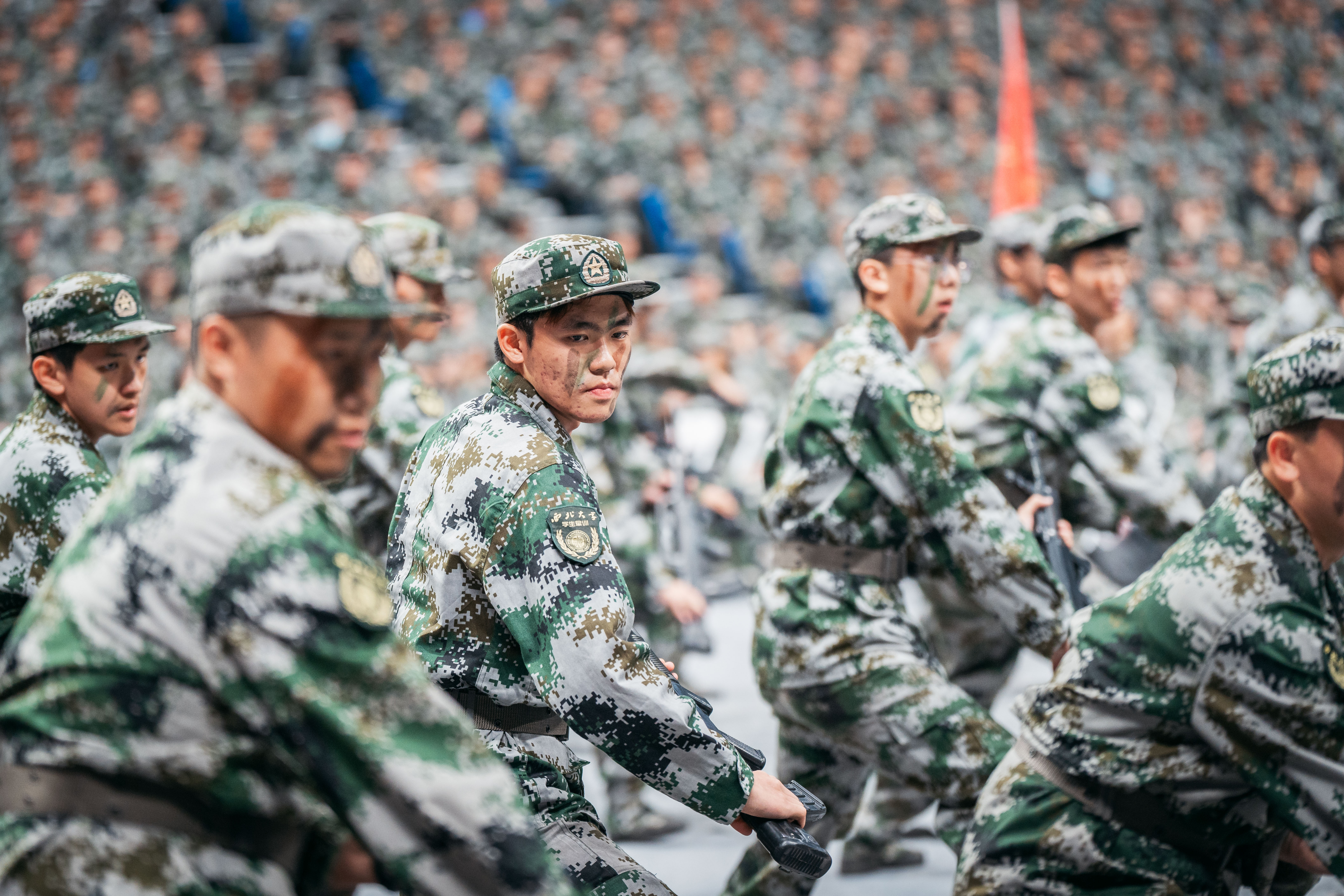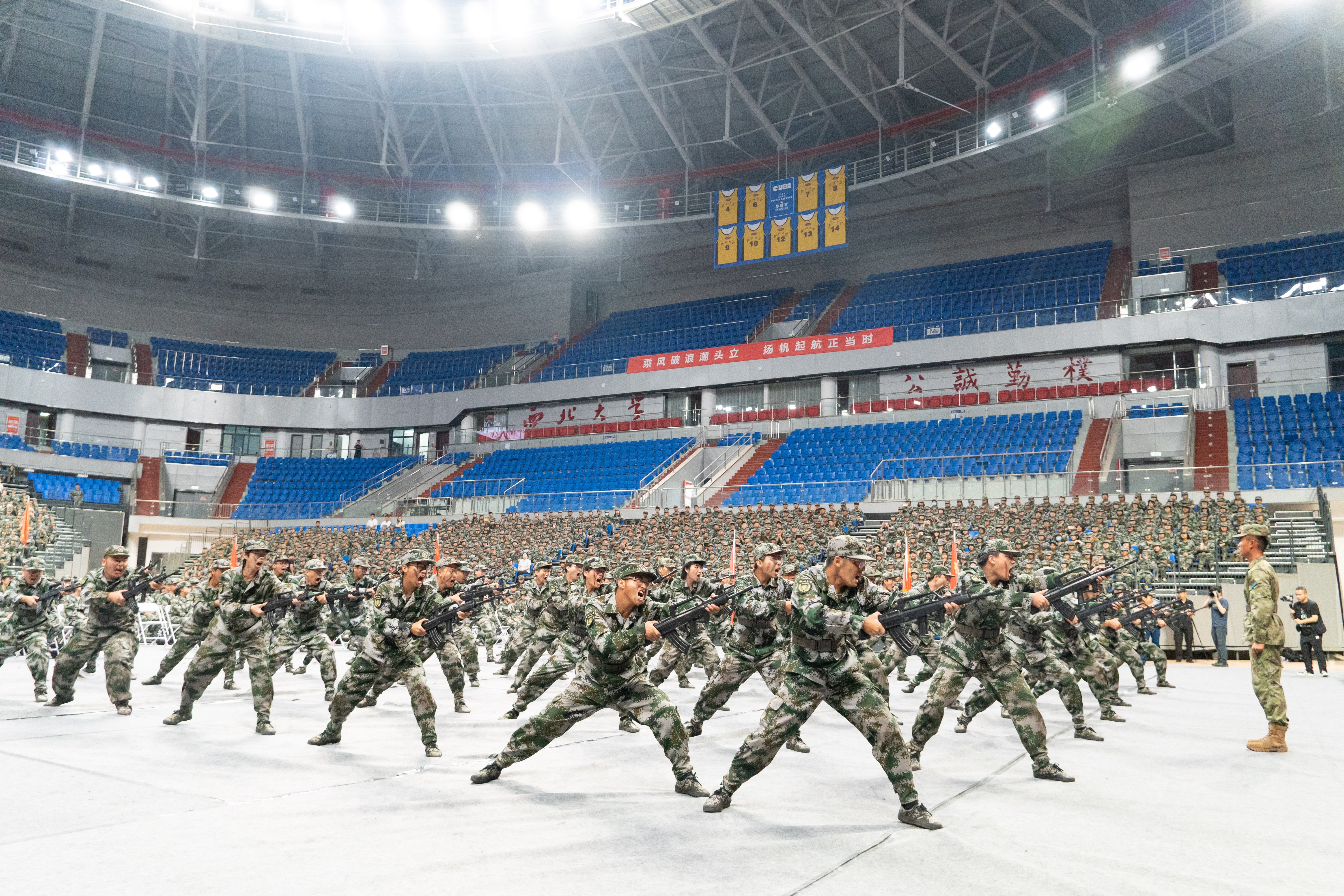 军训动员大会上,还进行了军事科目展示。(图/马骞 钱舟 袁子洋等)