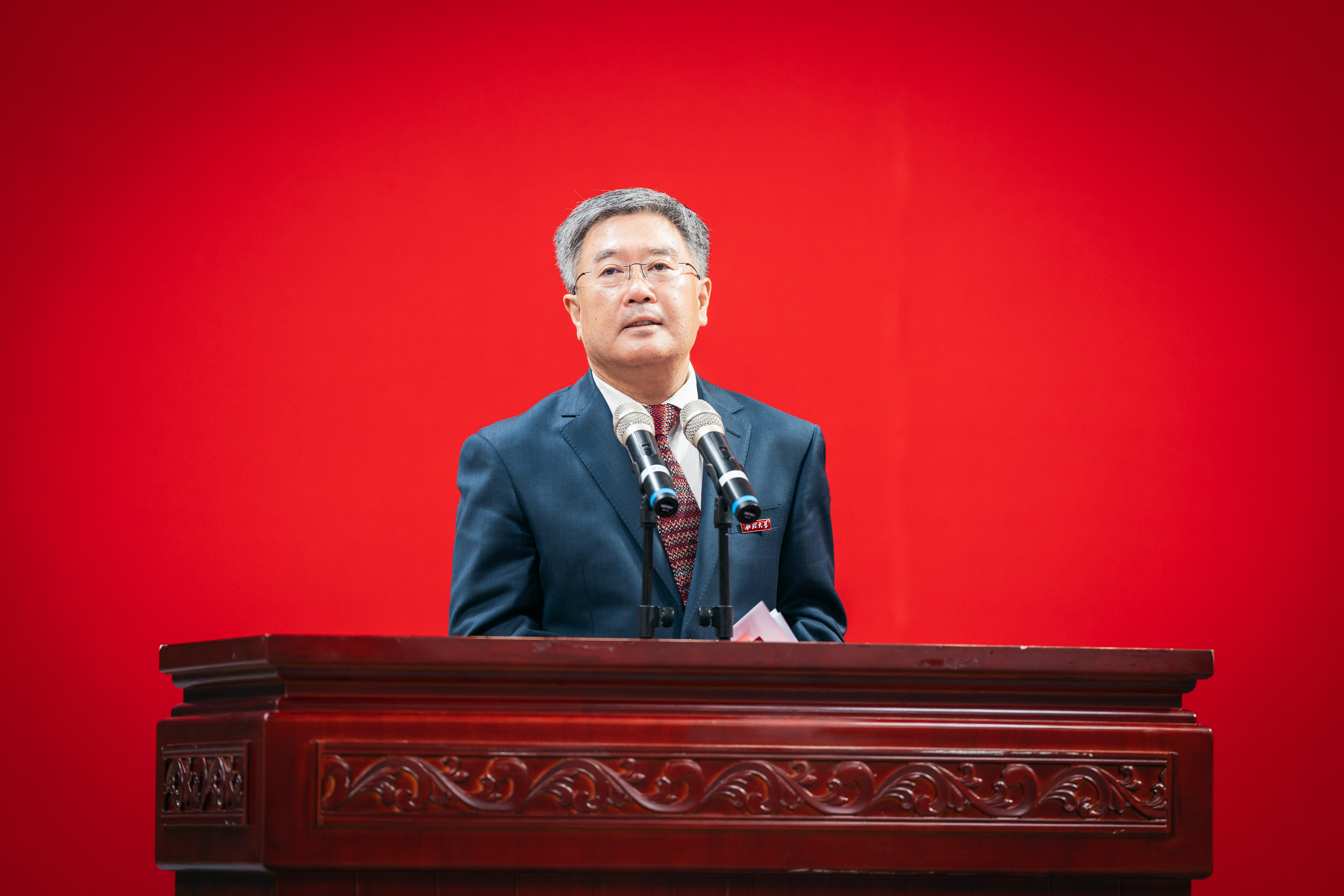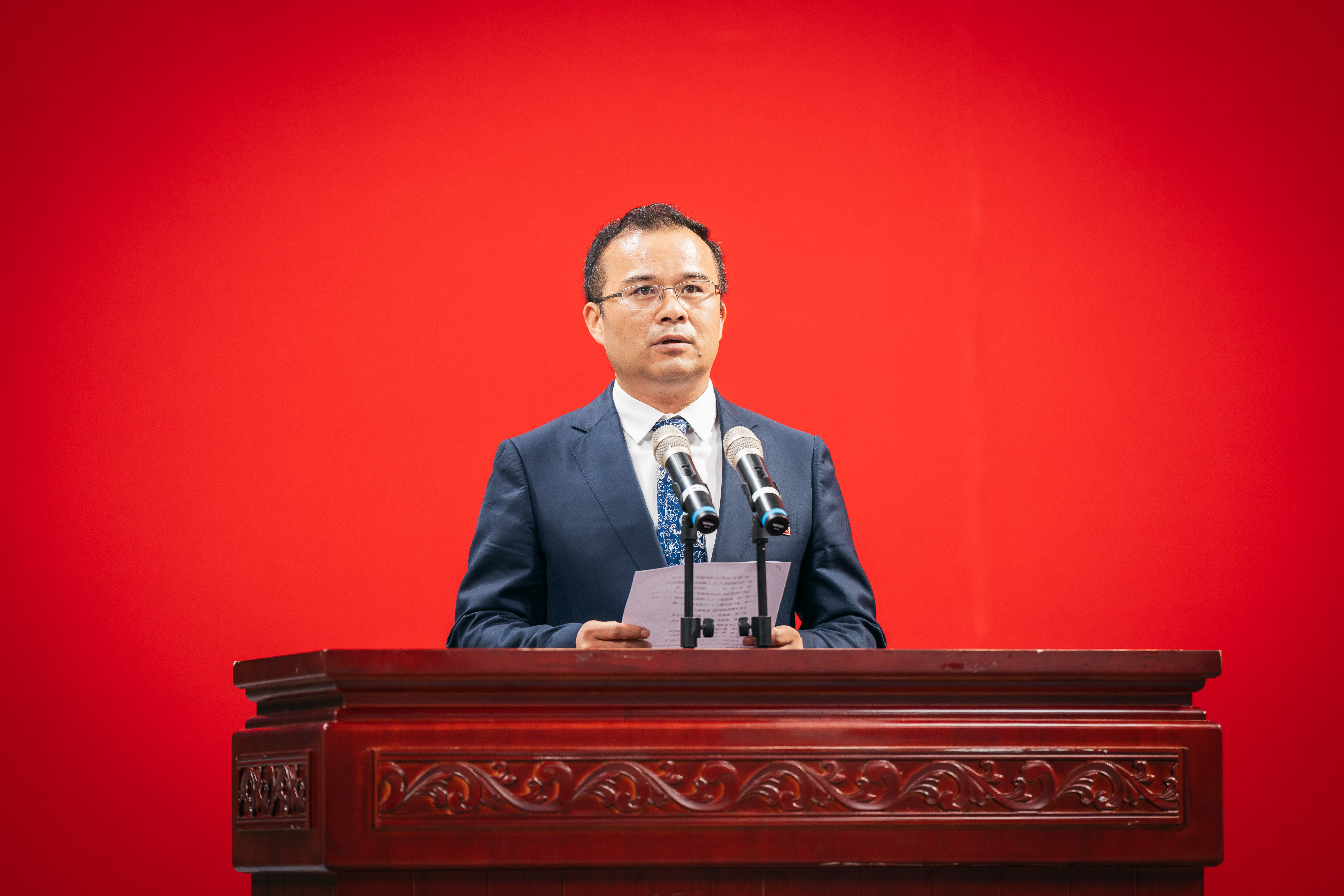 校长郭立宏代表学校对新生同学们表示欢迎,同时向新生们介绍了百廿学府厚重的历史底蕴和高远的文化追求。他寄语全体新生,鼓励同学们在众多不稳定、不确定中,坚定不移地增强自身实力、提升个人素养,以不变应万变;在风起云涌的时代浪潮中实现人生价值,切实承担起以中国式现代化推动中华民族伟大复兴的责任与使命。他用“成人”“成长”“成才”等三个关键词,对新生提出了建议。他指出,新生成人的关键在于自律、独立和责任,希望同学们体会自律、独立和责任的内涵,做一个热爱自己所热爱的、坚持自己所坚持的、担当自己该担当的青年学子。他强调,新生在成长的过程中,要保持探索尝试的激情,广泛地挖掘、发现自己的兴趣点、提升点,敢于突破自我设限,跳出“舒适圈”,广泛地涉猎各种事物,在经历中体验、在体验中感悟、在感悟中成长,勇敢地去体会未知和不确定性所带来的奇妙和可能性,同时也要炼就经受挫折的勇,不可因一时困顿而贬低自我、否定未来。他要求,新生在成才过程中要把握住成才必先立志、成才须得奋斗、成才彰显价值三个方向。他期望同学们在最好的时光不辜负最美的青春韶华,在学习探索、知行合一中增智慧、长才干,努力成长为可堪大用、能担重任的栋梁之才。