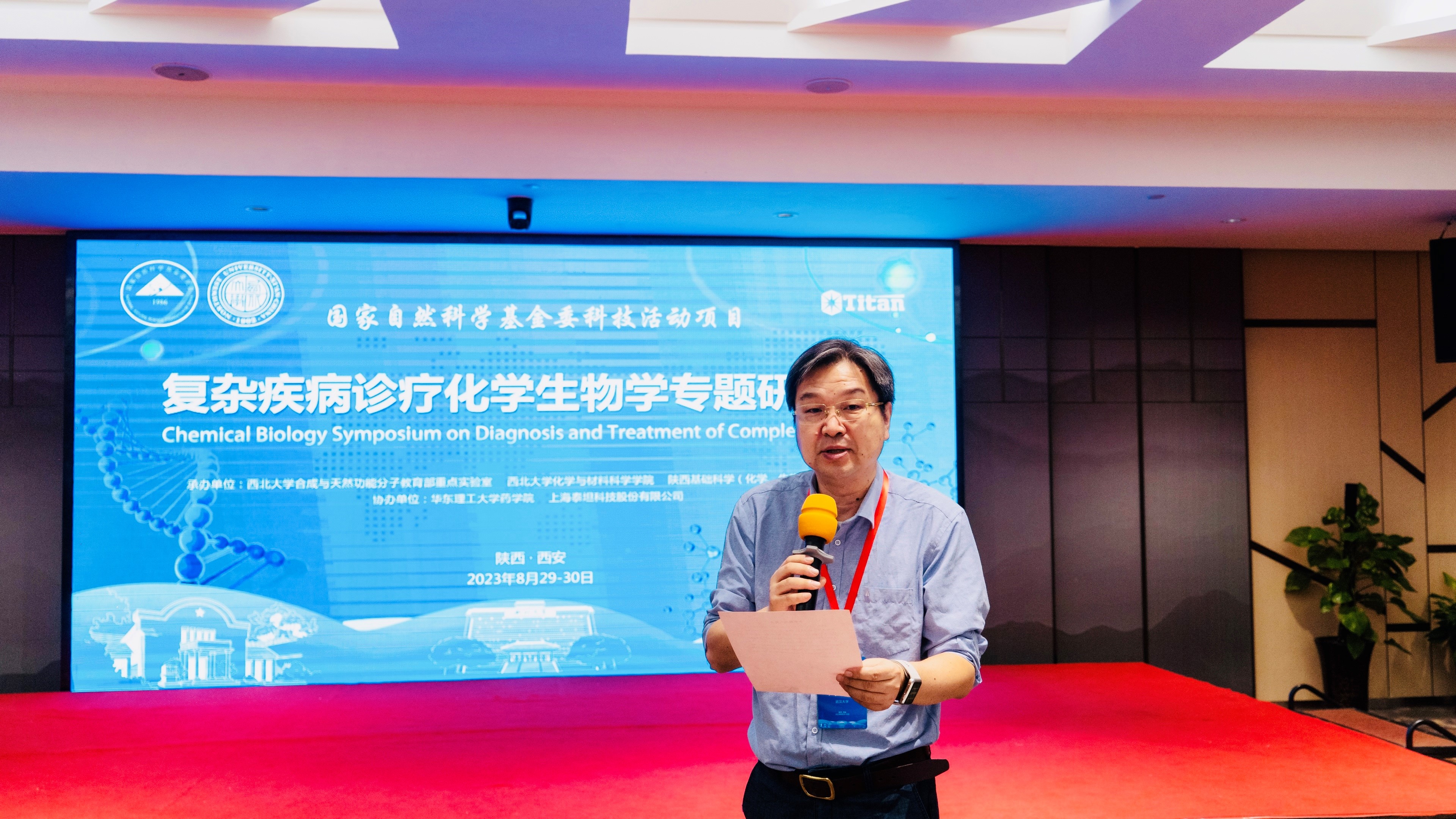 8月30日,由乐鱼网页版页面登录承办,华东理工大学、上海泰坦科技股份有限公司协办的国家自然科学基金委员会科技活动项目“复杂疾病诊疗化学生物学专题研讨会”在西安召开。此次研讨会由中国科学院上海药物研究所岳建民院士、武汉大学周翔院士共同担任学术委员会主席,该科技活动项目负责人、乐鱼网页版页面登录化材学院郭媛教授与华东理工大学副校长李剑教授共同担任组委会主席。国家自然科学基金委员会化学科学部化学生物学学科黄艳主任,以及60余名领域内知名专家学者出席会议。乐鱼网页版页面登录党委常委、副校长常江出席开幕式并致辞,科技处、化材学院等相关单位负责人和教师参加会议。
