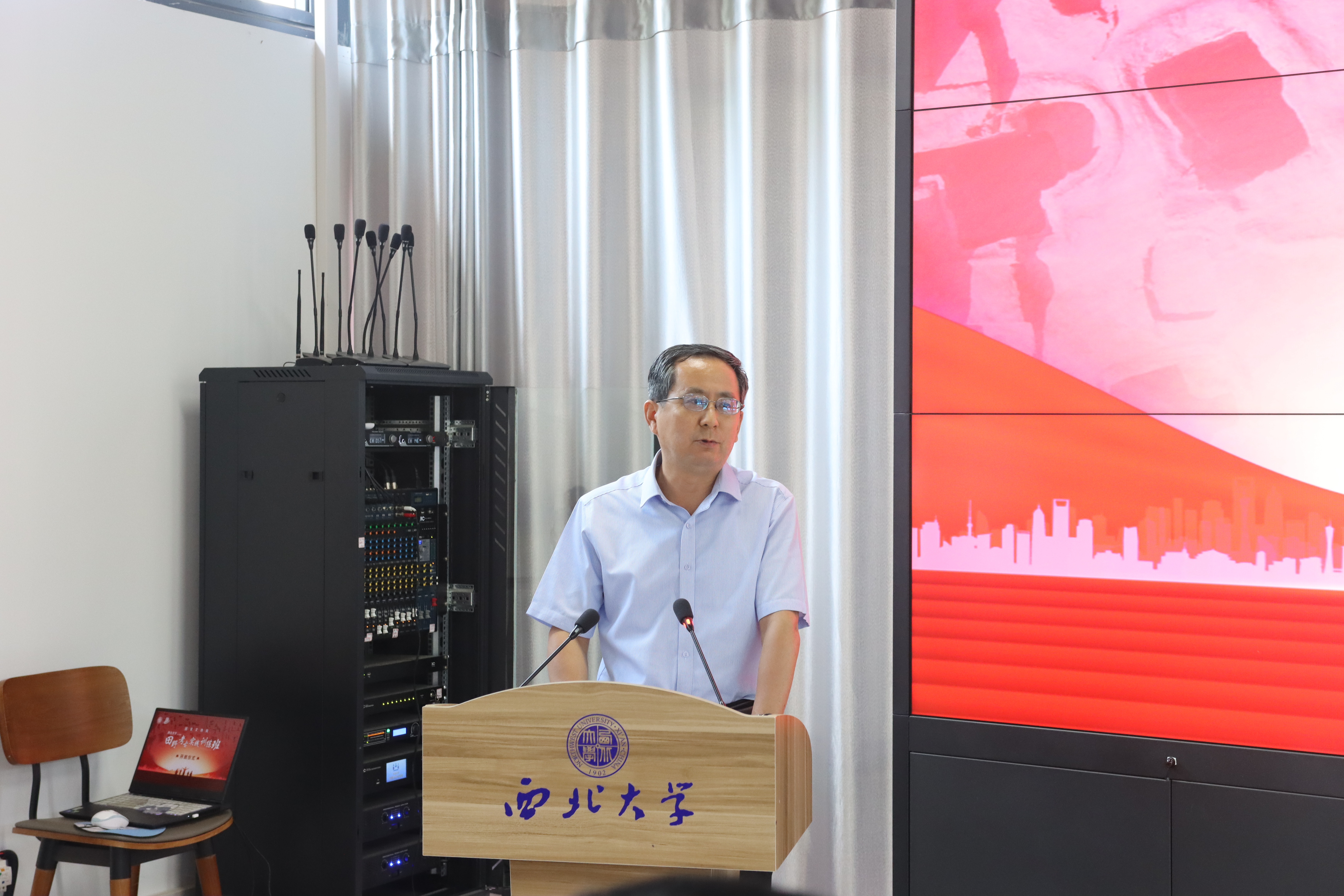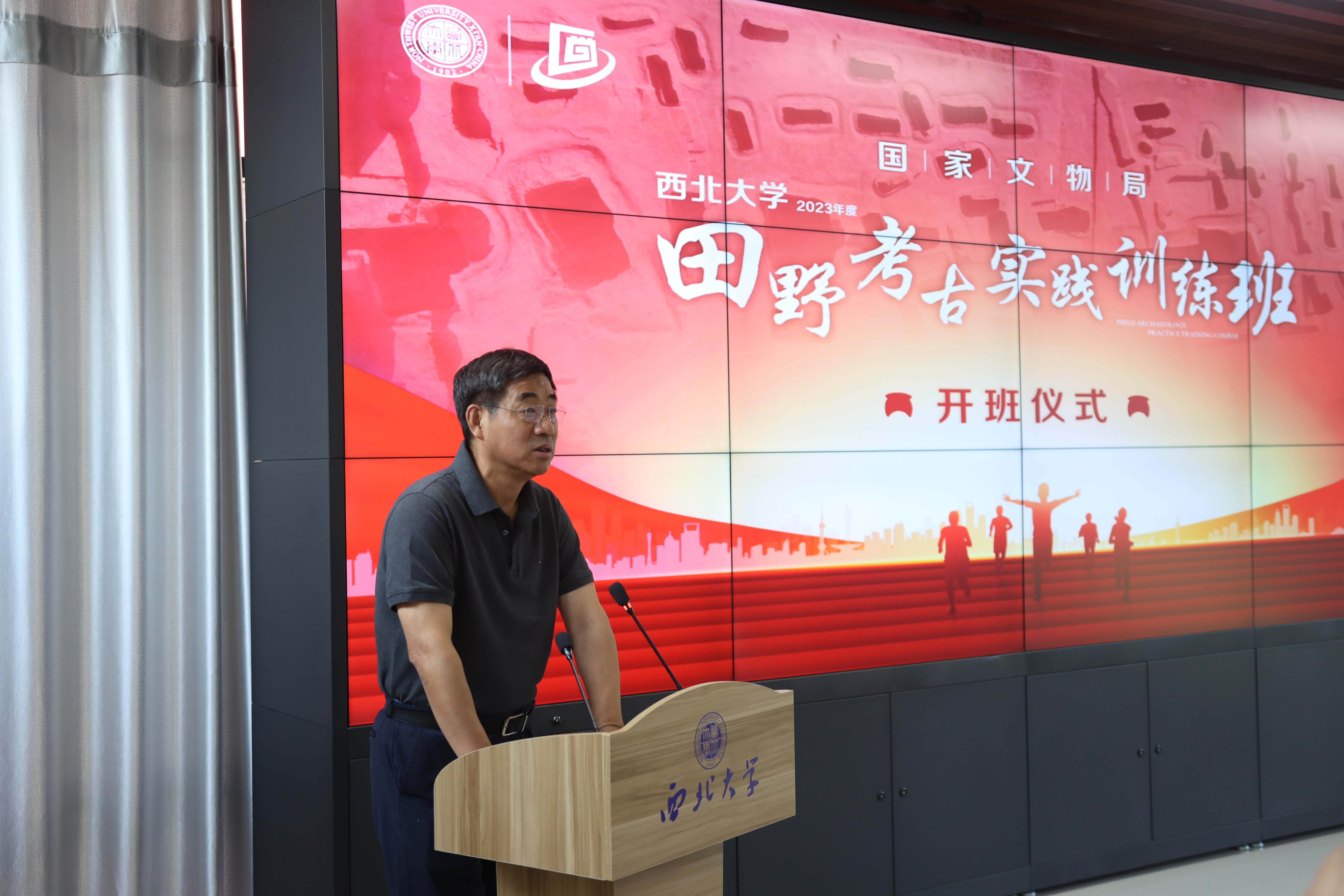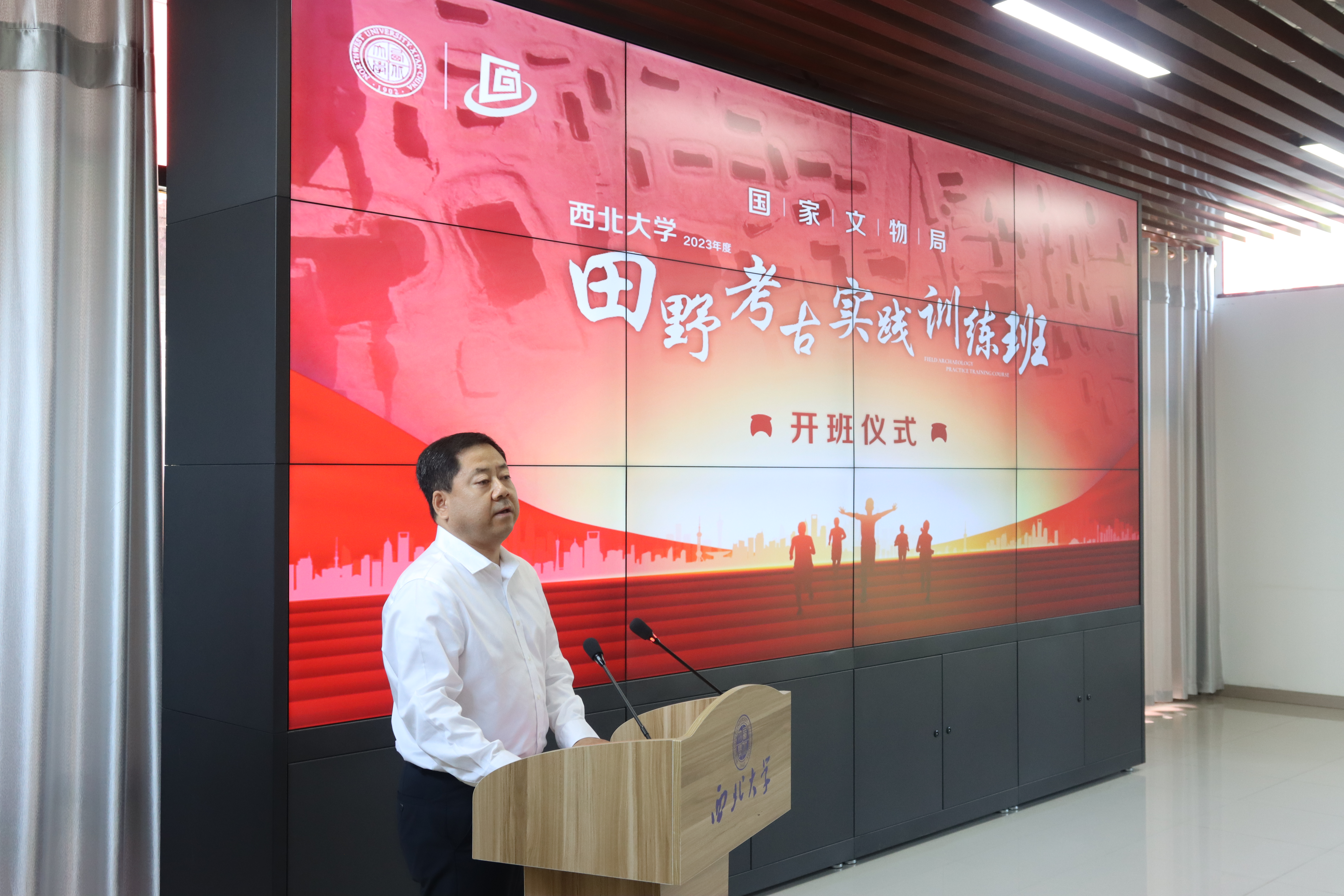 王亚杰代表学校向参加会议的领导、专家和学员表示欢迎,向长期支持学校发展的上级部门、地方政府和文博机构表示感谢。他首先介绍了学校基本情况和考古学科建设成效,指出西大考古始终坚持服务国家文博考古发展战略大局,依托国家文物局文博人才培训示范基地,承担举办了一系列全国及各省市文博单位行业培训,此次田野考古实践训练班的举办,正是充分发挥学科优势,创新校地协同融合,用实际行动贯彻落实新时代文物工作方针的具体体现。希望基地不断推广新的田野考古技术与理念,大力推行现代化、标准化的田野考古教学培训,提供最优的服务、最好的保障和最佳的团队,系统提升学员的学术研究能力和田野发掘水平,搭建学研合一的交流平台,为中国考古事业发展作出更大的贡献。
