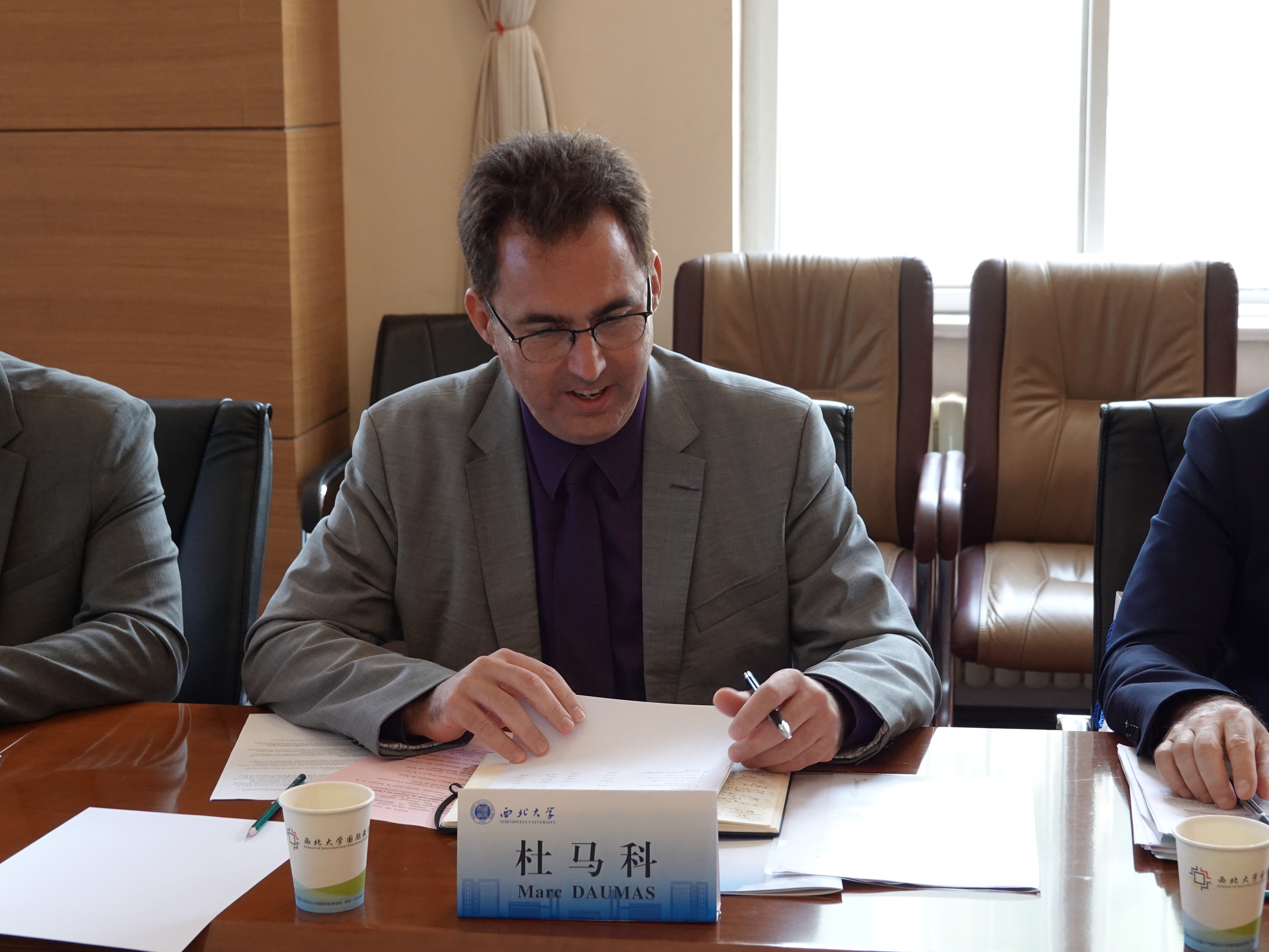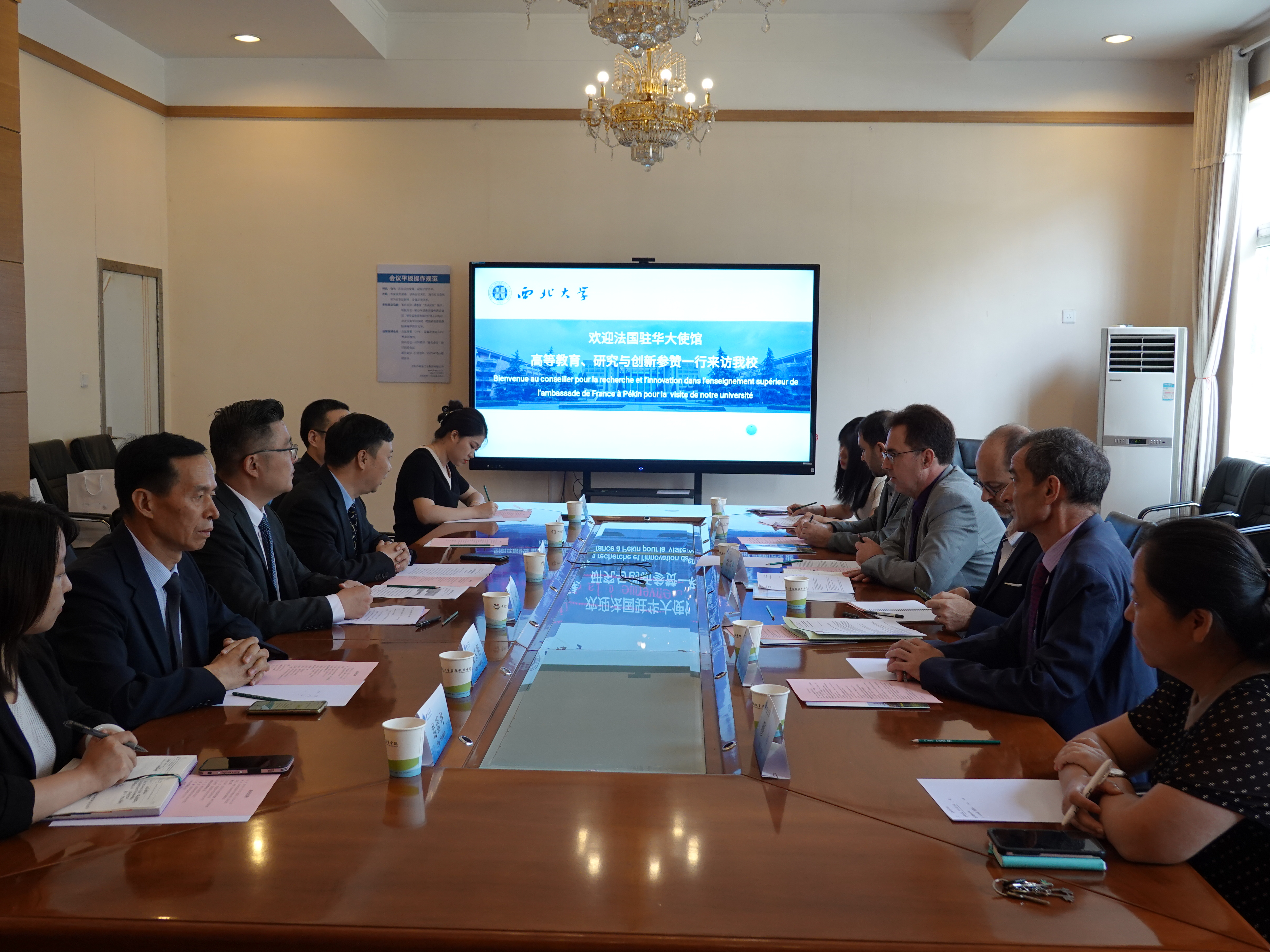 9月2日上午,法国驻华大使馆高等教育研究与创新参赞杜马科、法国驻华大使馆科技专员安诺、法国驻华大使馆高等教育合作专员高明凯一行三人来访乐鱼网页版页面登录太白校区,乐鱼网页版页面登录党委常委、副校长赖绍聪出席座谈会并致辞,西安法语联盟、乐鱼网页版页面登录科技处、国际合作部、生命科学学院相关负责人及工作人员参会。