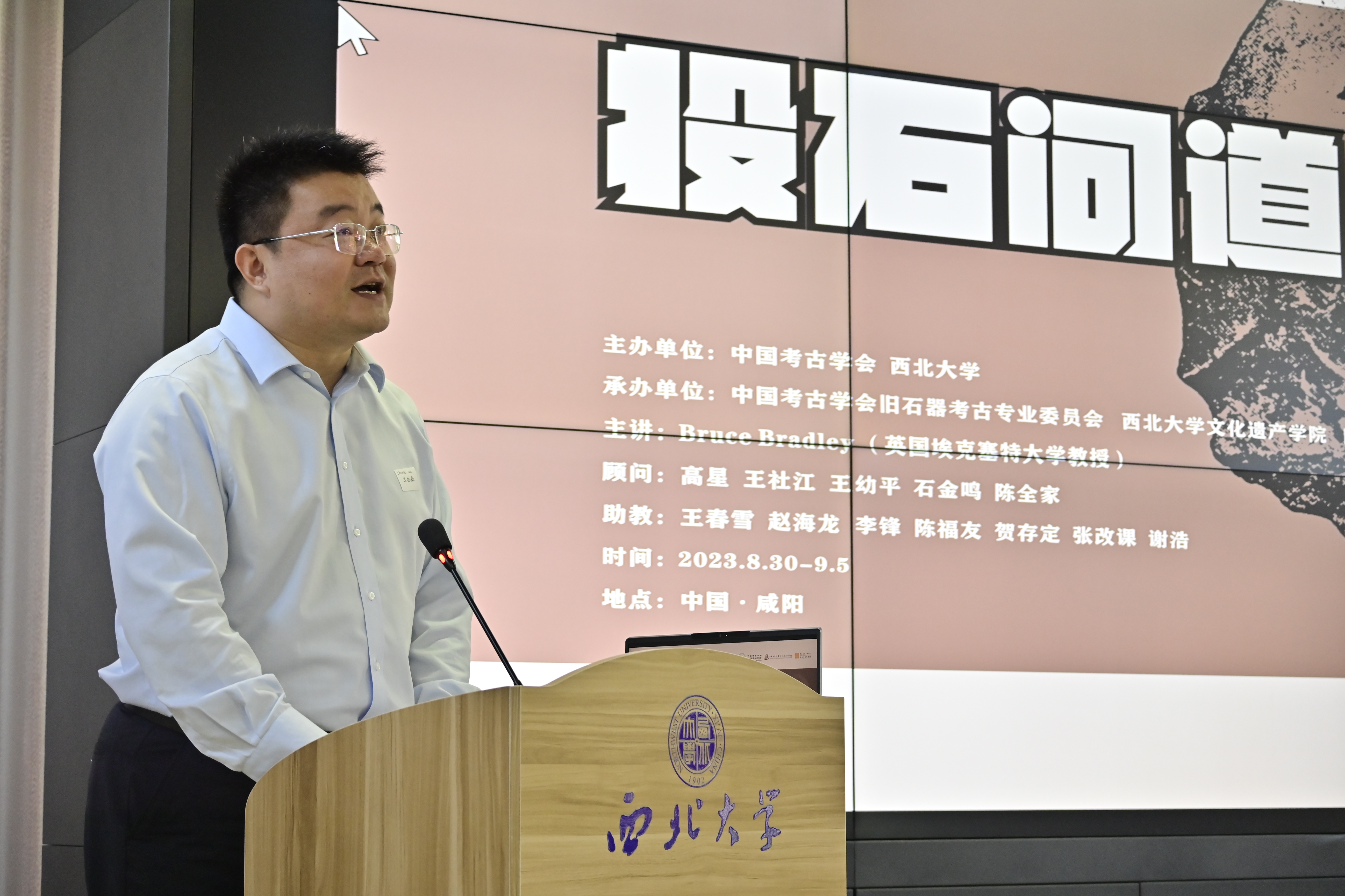 中国考古学会旧石器考古专业委员会主任、中国科学院古脊椎动物与古人类研究所研究员王社江,陕西省考古研究院副院长种建荣,英国埃克塞特大学Bruce Bradley教授,校党委常委、副校长吴振磊出席本次开班仪式并致辞。文化遗产学院负责人以及教师代表参会,开班仪式由乐鱼网页版页面登录文化遗产学院负责人主持。
