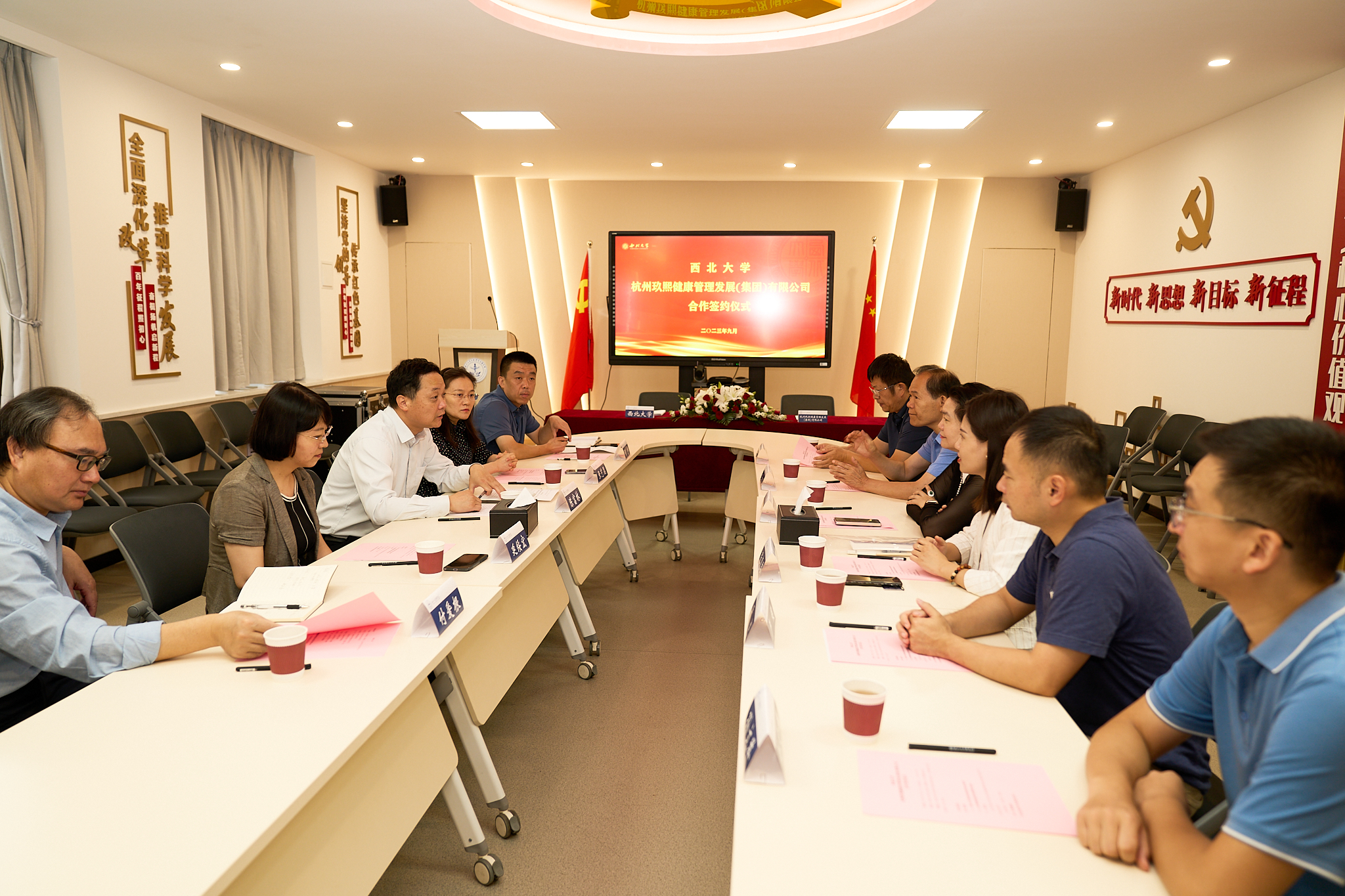 9月1日上午,乐鱼网页版页面登录与杭州玖熙健康管理发展(集团)有限公司在太白校区签署合作协议。校党委常委、副校长陈富林,玖熙健康集团董事长胥凤、品牌总监张惠君出席仪式。科技处、国内处、生命科学学院、医学院相关负责人和部分专家代表参加签约仪式。