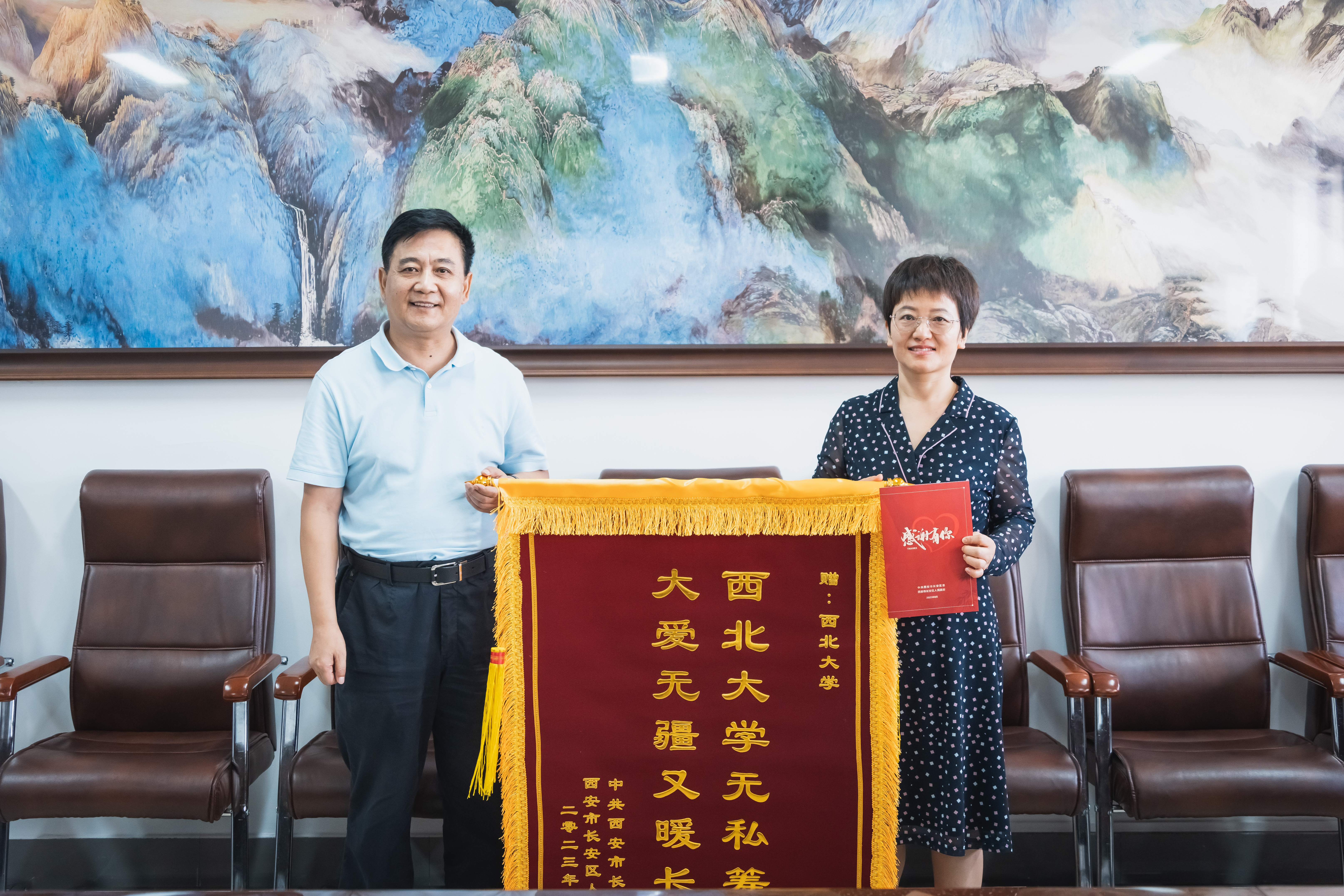 8月29日上午,长安区副区长梁文辉一行来校,代表长安区委、区政府向学校赠送锦旗、感谢信,感谢学校在抗洪救灾中对长安区的支持与帮助。校党委书记王亚杰会见了梁文辉一行,并代表学校接收了锦旗和感谢信。郭杜开发区党工委书记梅春满、管委会主任赵鹏,长安区民政局副局长高亚慧,学校党(校)办负责人参加活动。