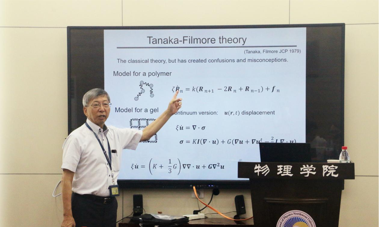 8月3日,美国工程院外籍院士、理论交叉科学中心(中国科学院理论物理研究所、国科温州研究院、瓯江实验室三方共建)首席科学家Masao Doi教授应邀做客乐鱼网页版页面登录“杨钟健学术讲座”第二百二十一讲暨物理学科创建100周年系列学术报告第五十三讲,为师生作了题为“扩散-流变耦合理论”(Diffusio-rheological coupling)的报告。科技处负责人致欢迎辞,并向Masao Doi院士赠送“杨钟健学术讲座”纪念牌。报告会由物理学院经光银教授主持。学校相关部门和师生代表听取了报告。
