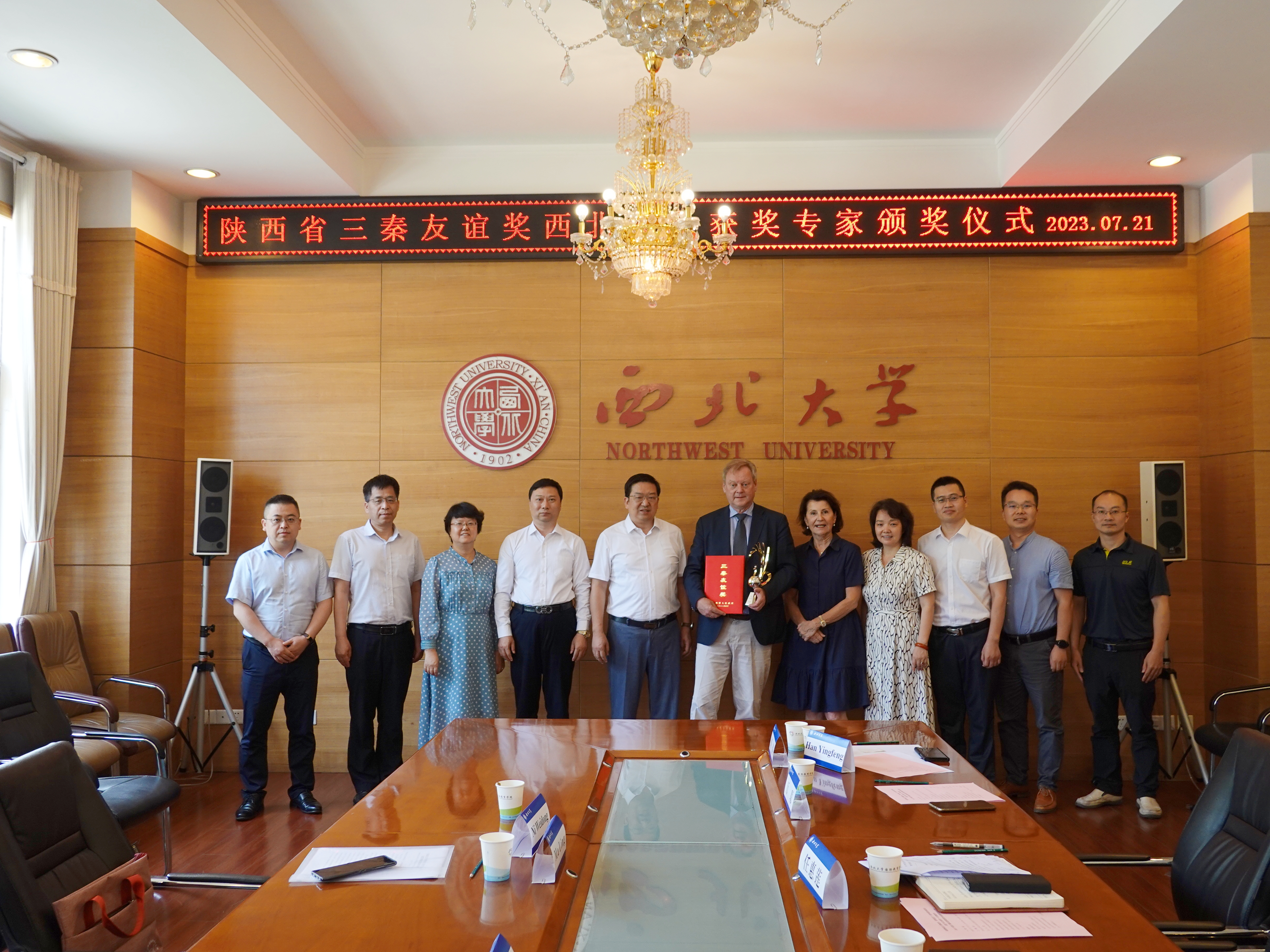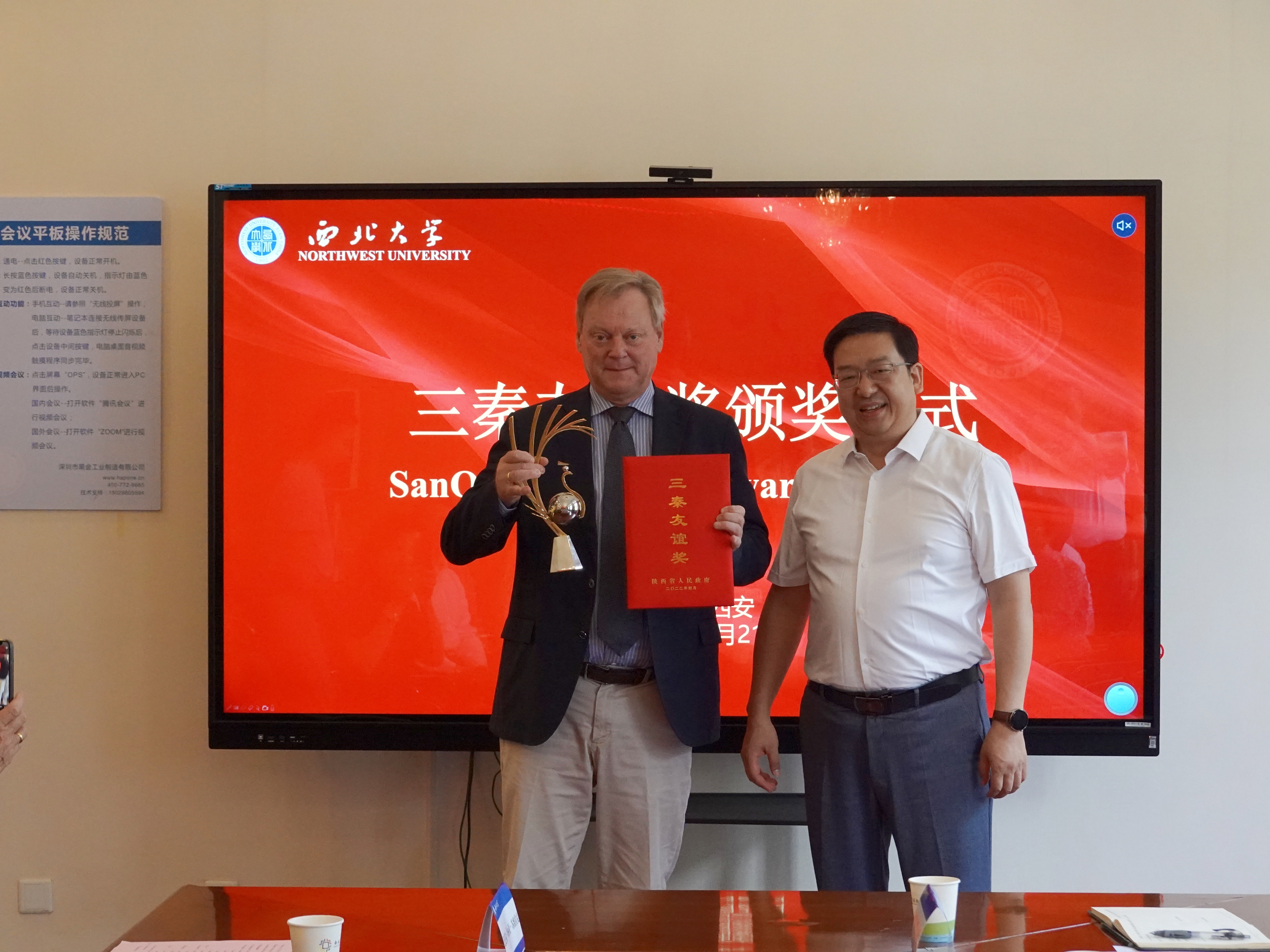 颁发“三秦友谊奖”证书和奖杯