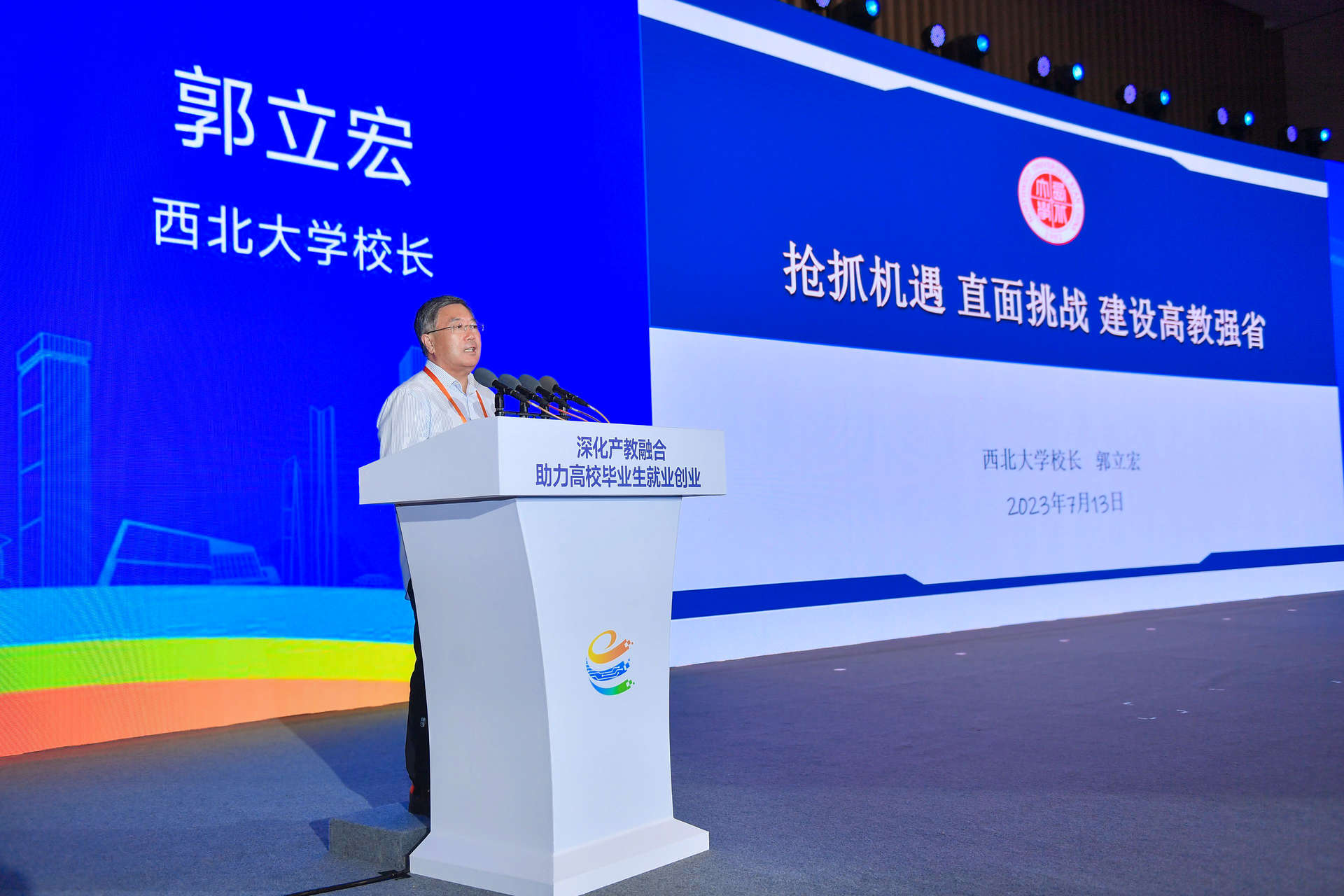 7月13日,由省委教育工委、省教育厅、西安市政府联合主办的“深化产教融合 助力高校毕业生就业创业”系列活动在西安高新国际会议中心举办。省委常委、常务副省长王晓,中国工程院院士张生勇,省委教育工委书记刘建林,省委教育工委副书记、省教育厅厅长王树声等出席开幕式和相关活动。乐鱼网页版页面登录校长郭立宏应邀在系列活动之教育强国论坛上作了题为《抢抓机遇 直面挑战 建设高教强省》的主题报告。