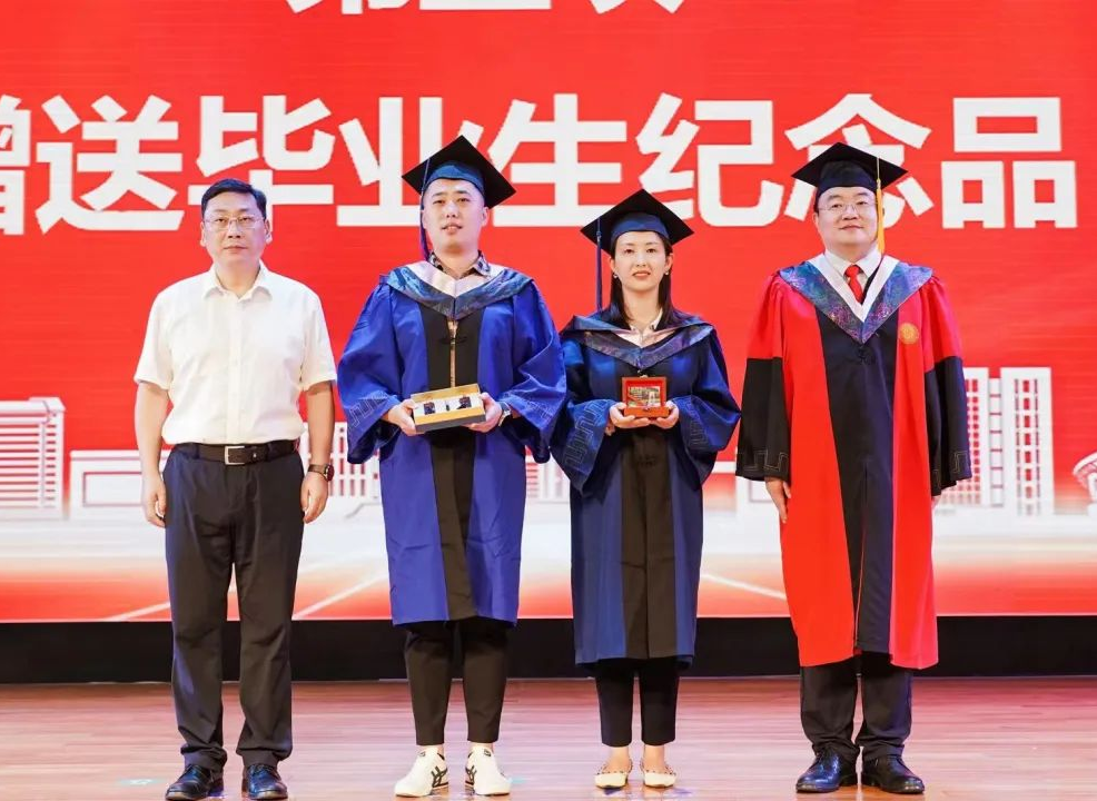 吴振磊和经济管理学院党委负责人向毕业生代表赠送毕业纪念品,以物传情,送上了母校的殷切期盼和深深祝福。