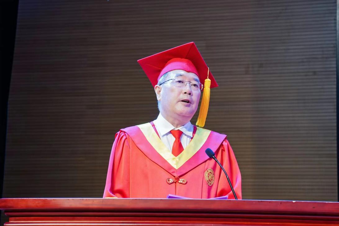 郭立宏在毕业典礼上以《胸怀梦想,脚踏实地,向着未来扬帆起航》为题,寄语毕业生。希望同学们毕业之后一是要始终坚守西大人独有的精神风骨,胸怀梦想、勇于创新。二是要始终保持西大人独有的学习热情,追求真理、崇尚光明。三是要始终弘扬西大人独有的“公诚勤朴”校训,脚踏实地、求真务实。郭校长勉励大家要持续夯实人生根基、拓展人生维度,不忘母校悉心培养和老师敦敦教诲,本本分分做人、踏踏实实做事,努力为国家和区域经济社会发展贡献力量。