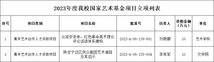日前,国家艺术基金管理中心公布了国家艺术基金(一般项目)2023年度资助项目名单,乐鱼网页版页面登录获批国家艺术基金2023年度青年艺术人才创作项目2项。据悉,2023年国家艺术基金共申请10978项,立项资助项目703项,综合立项率为6.4%,其中青年艺术人才创作项目(文艺评论类)共申报243项,立项14项,立项率为5.76%。