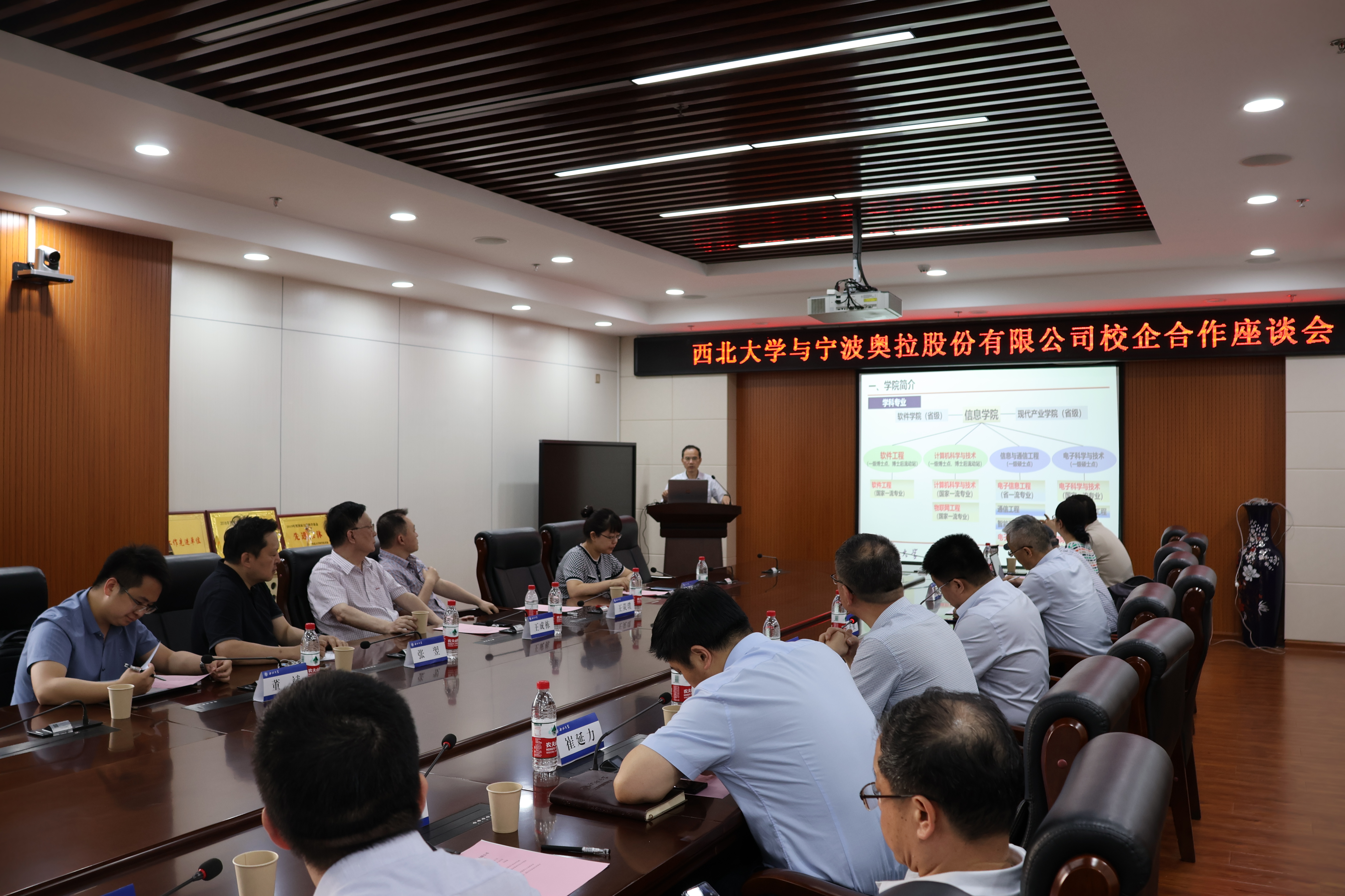 吴振磊对王成栋一行来访乐鱼网页版页面登录表示了欢迎,并就学校的历史沿革和基本情况做了介绍。信息学院彭进业教授汇报了学院的基本情况,以及与宁波奥拉股份有限公司的合作规划,宁波奥拉股份有限公司董斌介绍了公司情况和合作意向。双方围绕合作内容和保障机制等事宜进行了深入交流。