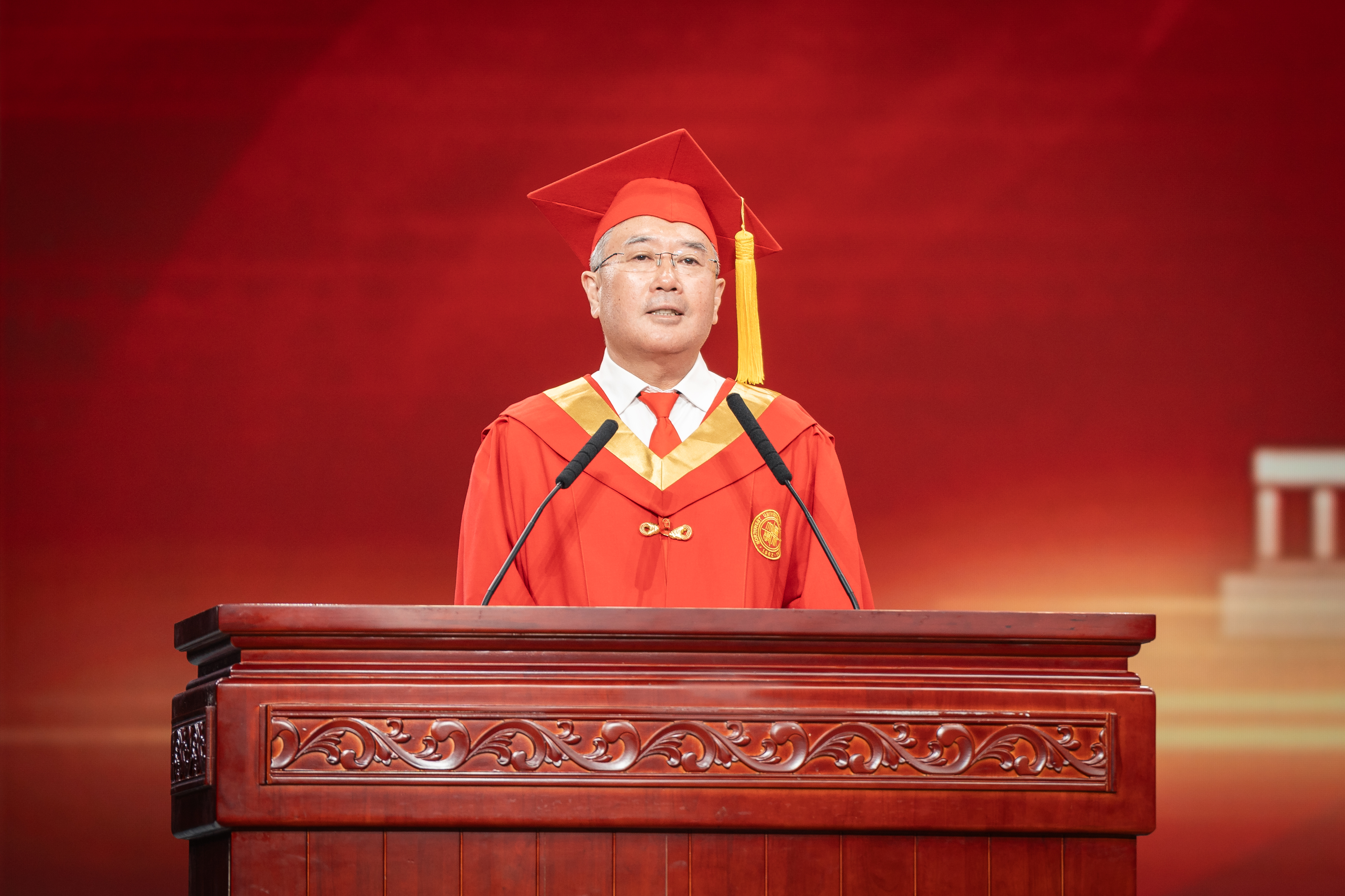 郭立宏在讲话中指出,“你们是很不容易的一届毕业生,也是很了不起的一届毕业生。面对反复的疫情,面对最难就业季和最难考研季的压力与挑战,大家坚定地走了过来,成长、成熟了起来。我要向每一位同学致敬和点赞!”他希望广大毕业生要守得住本分,始终保持一颗求真向善尚美之心;要耐得住性子,学会从历史维度和长度衡量人生价值;要经得起挫折,从走的每一段路、吃的每一段苦中,积累经验、激发潜能、增长智慧、锤炼意志;要成得了事情,保持干一行、爱一行、精一行的态度,努力实现个人事业的进步,为推进人类文明进步、国家区域发展作出应有贡献。