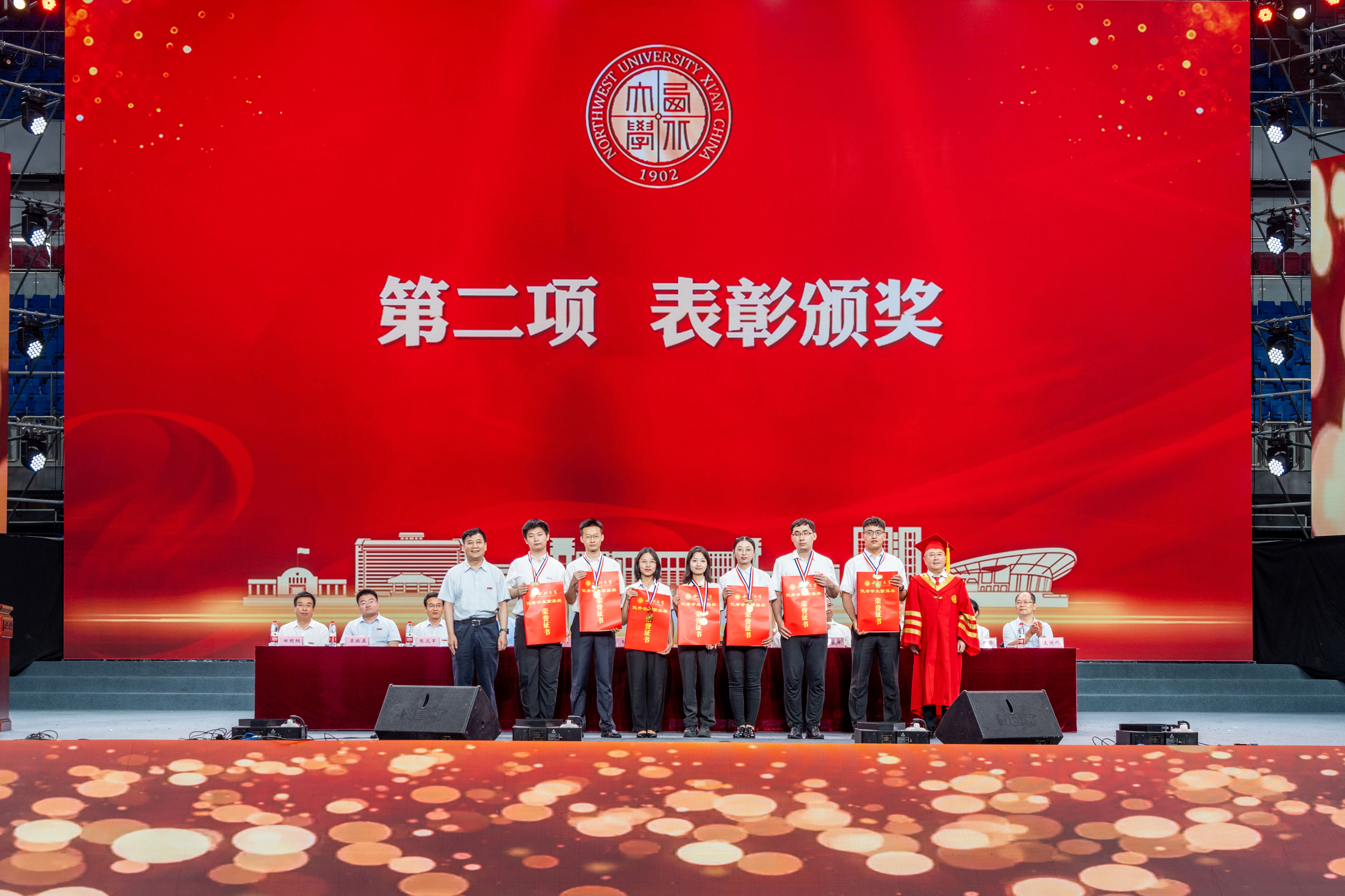 典礼在雄壮的国歌声中开始。校党委书记王亚杰、校长郭立宏共同为乐鱼网页版页面登录2023年优秀学生紫藤奖获奖者颁奖。国家级教学名师、信息科学与技术学院教授耿国华,学校领导班子成员王亚杰、郭立宏、张清、常江、奚家米、张远军、陈富林、吴振磊、田明纲及校友支振锋等共同为2023届乐鱼网页版页面登录优秀毕业生代表颁奖。校党委副书记吕建荣主持毕业典礼。校党委常委、副校长奚家米宣读表彰决定。