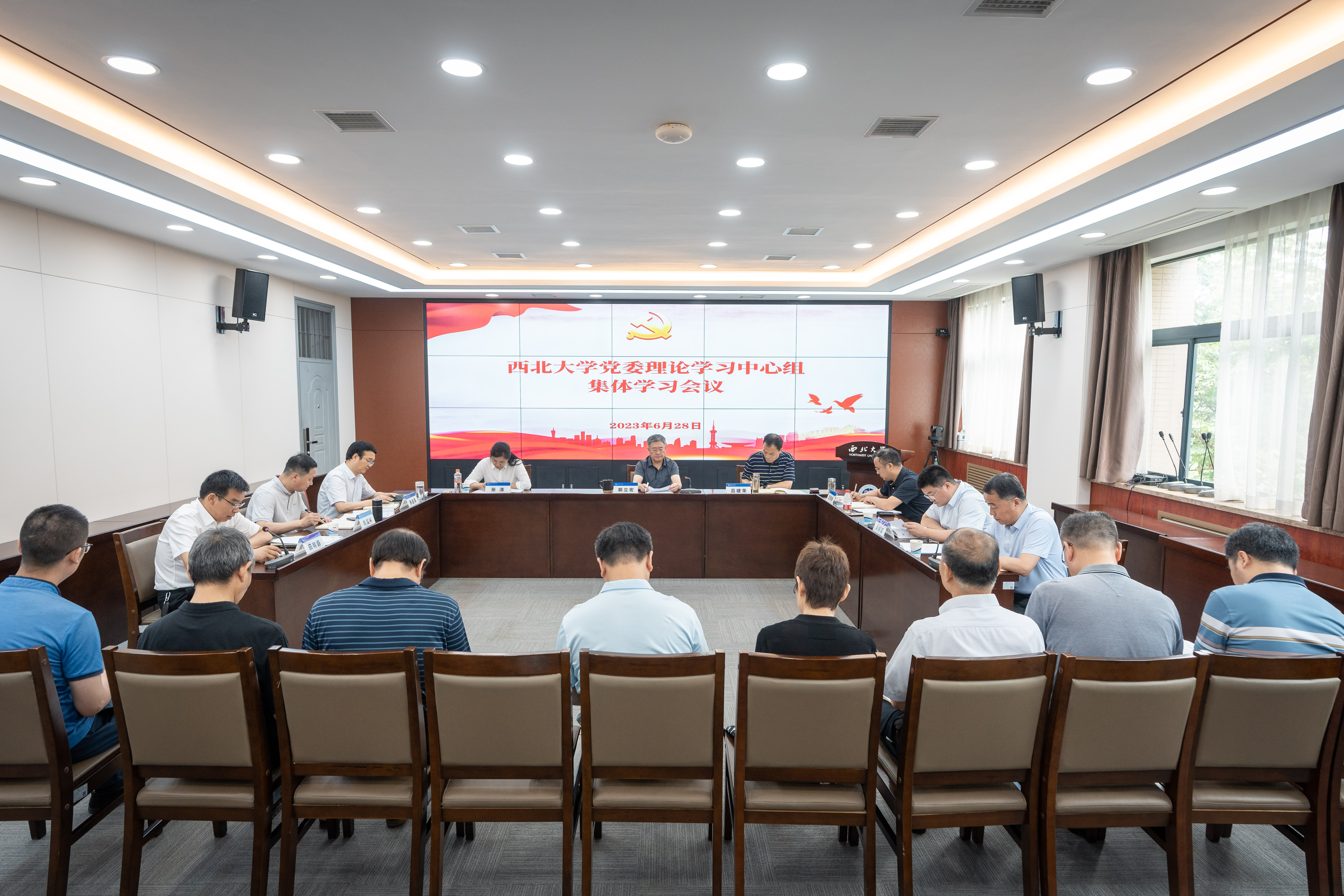 6月28日上午,校党委理论学习中心组在长安校区召开集体学习会议,集中学习传达习近平总书记最新重要讲话精神和有关文件精神。校党委中心组成员参加了会议。会议由校党委副书记、校长郭立宏主持。