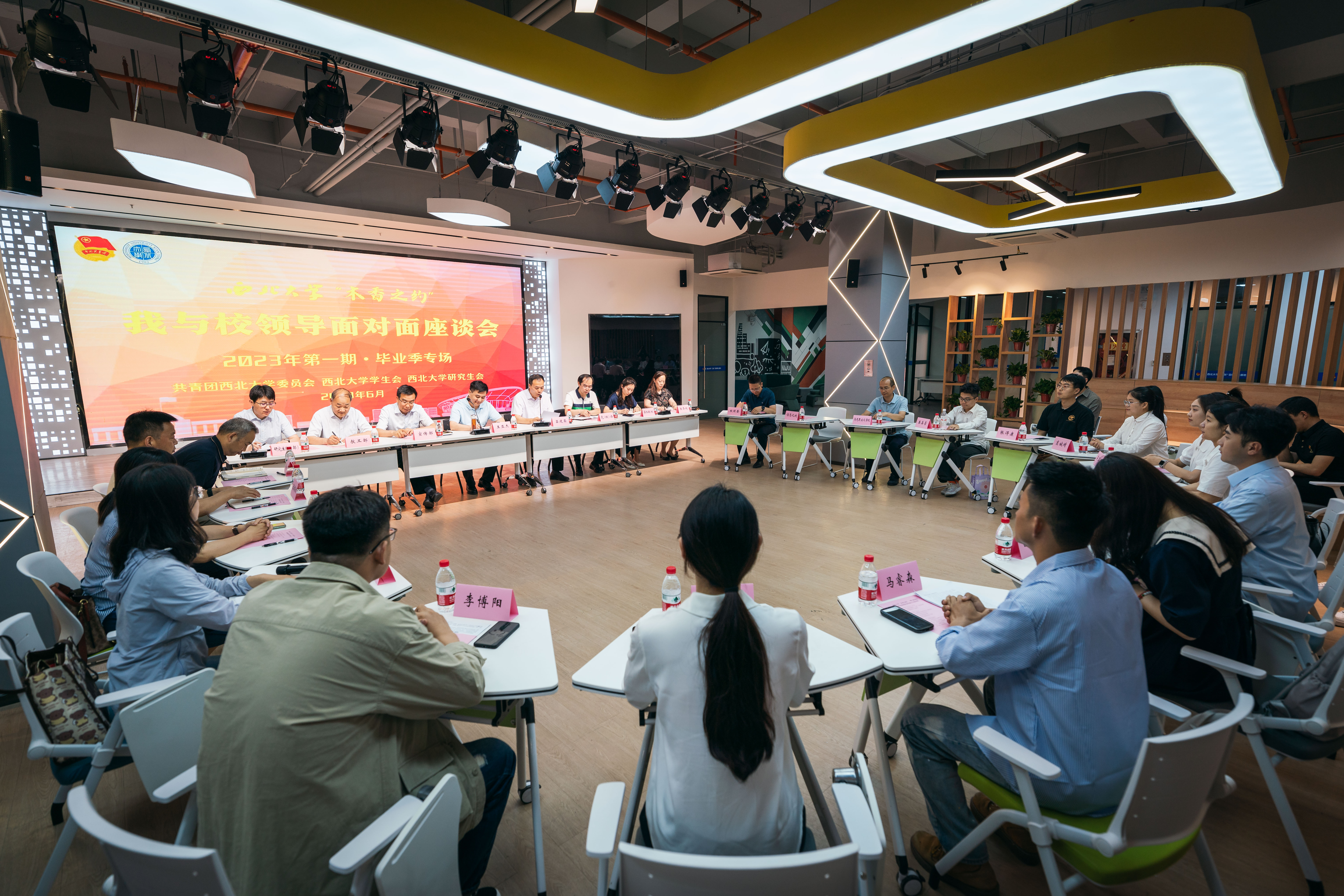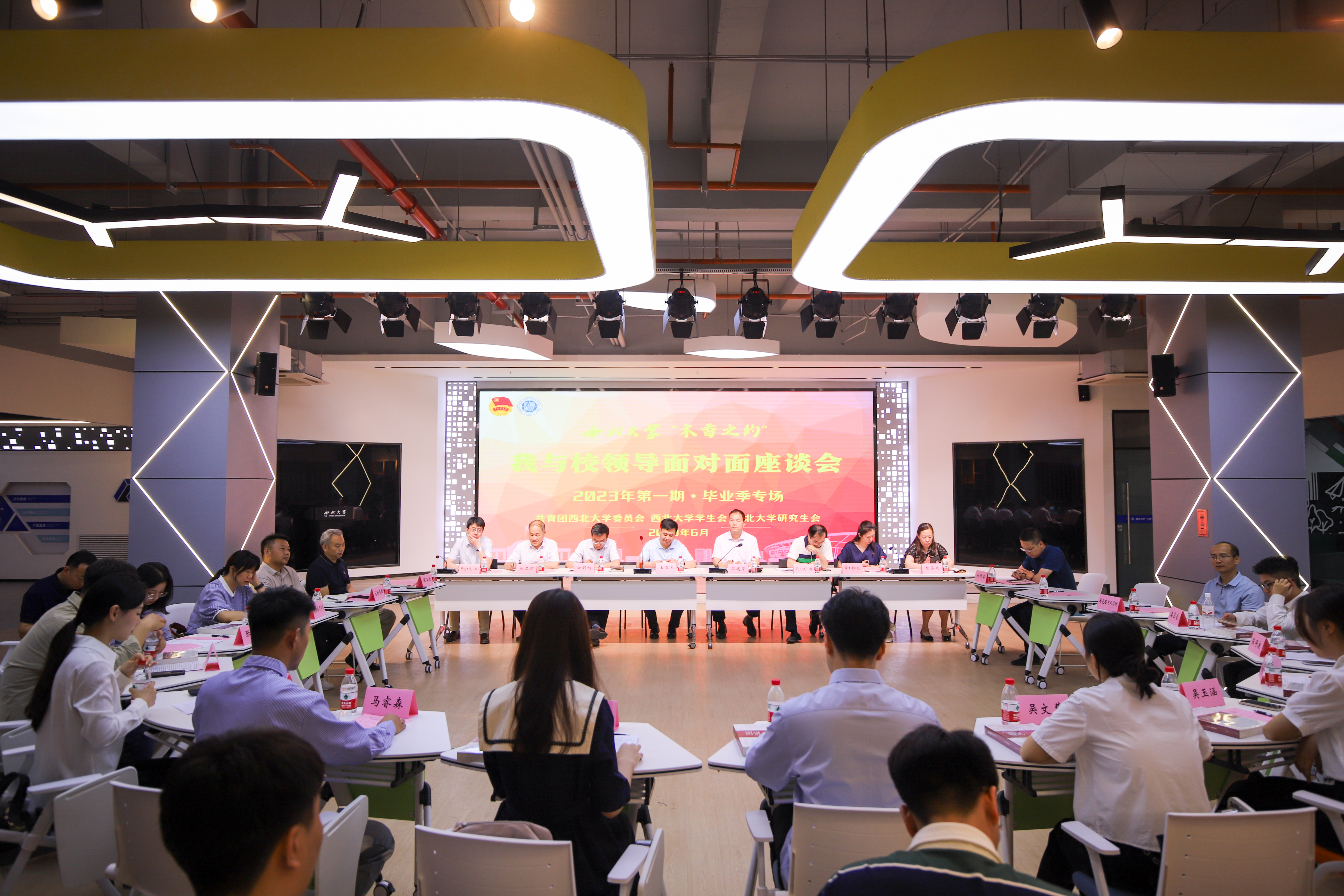 6月26日下午,“木香之约”——我与校领导面对面座谈会2023年第一期毕业季专场活动在乐鱼网页版页面登录长安校区举行。校党委书记王亚杰,校党委常委、宣传部部长田明纲,学生工作领导小组成员单位主要负责人出席会议,各院(系)学生工作负责人、各院(系)应届毕业生代表、校学生会、研究生会学生代表等到场参加活动。会议由校党委副书记吕建荣主持。