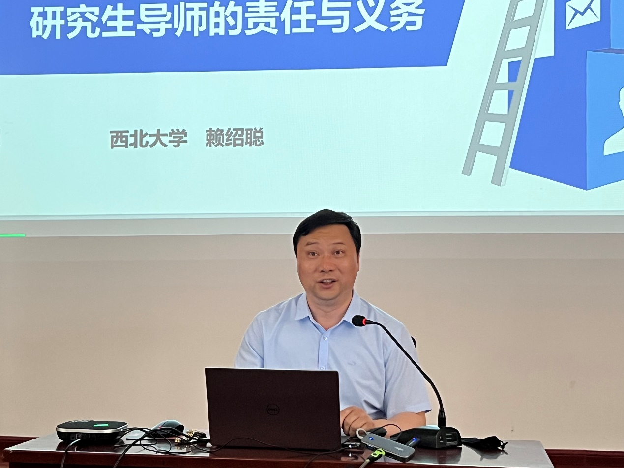 赖绍聪作了题为“学高为师德高为范——研究生导师的责任与义务”的报告。他指出研究生导师是教师教学科研生涯中的崭新起点,承担着高层次创新人才培养和科学技术创新的双重任务,是研究生培养的第一责任人。他从“导师的定义”“严于律己、德高为范”“为人师表、学高为师”“创新机制、科学育人”等四个方面对如何履行好导师立德树人职责,成为一名优秀的研究生导师作出了要求。同时希望各位导师从“才、学、识、德”四个方面提升自身教书育人能力,努力成为“有理想信念,有道德情操,有扎实学识,有仁爱之心”的好导师。