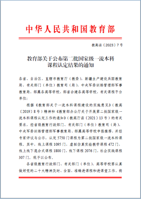 近日,教育部公布第二批国家级一流本科课程认定名单,乐鱼网页版页面登录《中国市场经济理论与实践》等17门课程入选。截至目前,学校共34门课程入选国家级一流本科课程,56门课程入选省级一流本科课程。