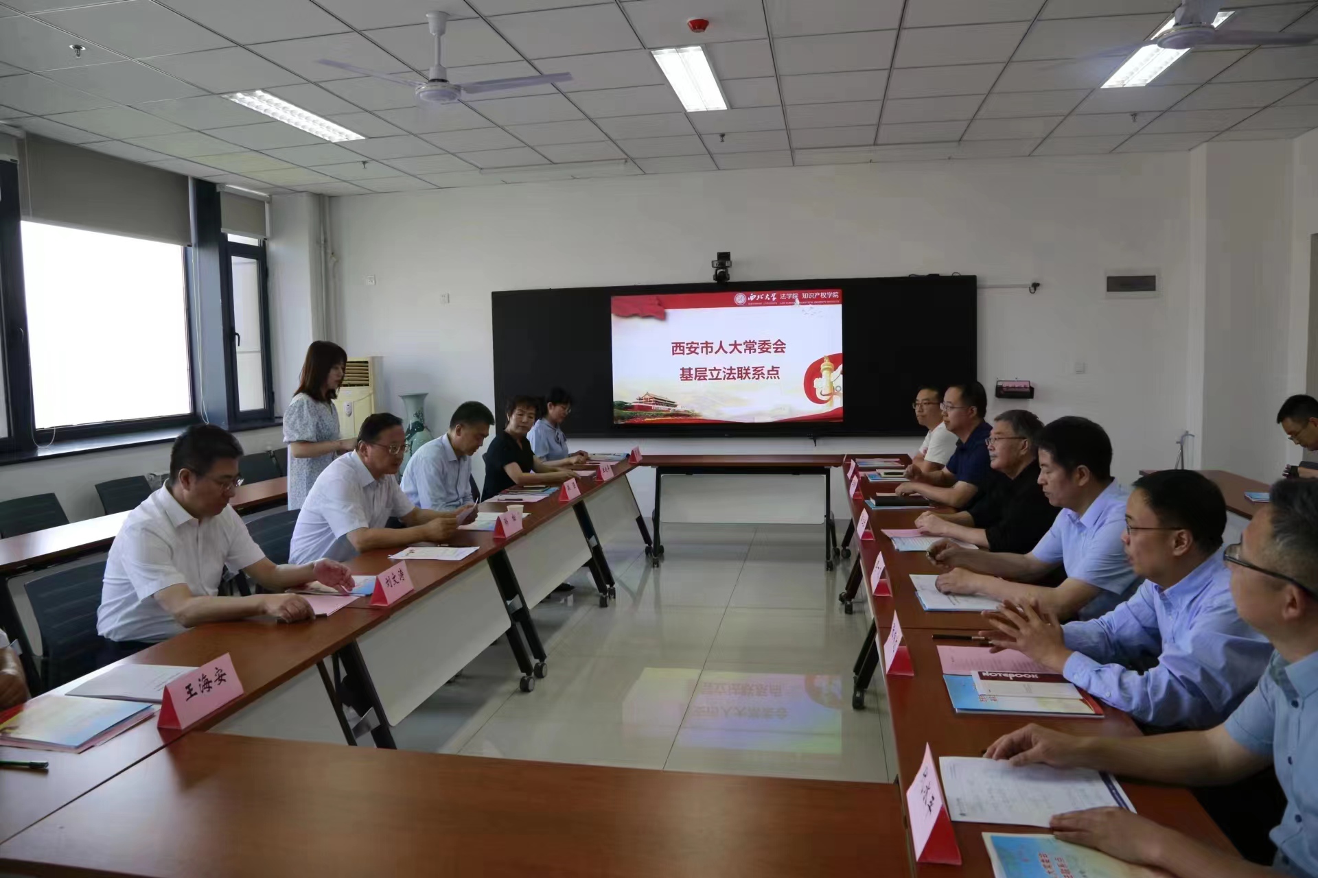 6月13日上午,西安市人大常委会韩松主任一行到乐鱼网页版页面登录调研基层立法联系点工作。市人大常委会秘书长、办公厅主任韩强,研究室主任王晓萍,法制委副主任委员、法工委副主任王海安,长安区人大常委会党组书记、主任刘文涛和党组成员、副主任葛莹陪同调研。乐鱼网页版页面登录校长郭立宏,法学院负责人、部分专家出席座谈会。
