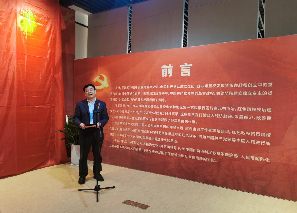 王亚杰书记在致辞中表示,从井冈山到延安,许多革命根据地都曾存在红色钱币,这些钱币承载的一段历史,一段中国共产党人如何团结人民、武装人民、造福人民、率领人民,争取国家独立、民族解放,如何使中国人民从站起来、富起来到强起来的伟大历程。通过对历史的回顾和见证,对我们如何建设新时代中国特色社会主义经济、政治、文化、社会、生态,如何五位一体推进具有很强的启示意义,也是我们新时代做好经济工作、货币工作的重要精神来源。