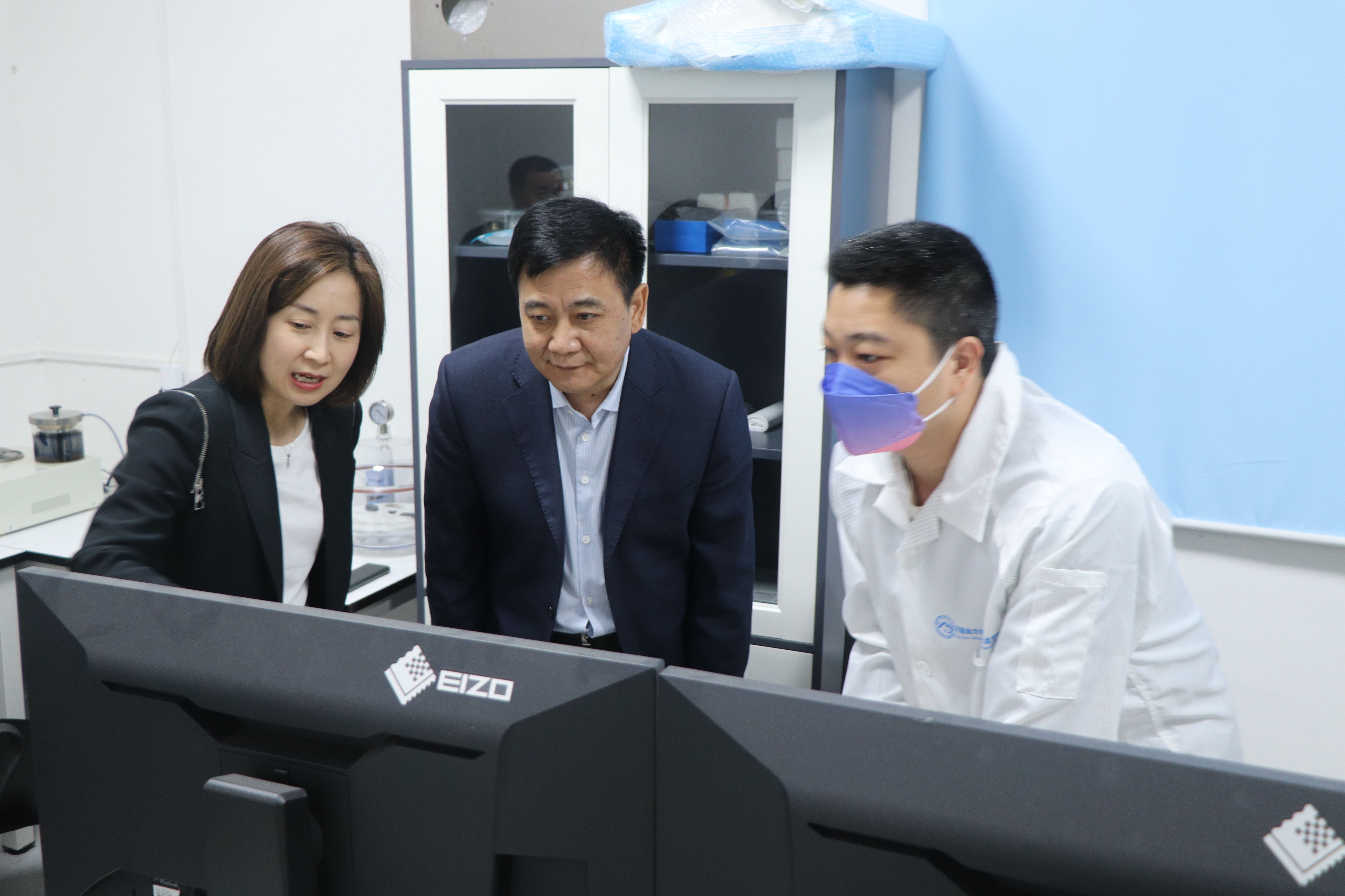 王亚杰参观了古生物标本室、矿物陈列室,实地考察了显微探针实验室、透射电镜实验室建设运行情况,并与正在开展实验的师生现场交流。