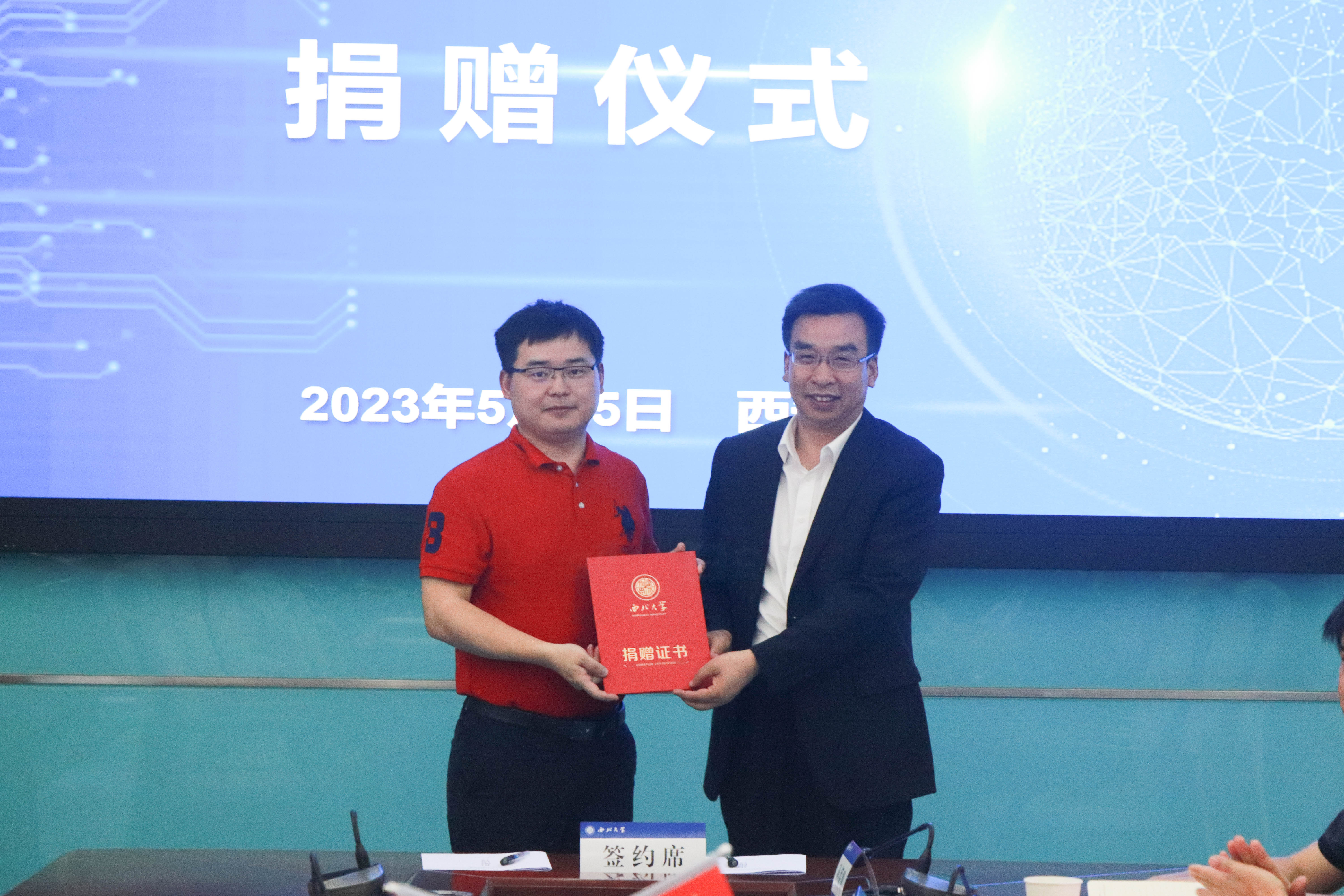 校党委常委、宣传部部长田明纲向北京侏罗纪软件股份有限公司颁发捐赠证书
