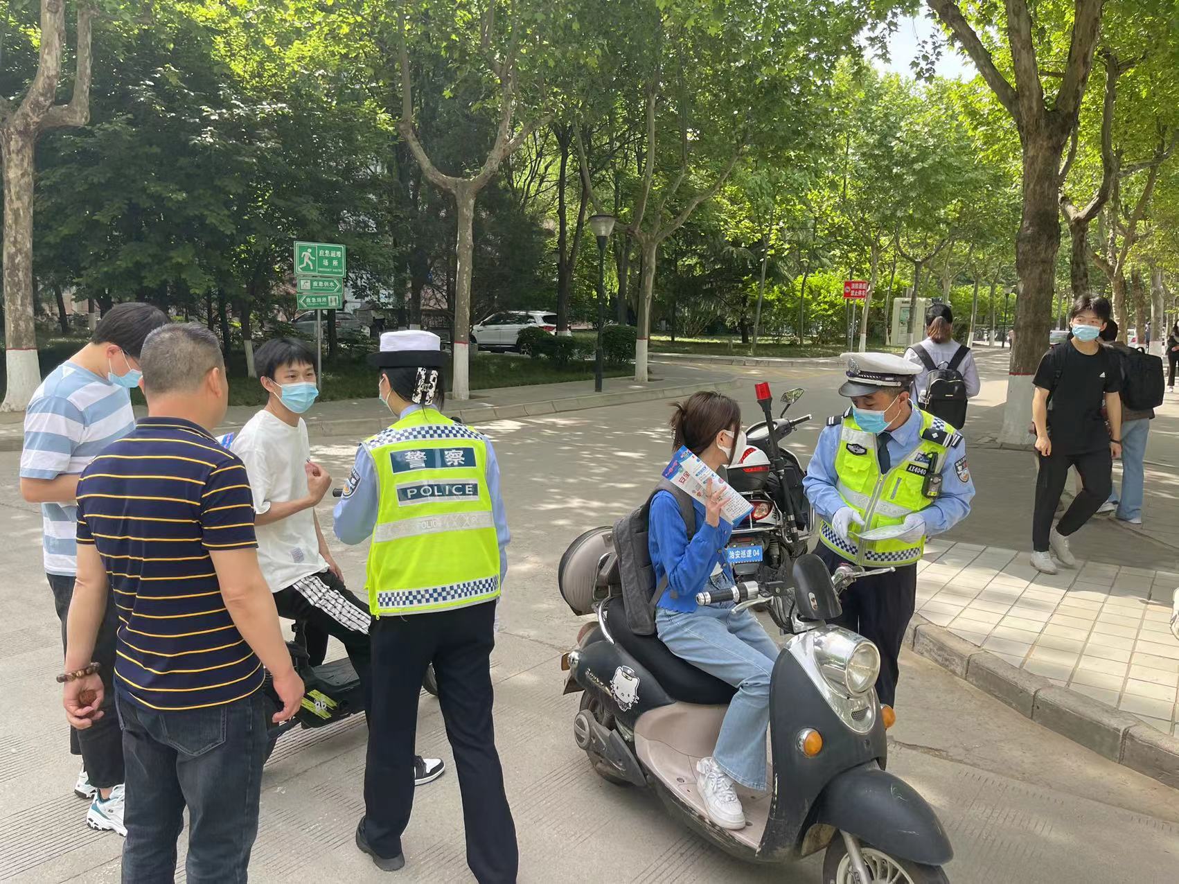 此外,学校还邀请属地派出所民警走进校园,加强对师生员工进行交通安全宣传教育工作,同时制作“安全骑行,从头开始”宣传单1500余份进行分发。