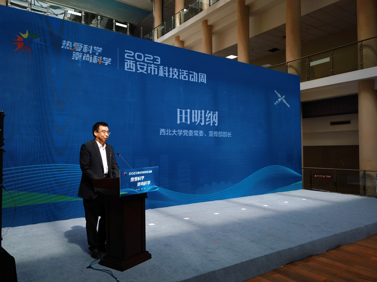 5月22日上午,由西安市科技局、市委宣传部和市科协主办,西安科技产业发展中心和乐鱼网页版页面登录博物馆承办的2023年西安市科技活动周启动仪式在乐鱼网页版页面登录太白校区举行。西安市科技局党组书记、局长李志军,西安市科技局副局长李建勋,西安市科协党组书记、常务副主席耿占军,西安市委宣传部一级调研员孙高明,乐鱼网页版页面登录党委常委、宣传部部长田明纲出席会议。2022年全国科技活动周先进集体和个人代表, 2022年西安市科普示范基地负责人,乐鱼网页版页面登录相关单位负责人参加仪式。启动仪式由李建勋主持。