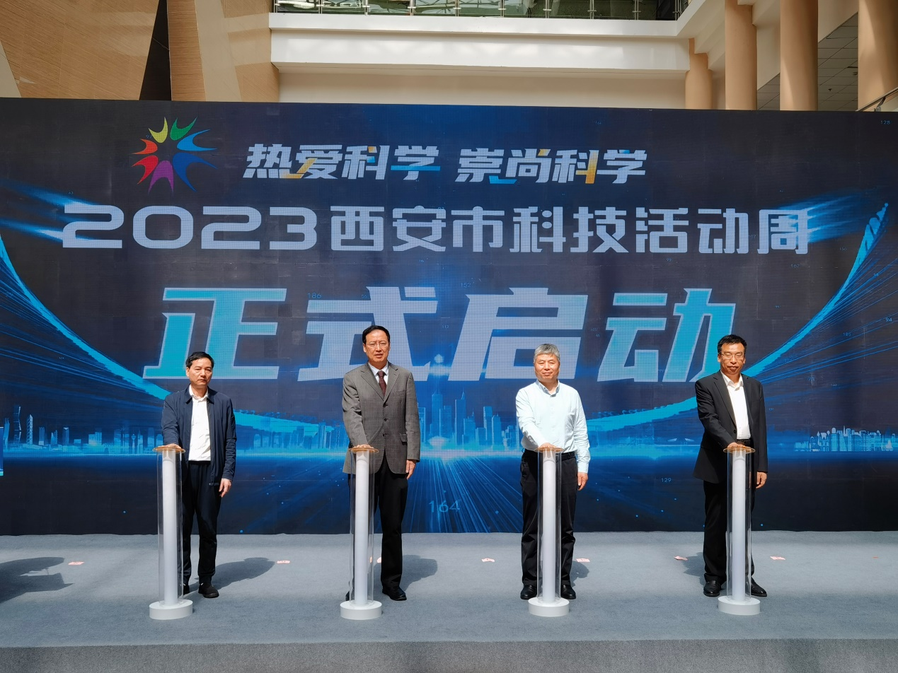 与会领导共同按下启动柱,正式开启2023年西安市科技活动周。
