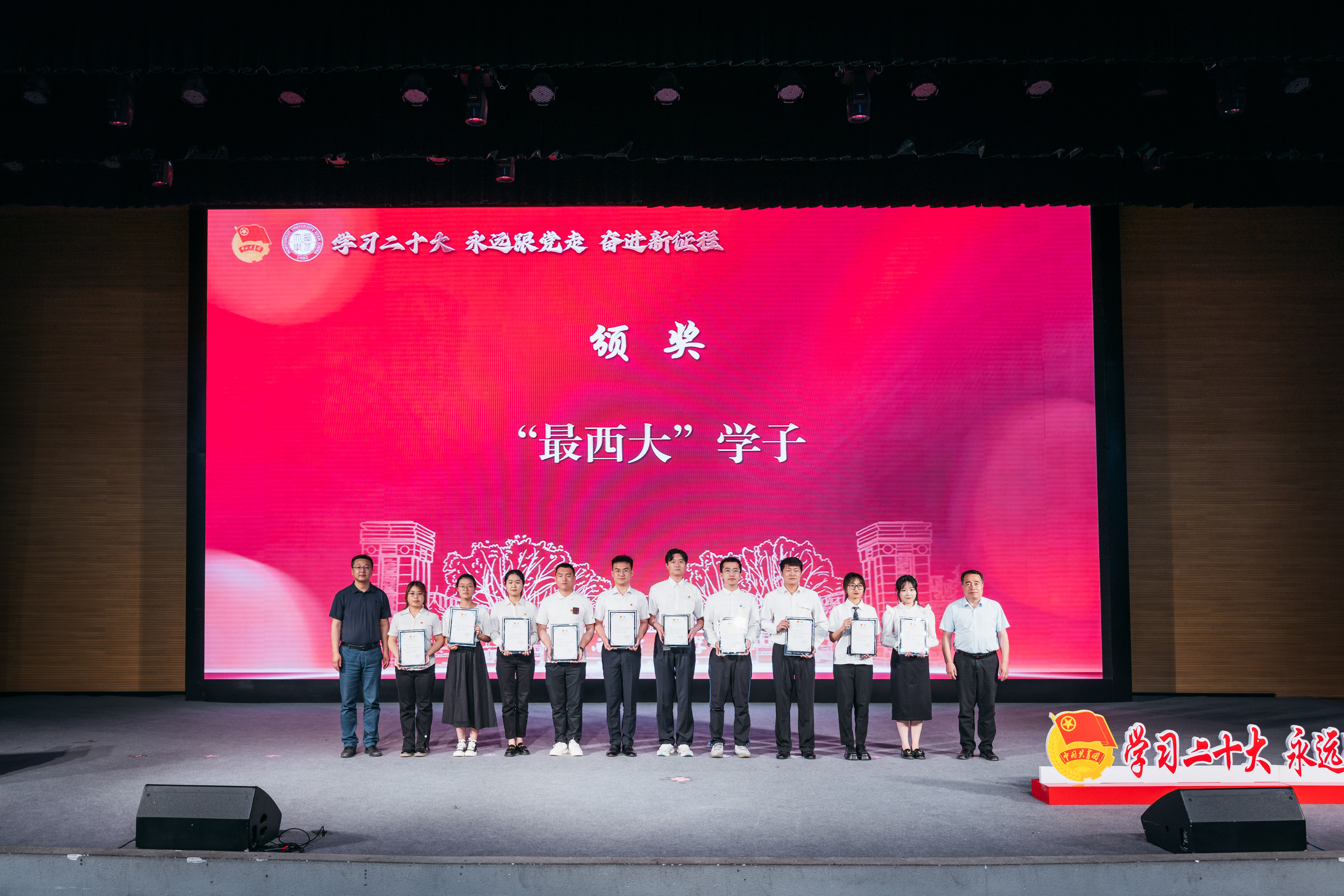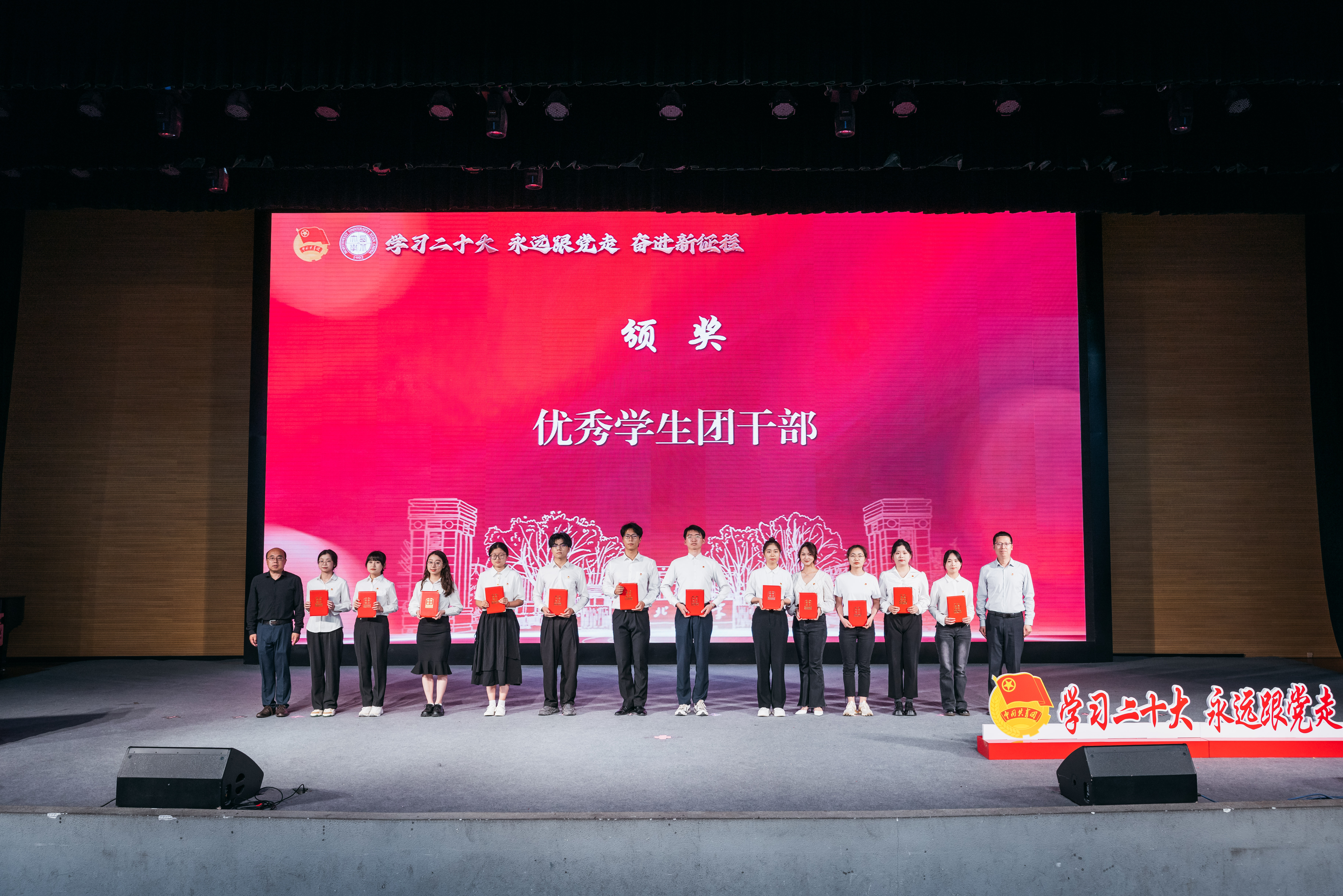 过去一年,学校共青团共有406名优秀团员青年和145个先进团组织,王亚杰为“五四红旗团委”颁奖,郭立宏为“优秀专职团干部”颁奖,吕建荣为“一院一品共青团工作单项奖”颁奖。其他与会领导先后为优秀共青团员、优秀学生团干部、十佳团支部书记、五星级团支部、活力团支部、“最西大”学子奖的获奖集体和个人颁发奖牌和证书。