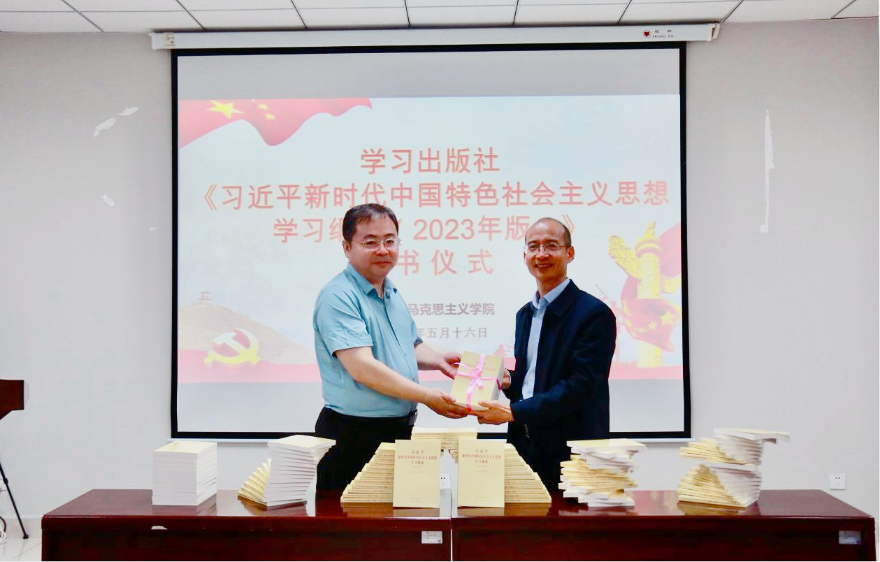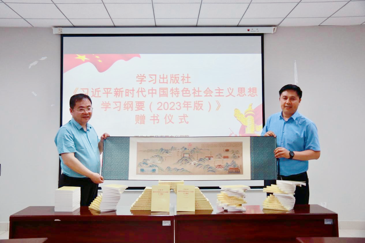 仪式上,学习出版社向马克思主义学院捐赠《纲要(2023年版)》500册。乐鱼网页版页面登录国内合作与校友工作处负责人向刘向军赠送了校庆纪念品。