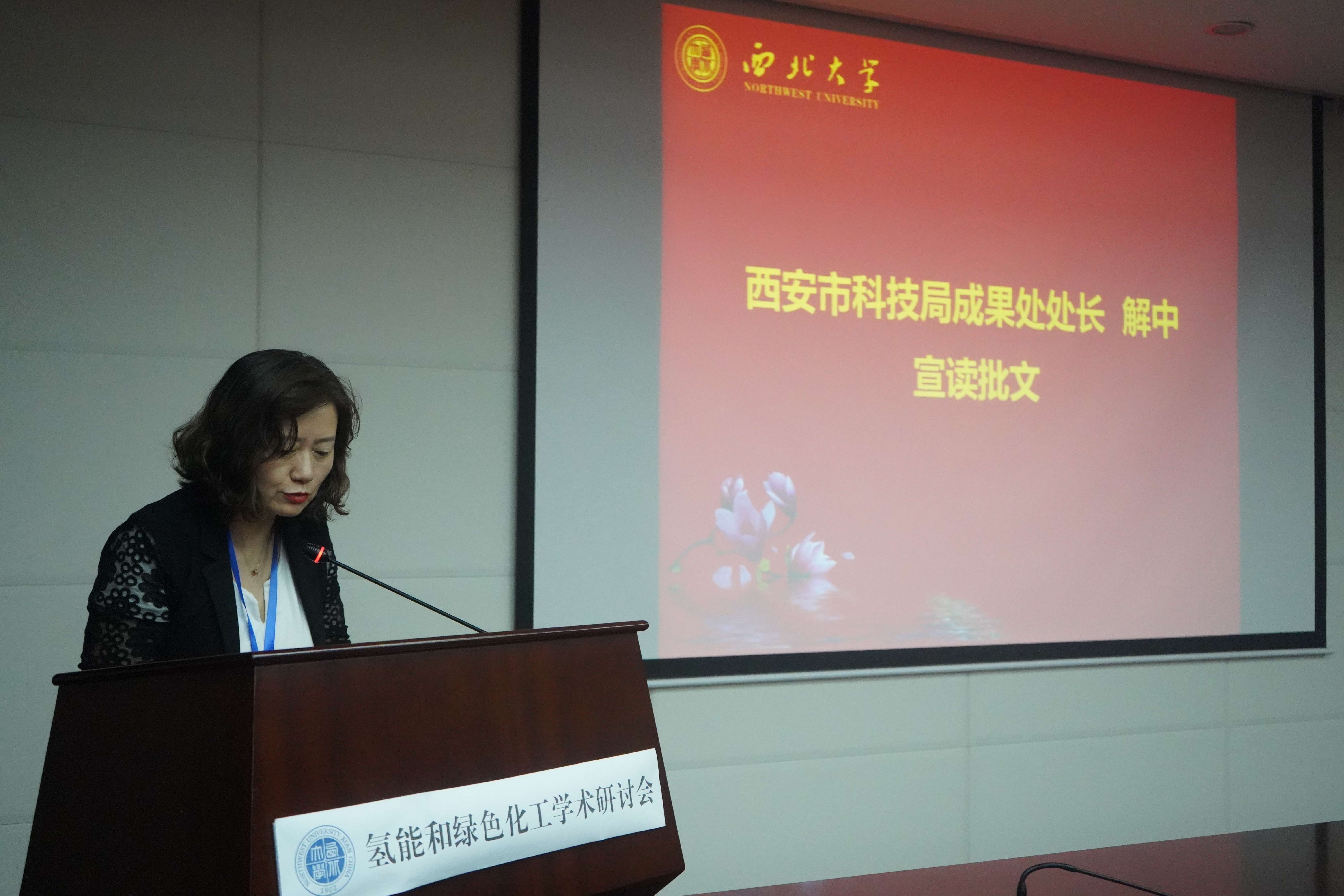 解中宣读了西安市绿色氢能制储用一体化技术重点实验室批复文件。她对实验室的挂牌表示祝贺,希望实验室能够强化相关领域基础研究和产学研合作,解决产业发展面临的技术瓶颈,成为西安乃至陕西氢能产业科技创新的重要平台。