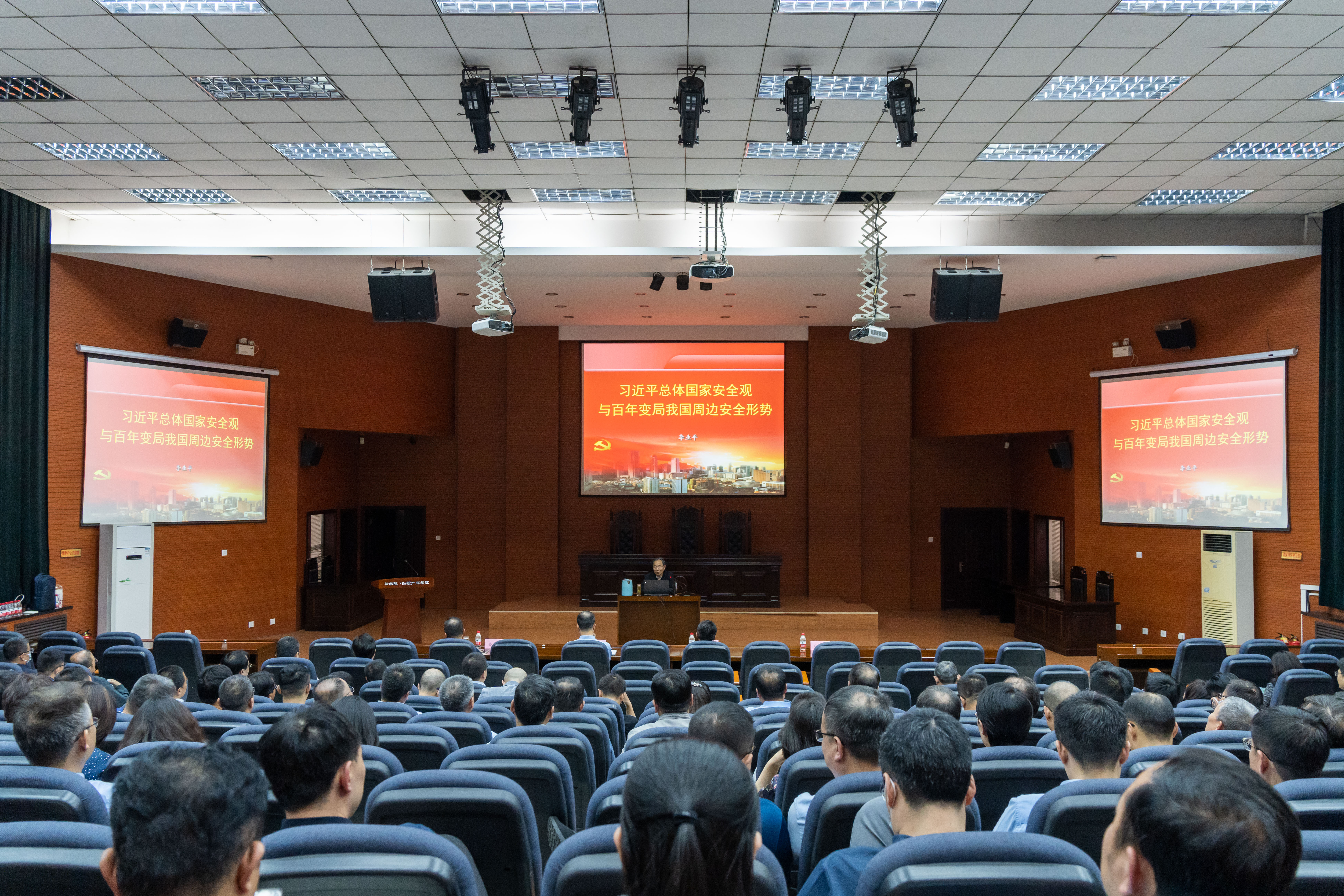 5月15日,学校在长安校区举办国家安全形势报告会,陆军边海防学院李业平教授为全校副处级以上干部、无行政级别实体研究机构负责人作国家安全形势报告。校党委副书记赵作纽、吕建荣,校党委常委、副校长奚家米出席报告会,报告会由赵作纽主持。