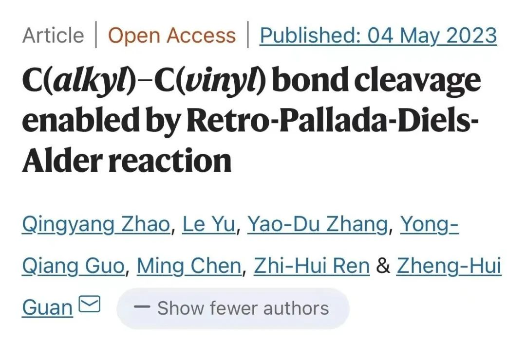 近日,乐鱼网页版页面登录化学与材料科学学院关正辉教授团队在对烯烃羰基化活性催化剂的深入研究基础上,设计并实现了第一例金属杂六元环的Retro-Diels-Alder反应。研究成果以“C(alkyl)–C(vinyl) bond cleavage enabled by Retro-Pallada-Diels-Alder reaction”为题在线发表于《自然-通讯》杂志。