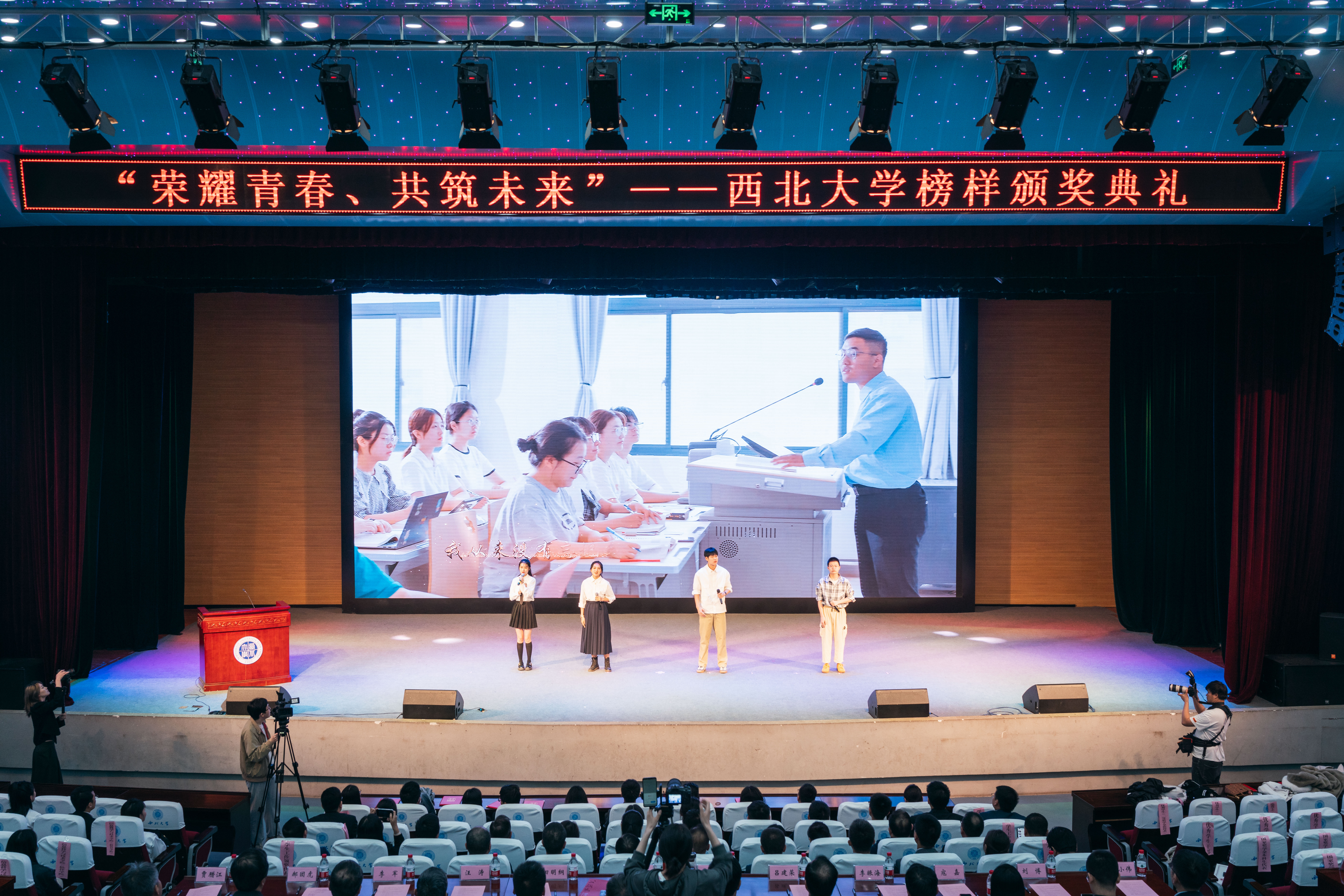 5月10日上午,乐鱼网页版页面登录“荣耀青春、共筑未来”榜样颁奖典礼在长安校区举行。校党委书记王亚杰,校长郭立宏,校党委副书记吕建荣,校党委常委、宣传部部长田明纲,教师代表、地质学系教授王家鼎、班主任代表经济管理学院副教授赵仁杰、辅导员代表生命科学学院辅导员常雅慧、宿舍管理员代表张小平,校学生工作领导小组成员单位负责人,各院(系)党委(直属党支部)书记,各院(系)学生工作负责人,全体辅导员以及获奖学生代表参加了典礼。典礼由国家奖学金获得者荆政嵛、一等奖学金获得者郭佳琦主持。